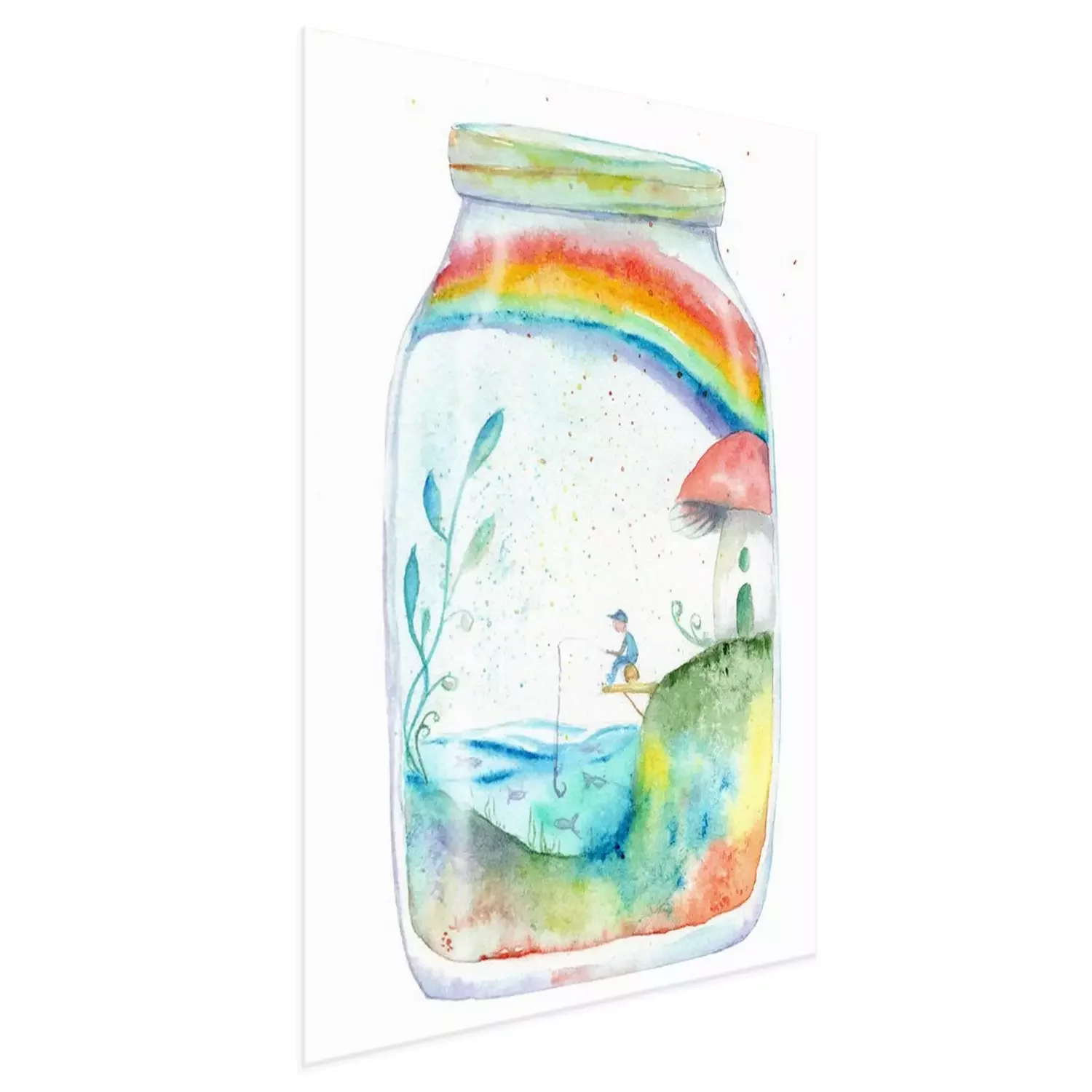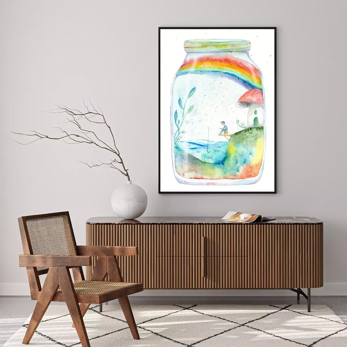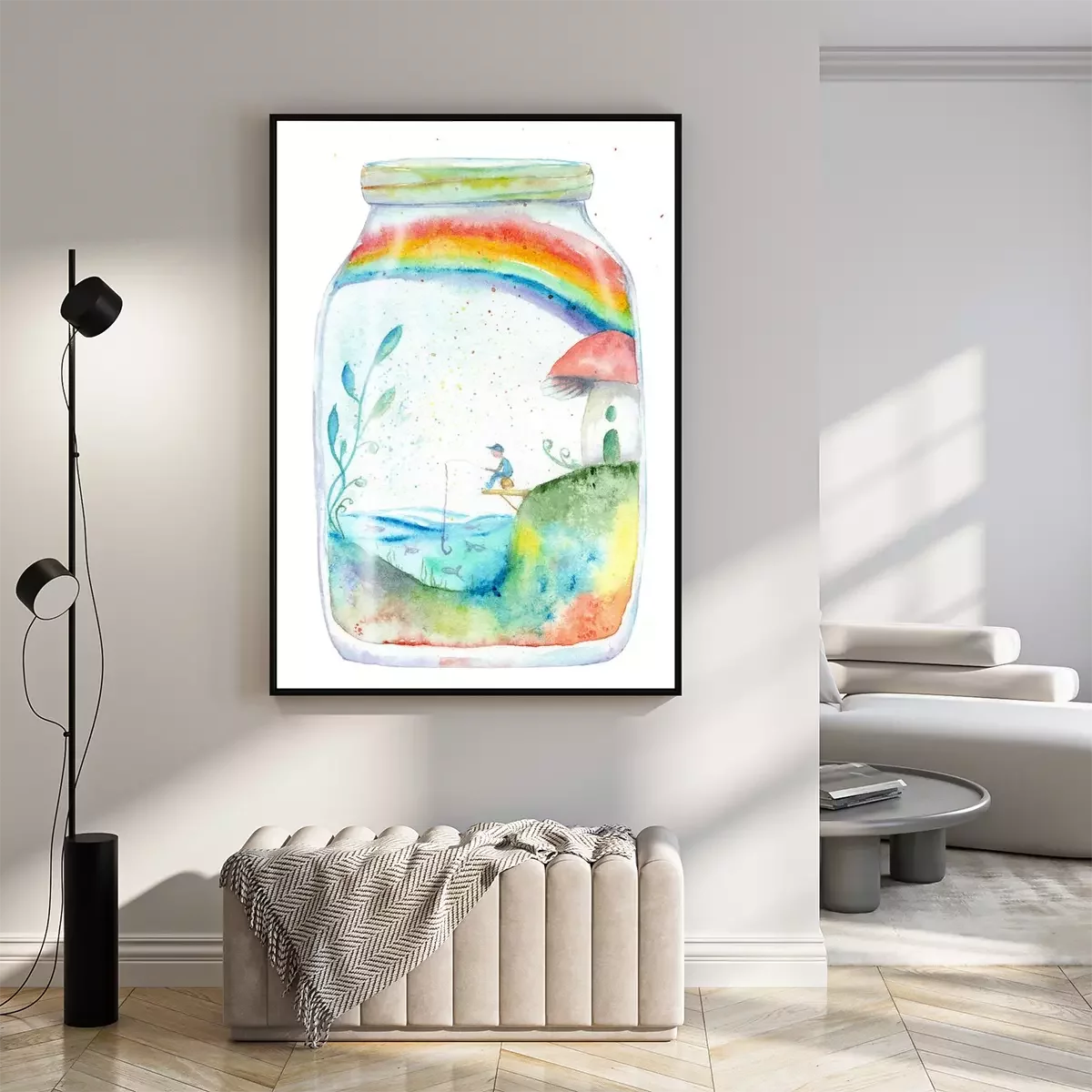 Poster  Un dessin à l'aquarelle d'un pêcheur enfermé dans un bocal