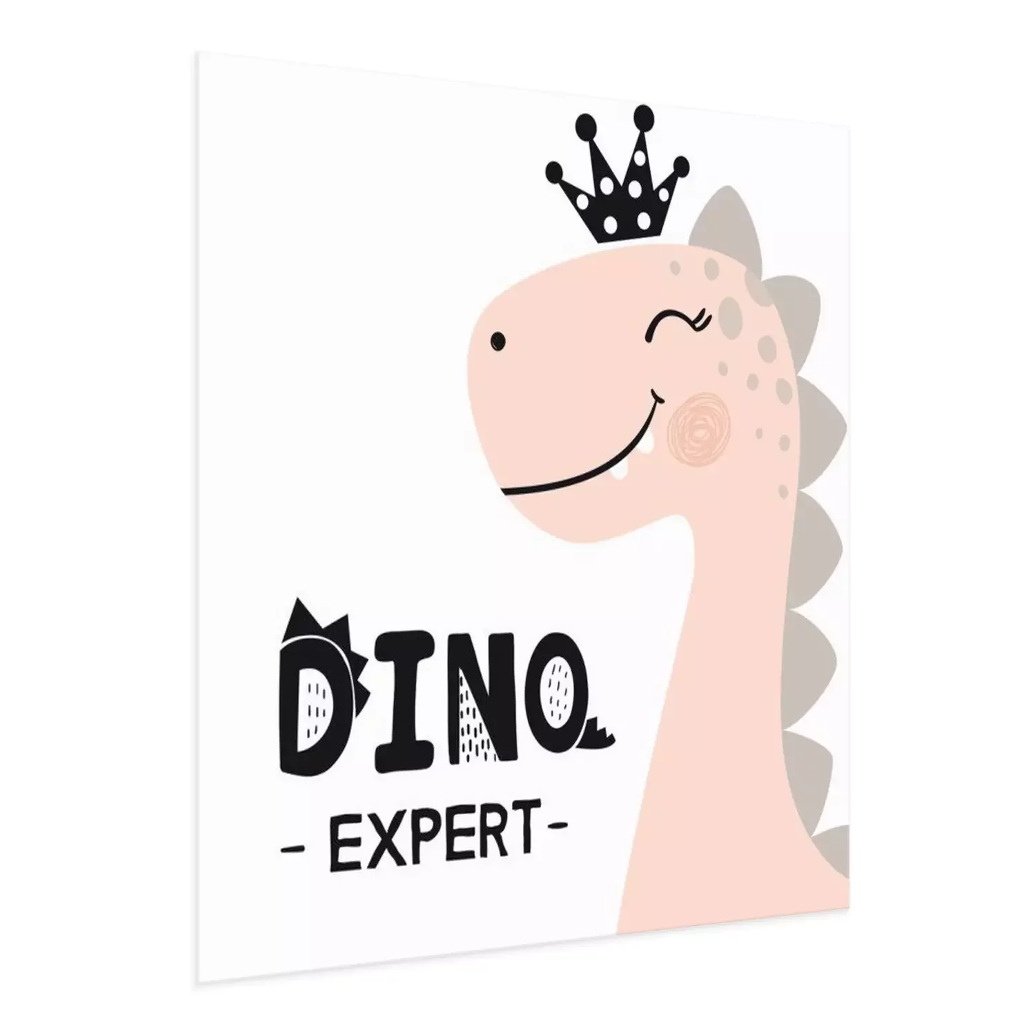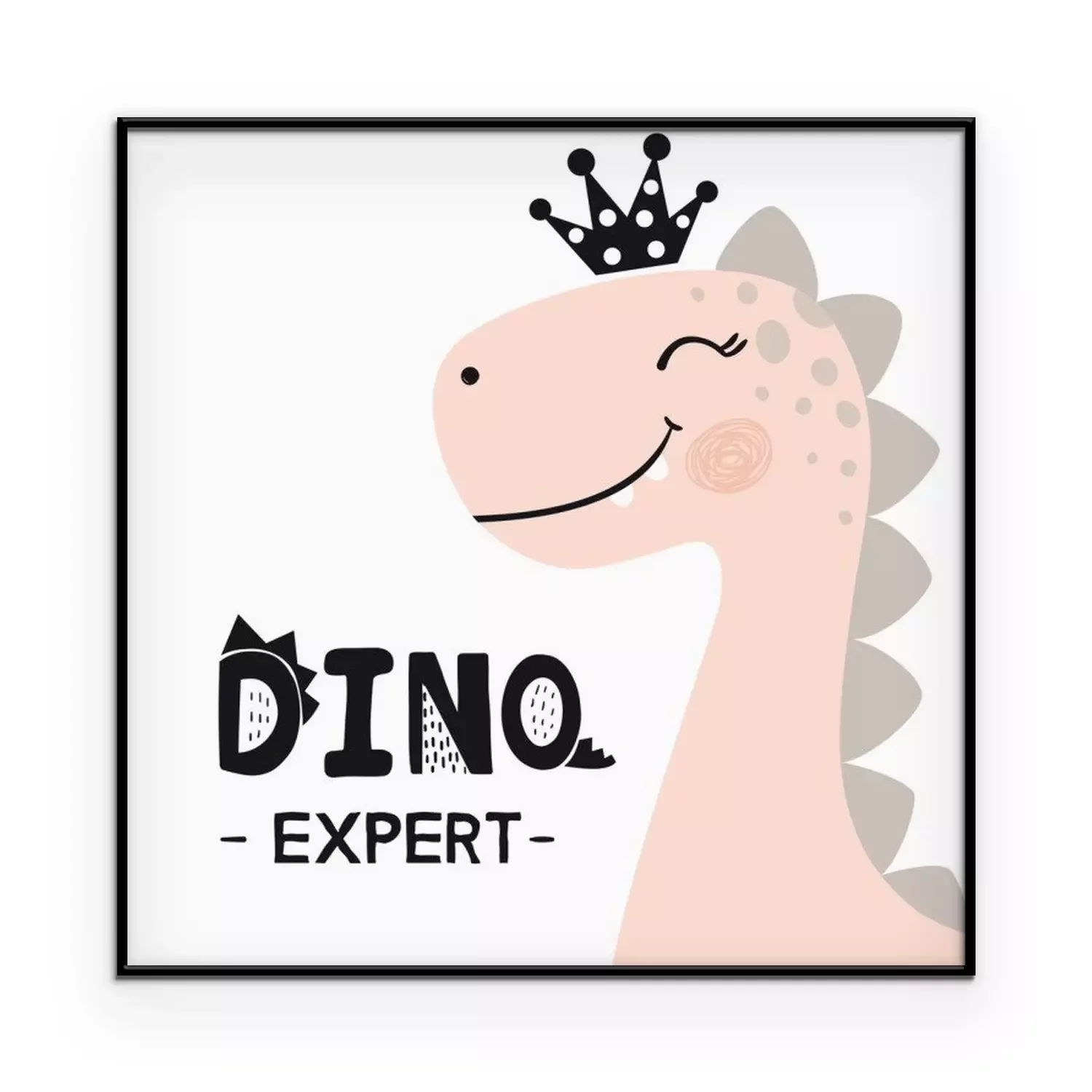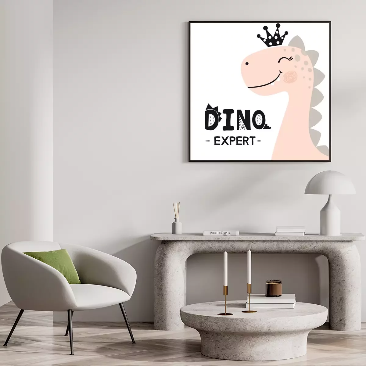 Poster  Un dinosaure rose avec une couronne à pois noirs