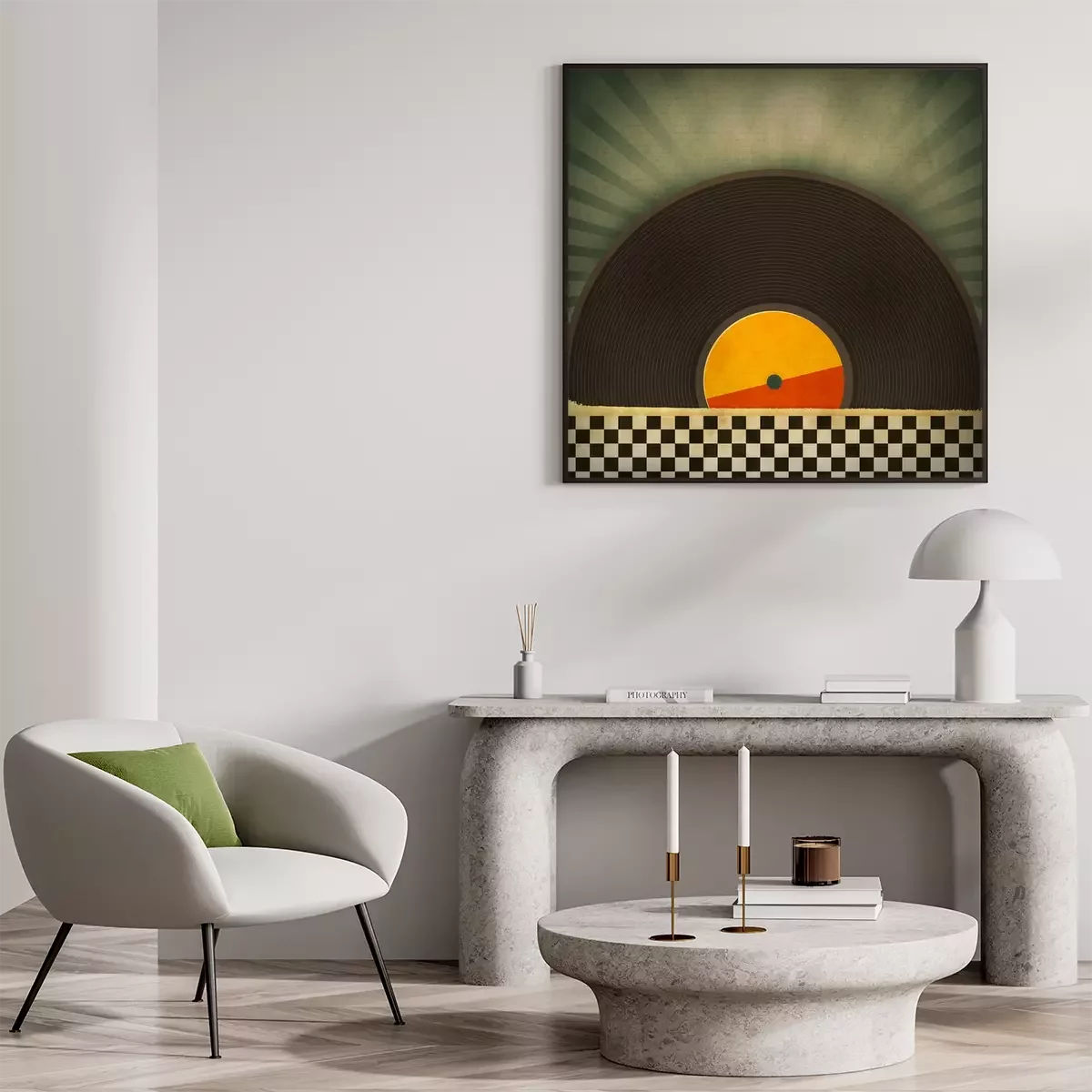 Poster  Un disque vinyle à succès dans une boîte en carton