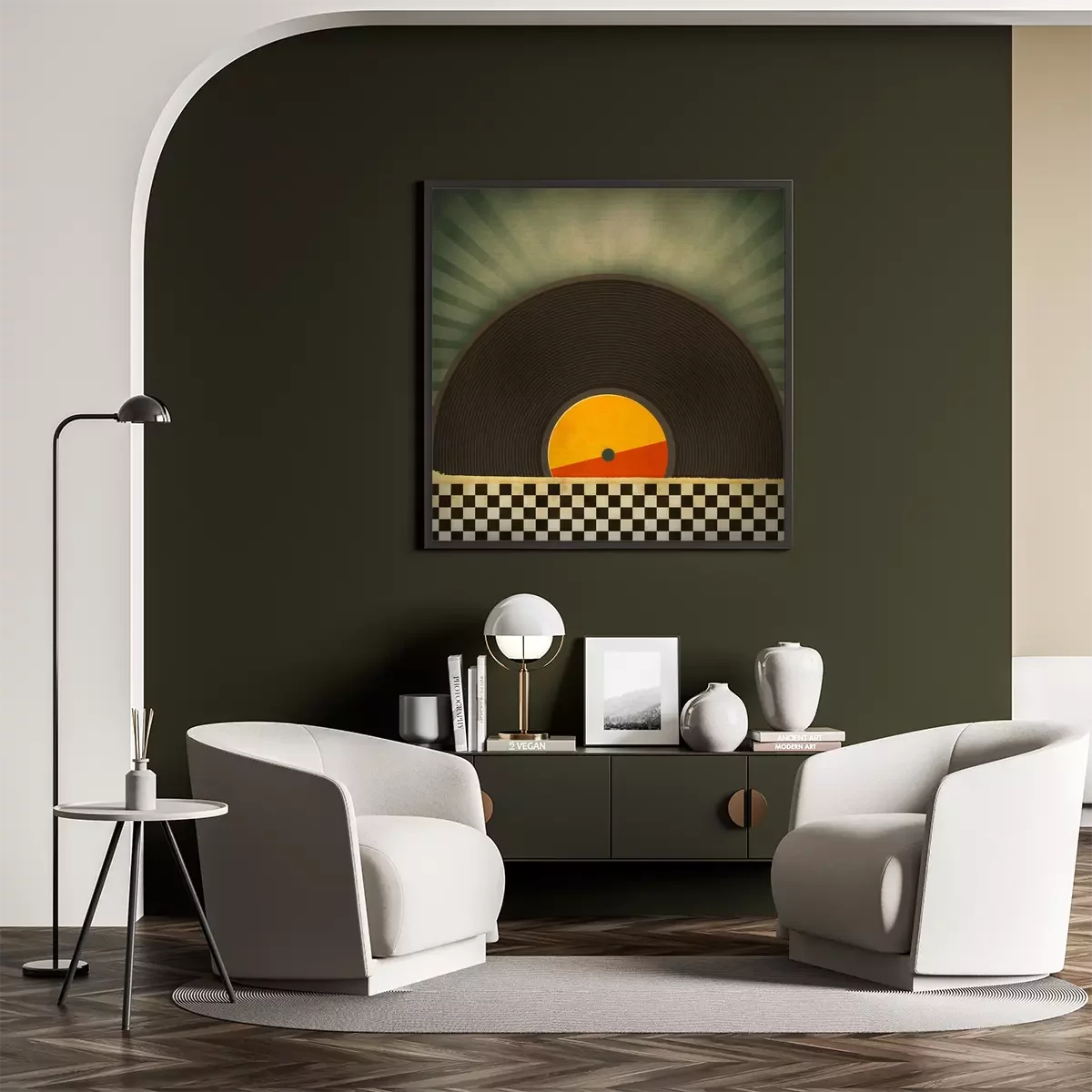 Poster : Un disque vinyle à succès dans une boîte en carton
