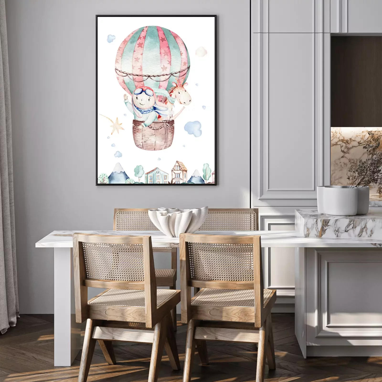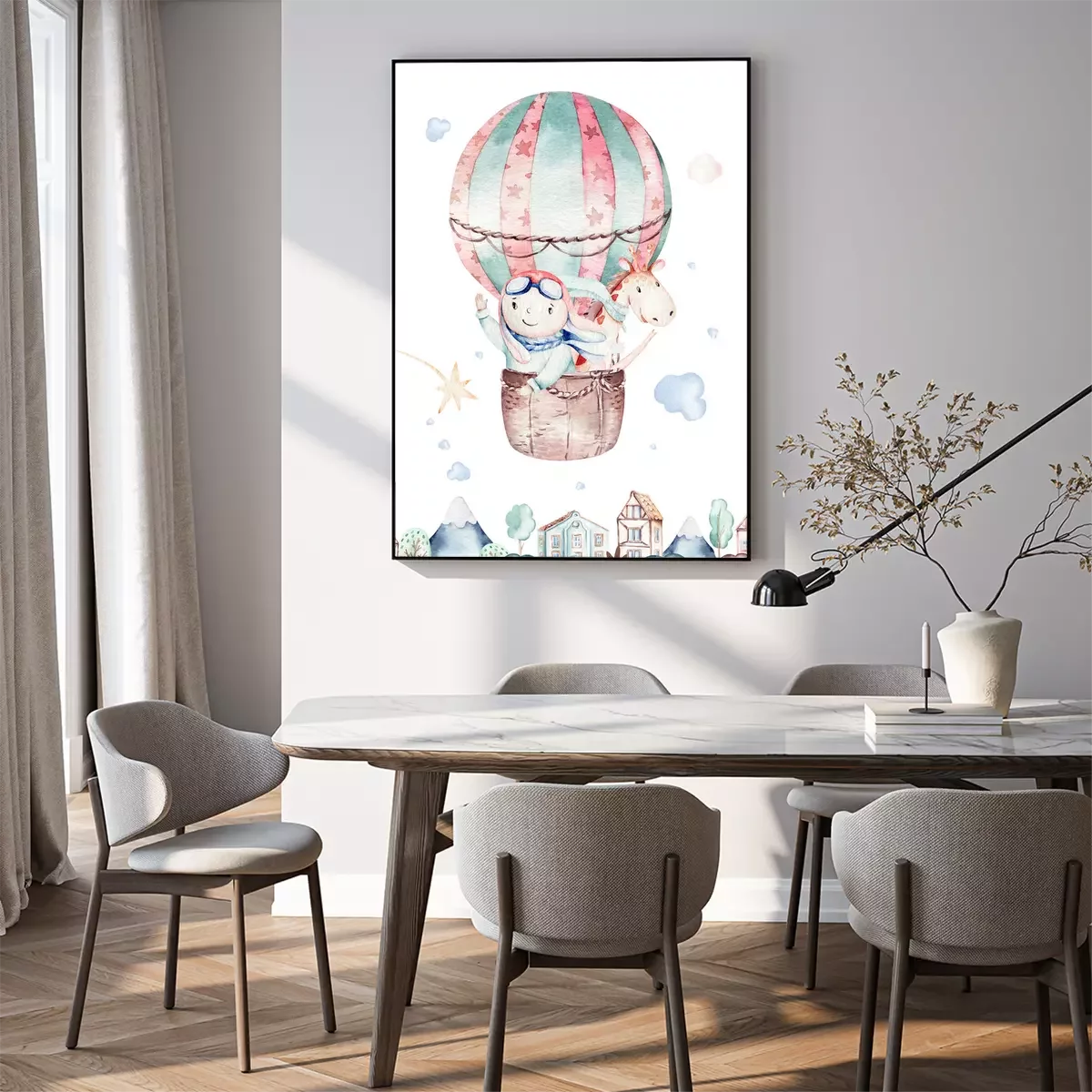 Avions, Montgolfières et ballons entre des nuages version aquarelle
