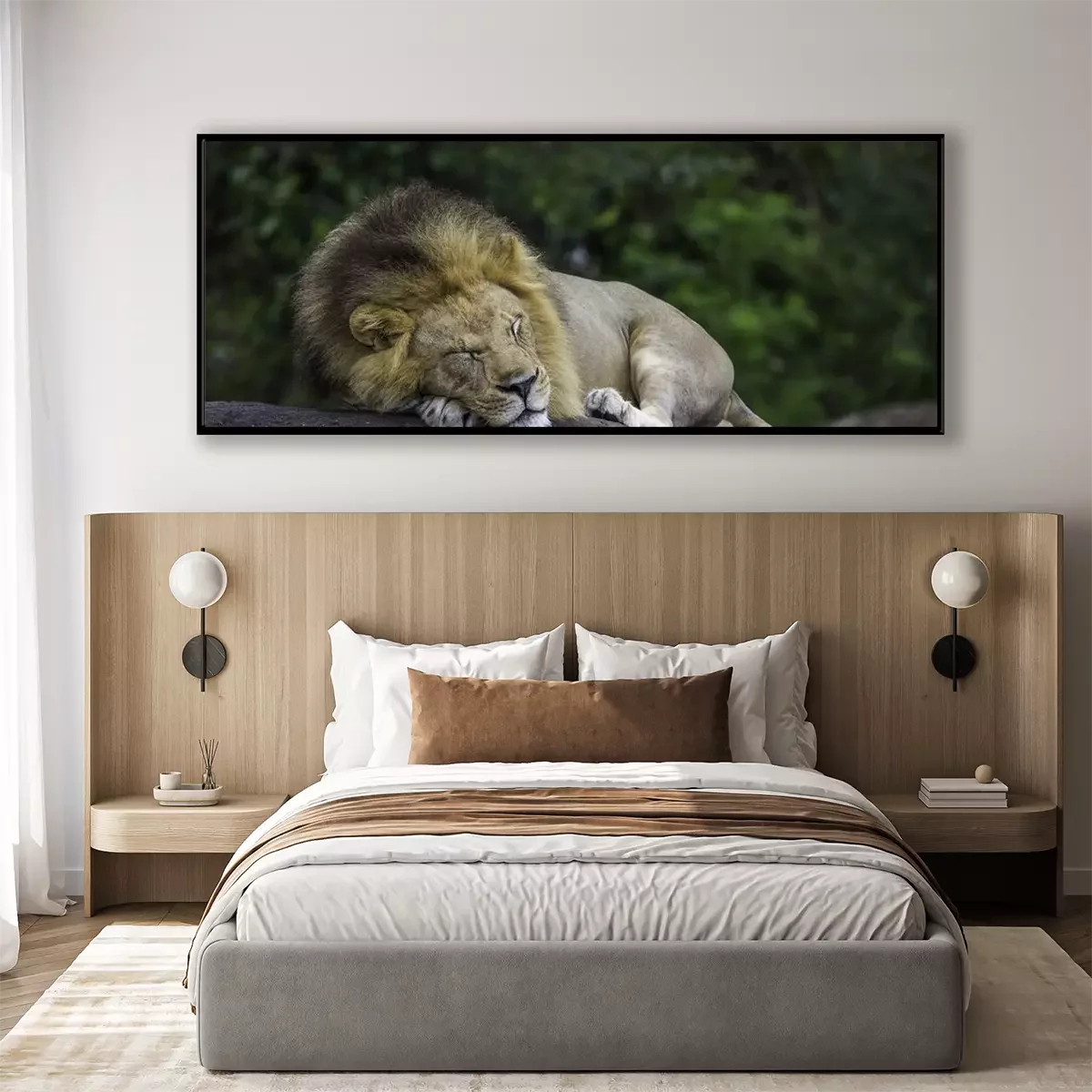 Poster : Un lion dormant sur un rocher