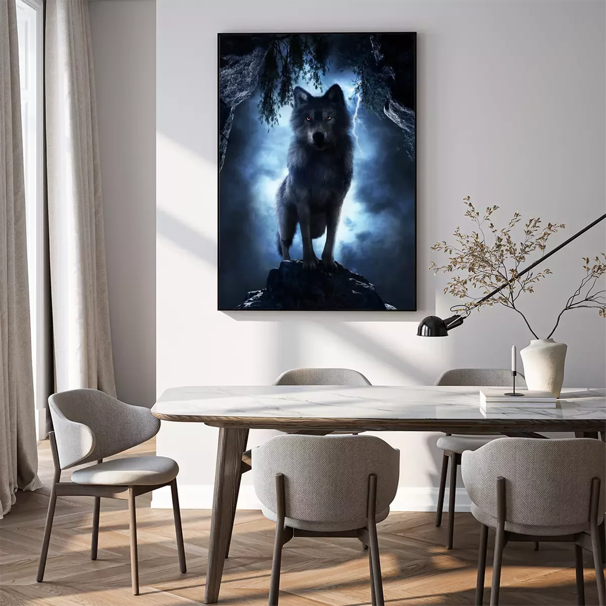 Poster : Un loup dans une lueur brillante