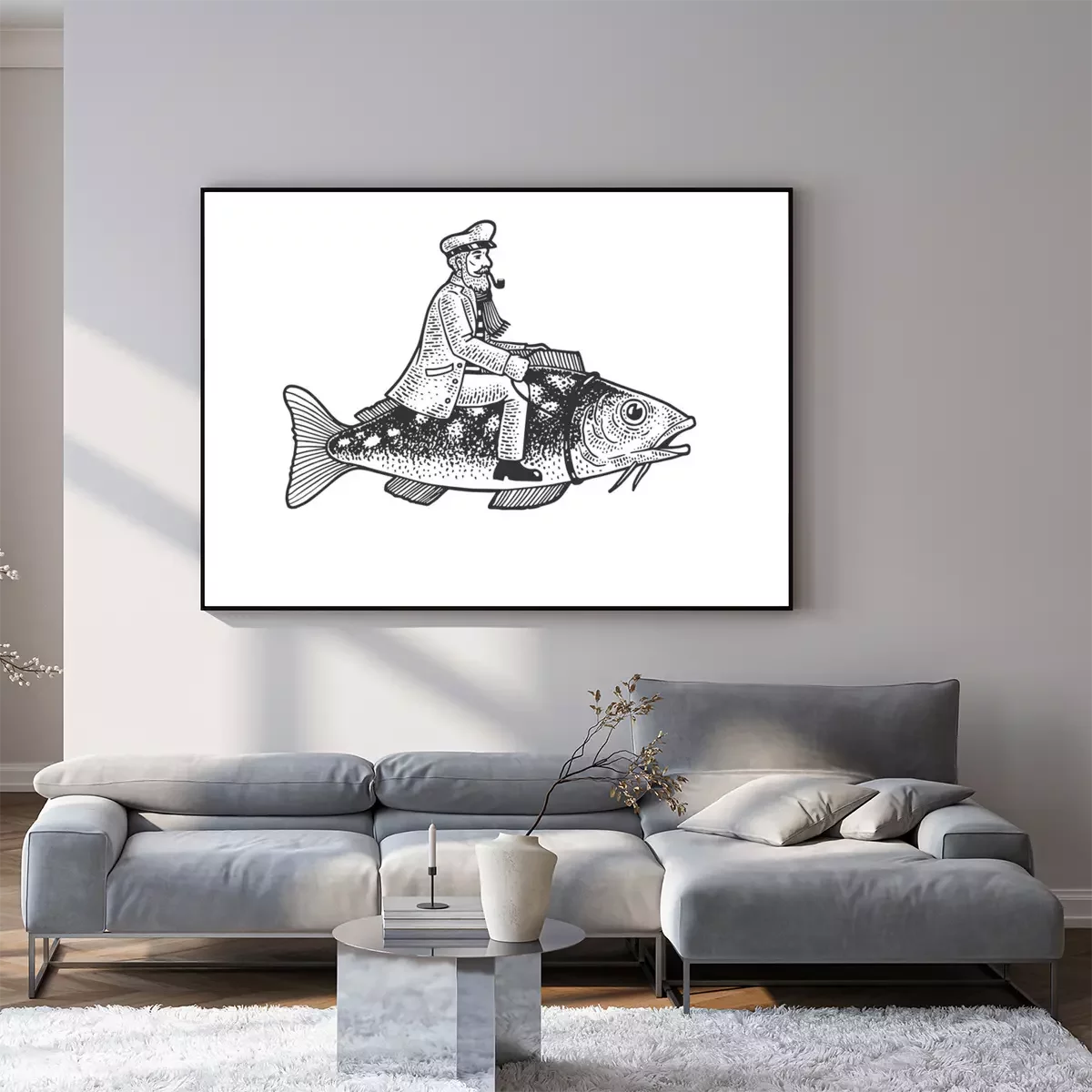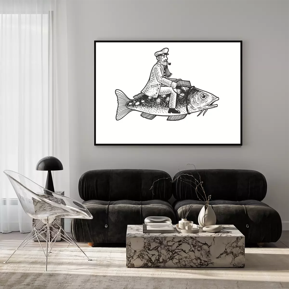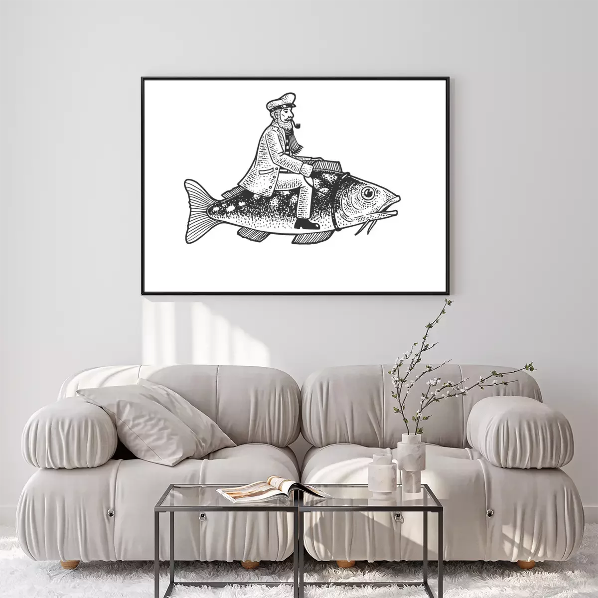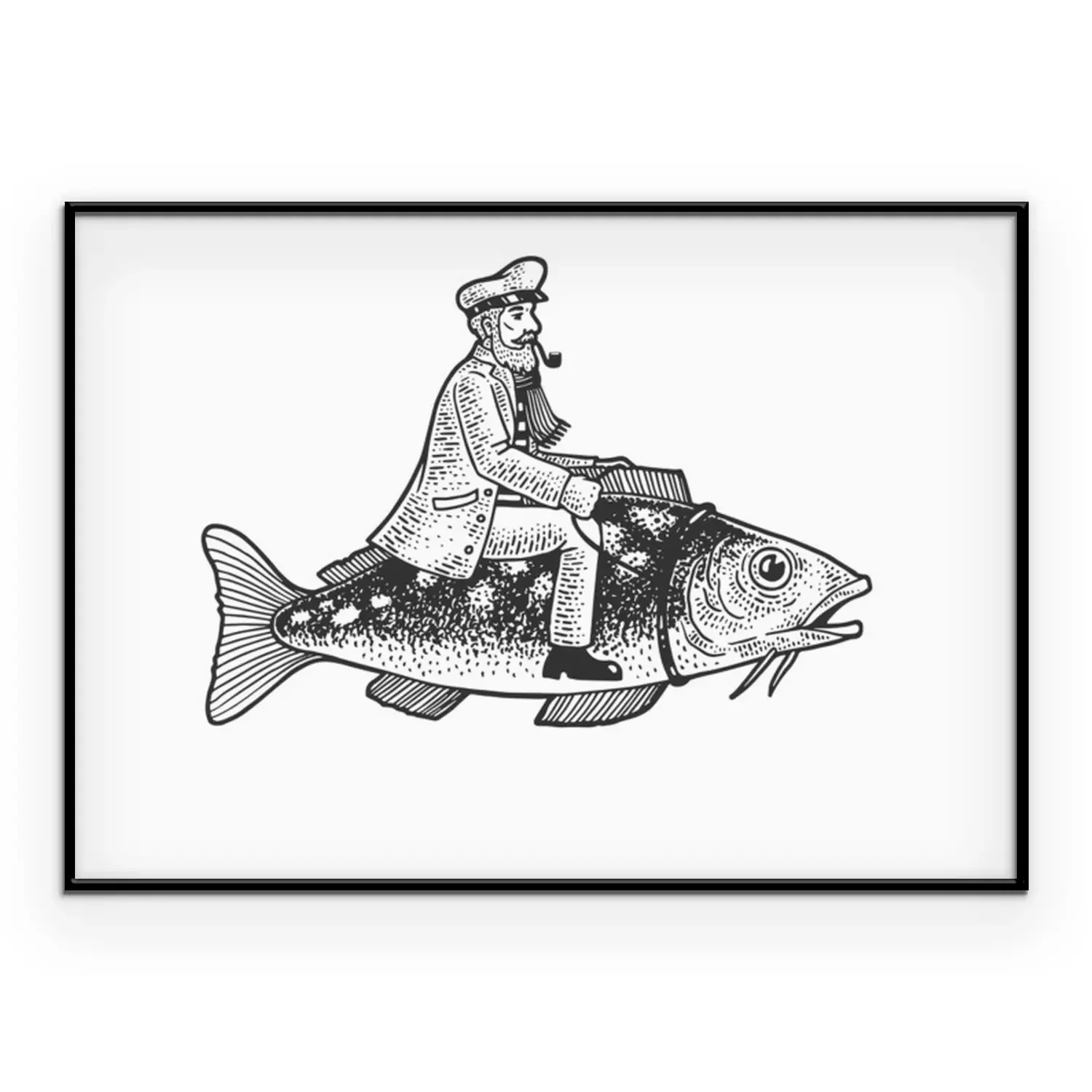 Dessin noir et blanc d'un gentilhomme sur une autruche