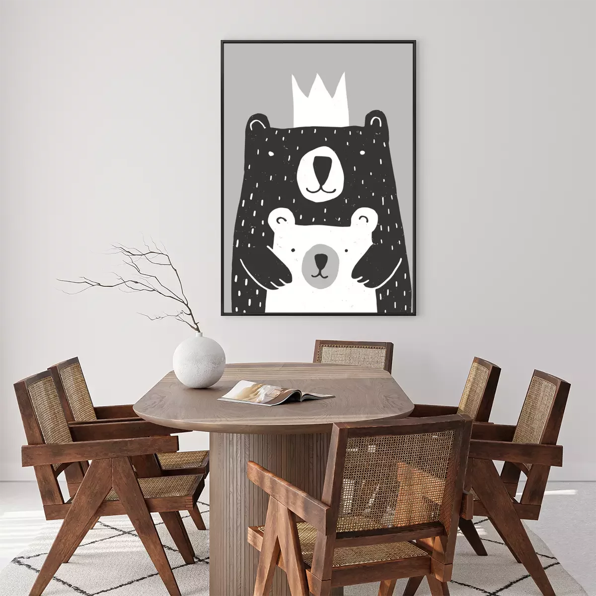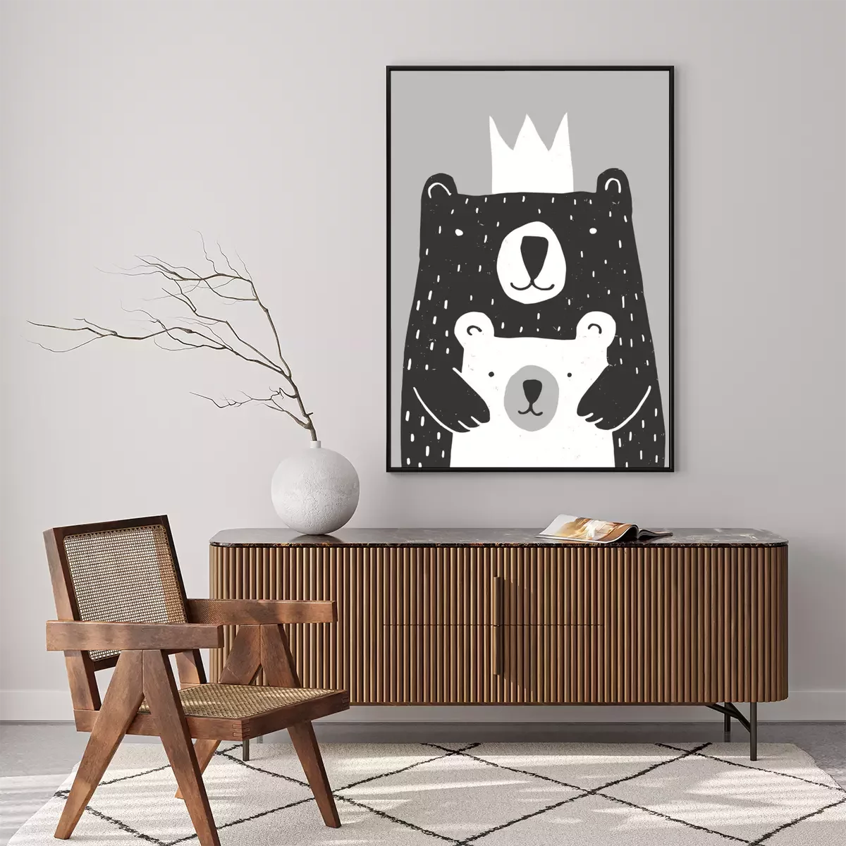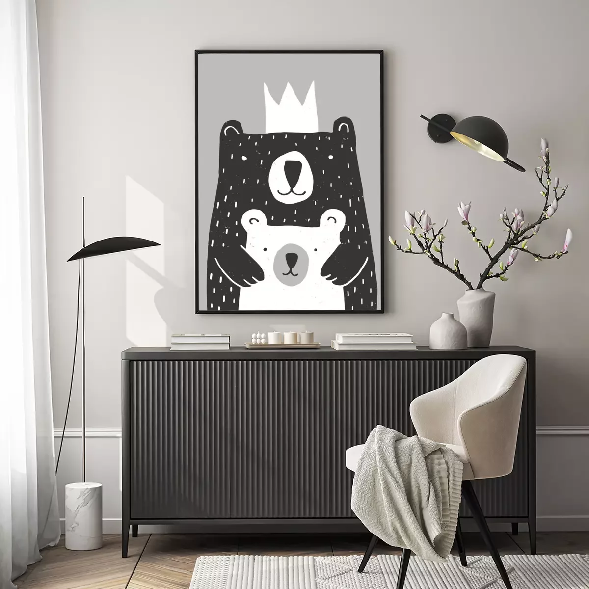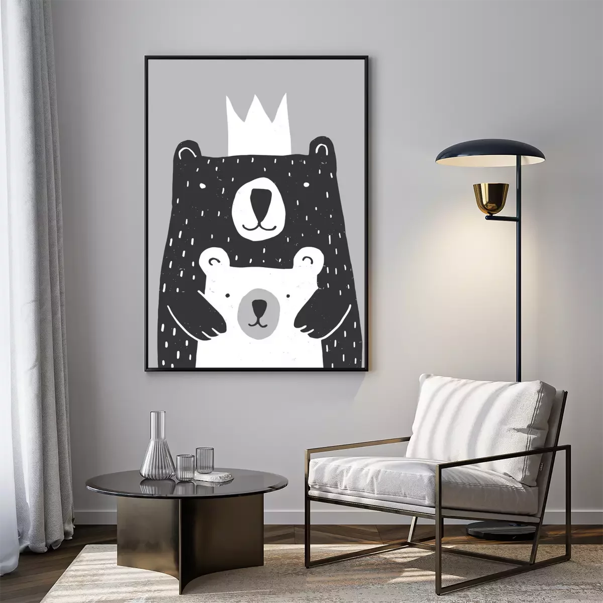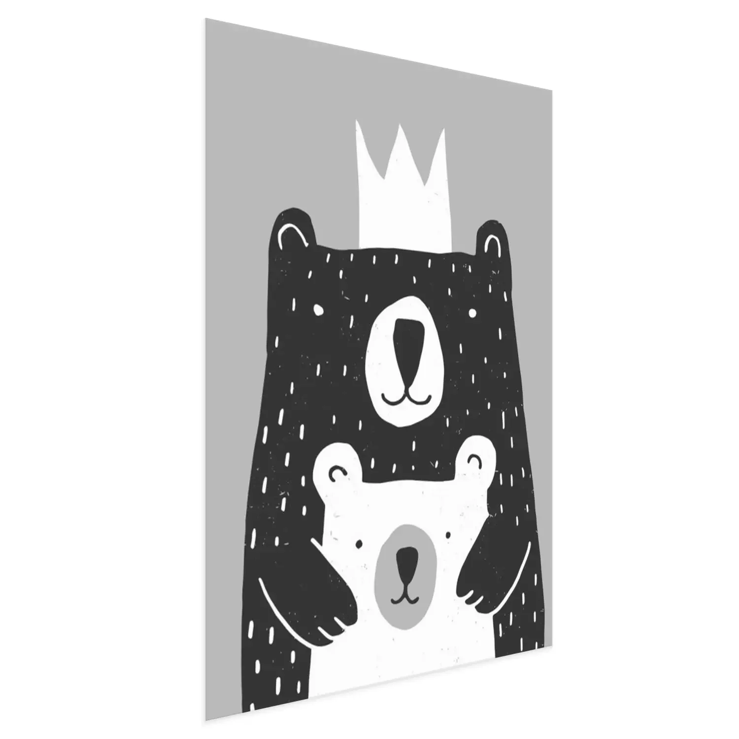 Poster  Un ours blanc et un ours noir avec une couronne dans une étreinte