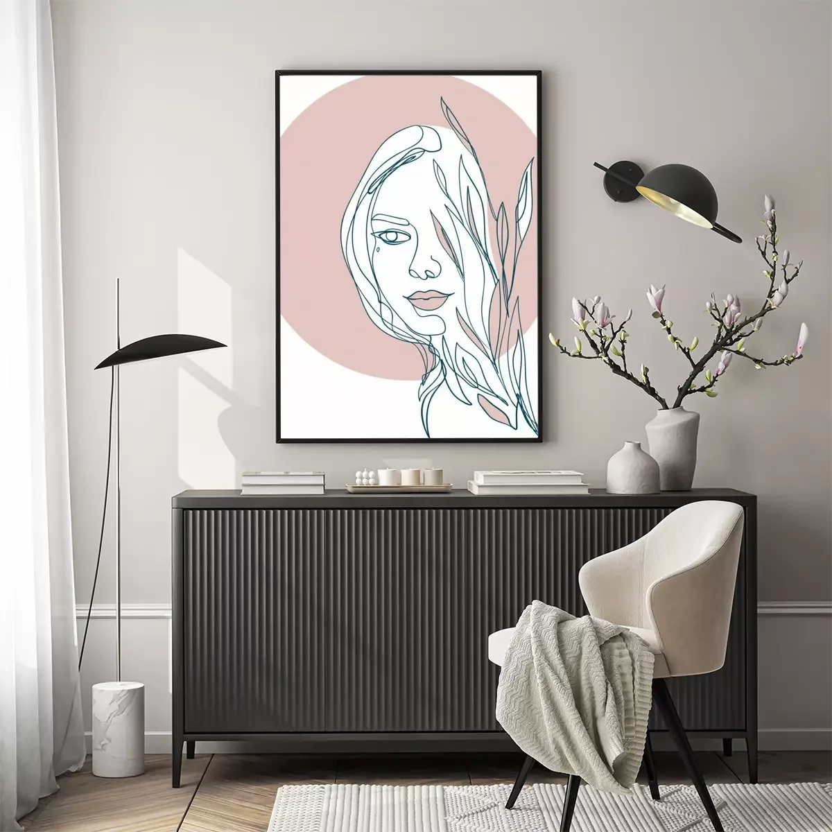 Poster  Un visage de femme caché derrière les branches