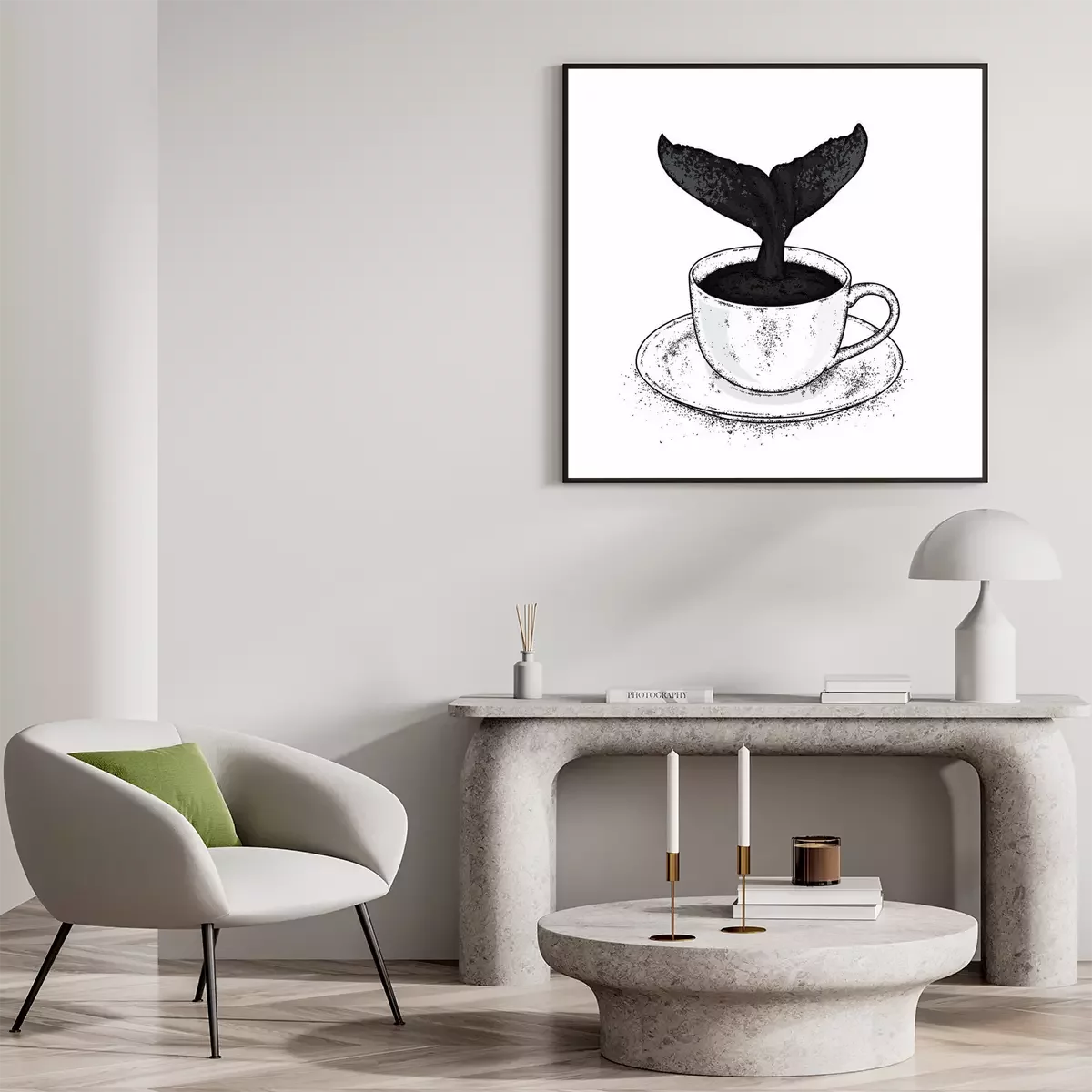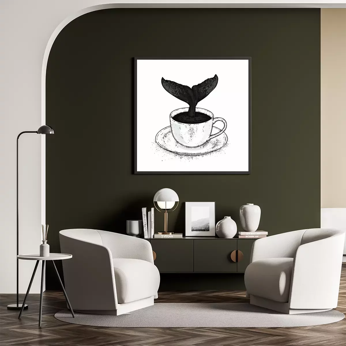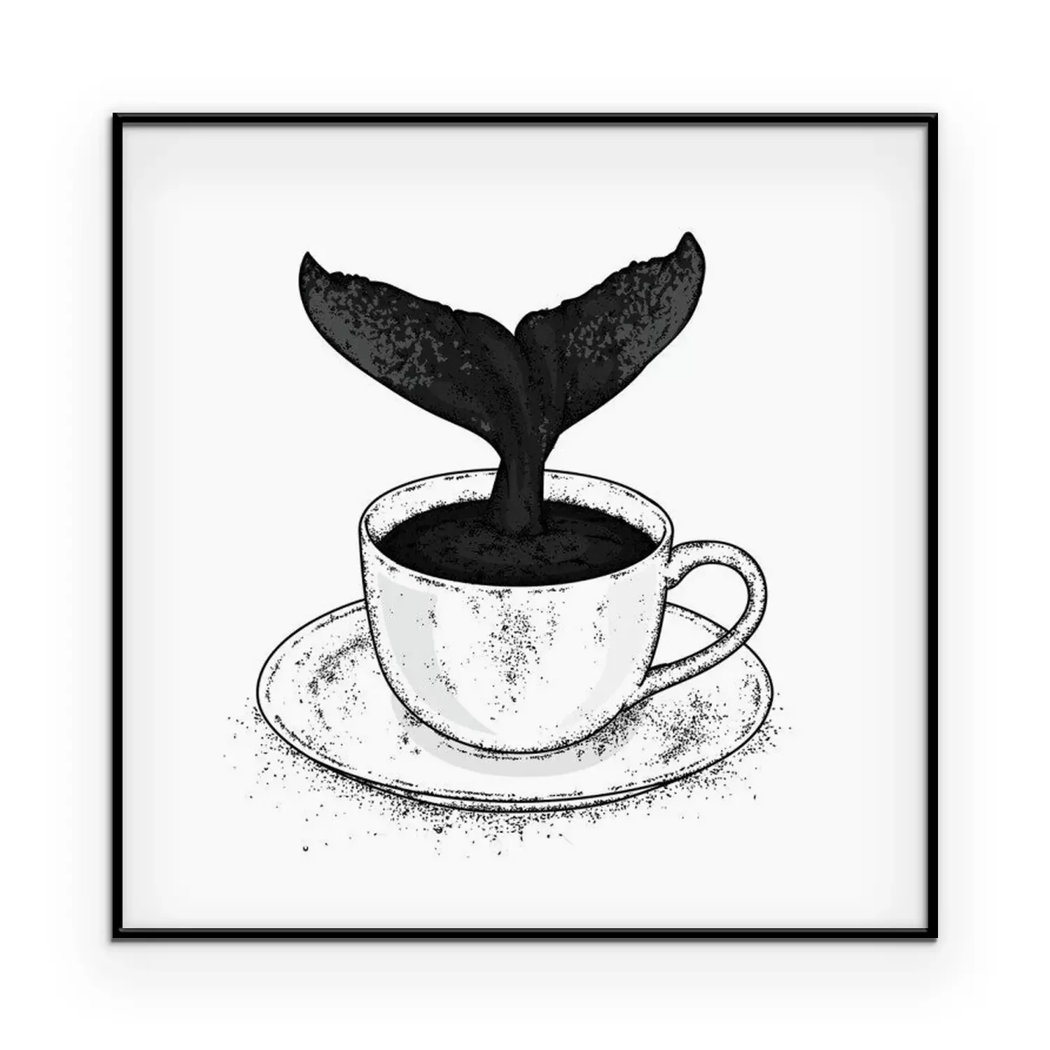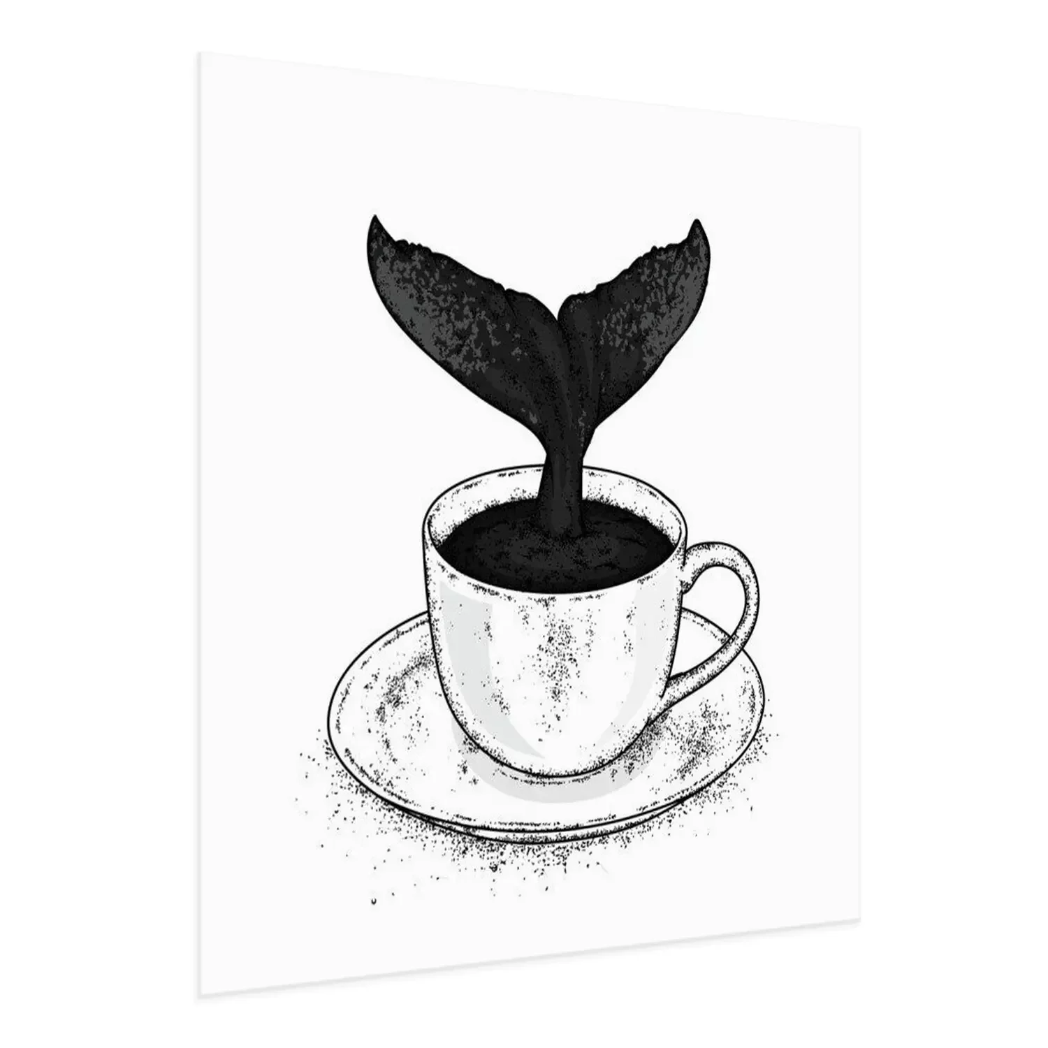 Poster  Une baleine plongeant dans l'eau. Illustration vectorielle pour une carte postale ou une affiche, imprimer pour les vêtements. Mer et océan. Baleine dans la tasse.