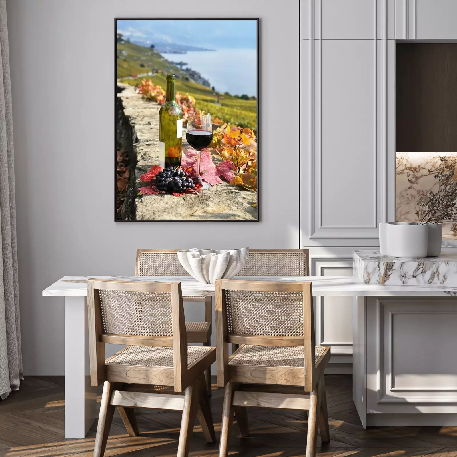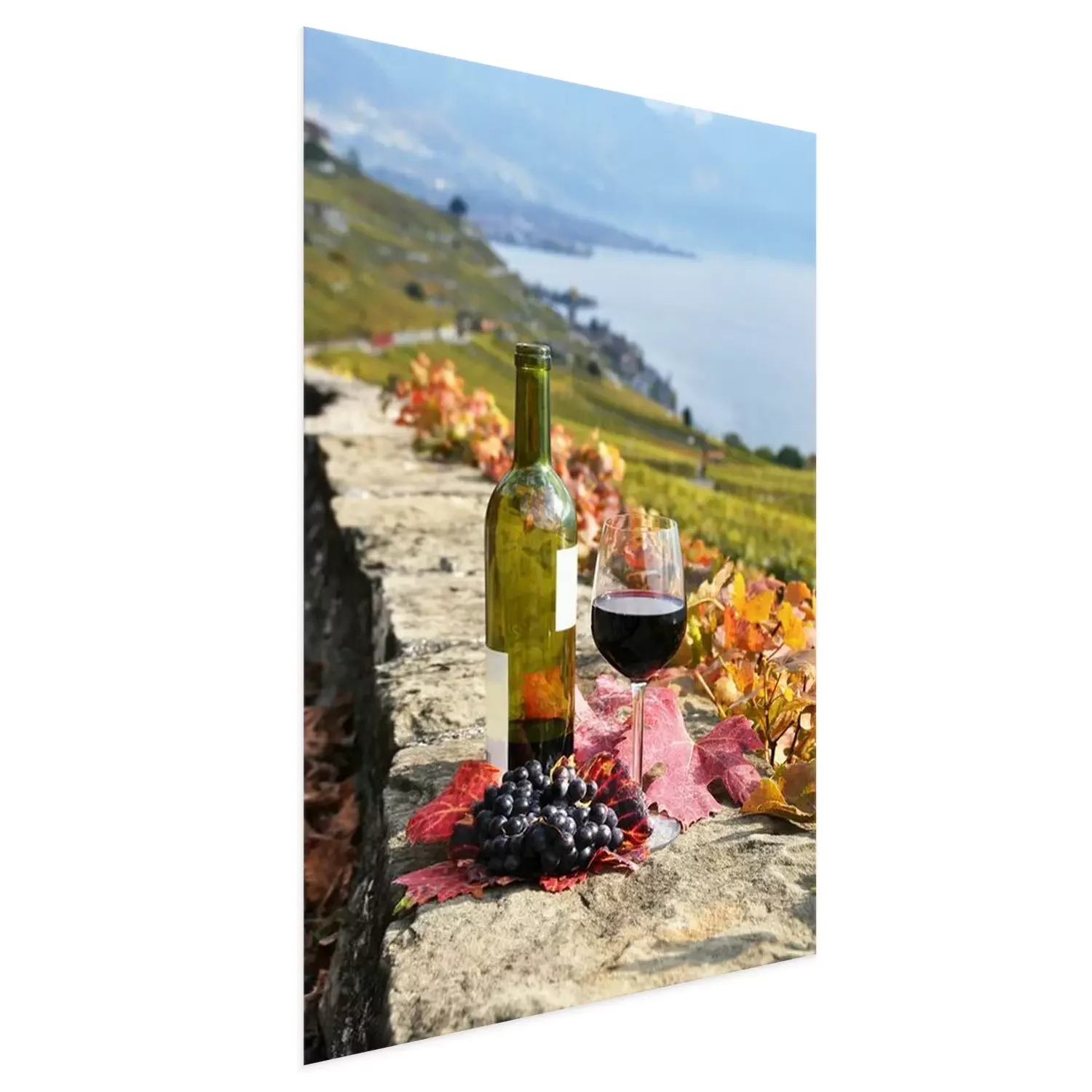 Verre de vin rouge sur le vignoble de terrasse dans la région de Lavaux, Swit