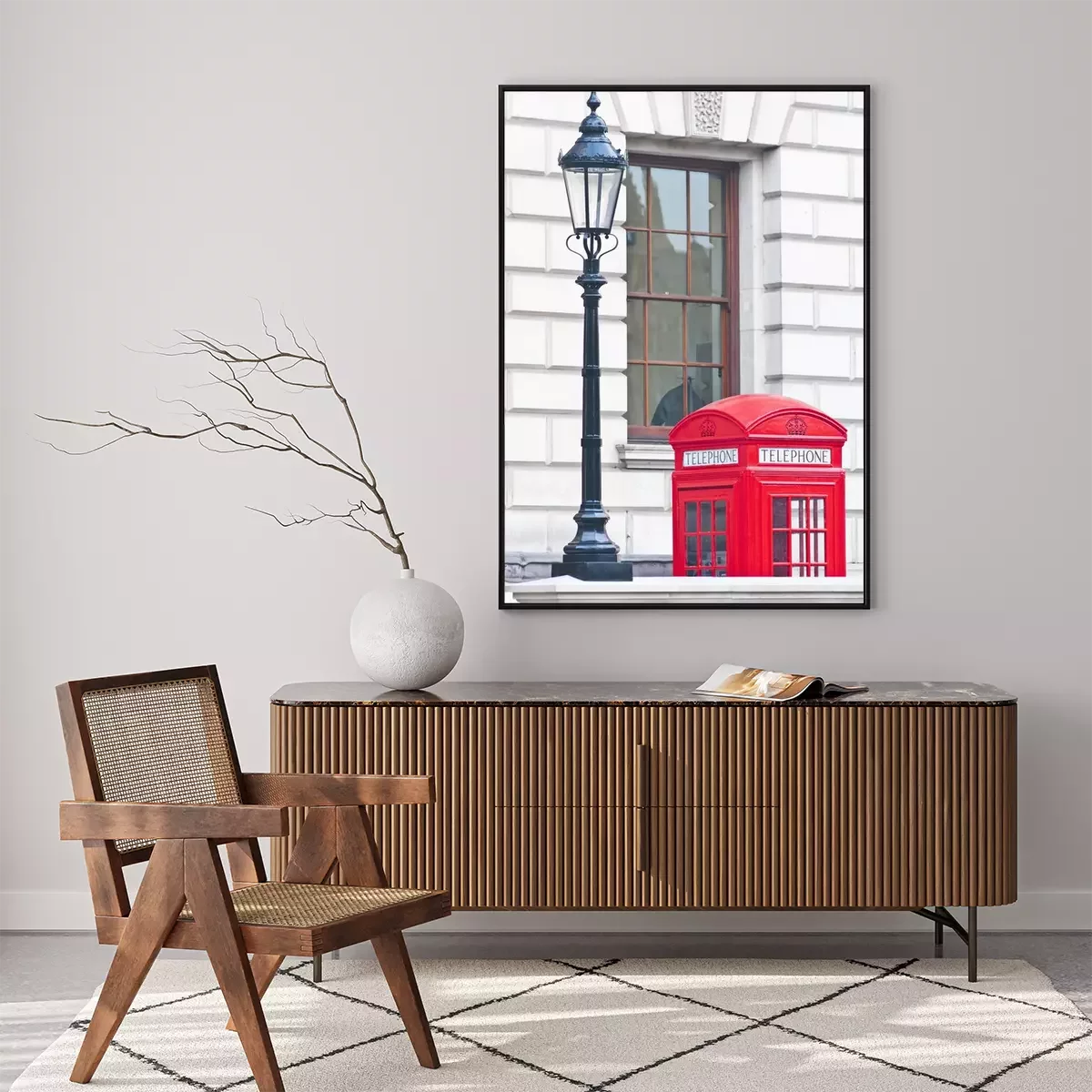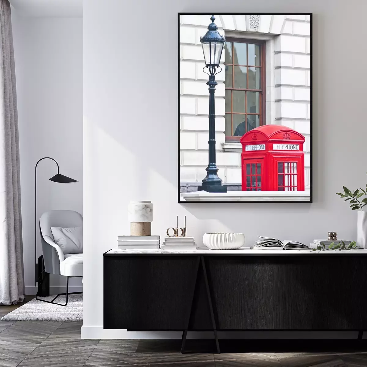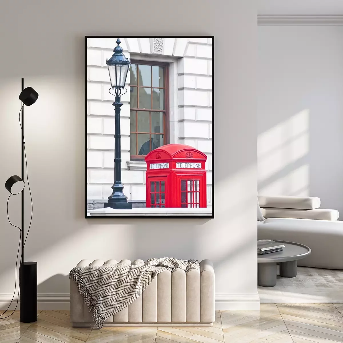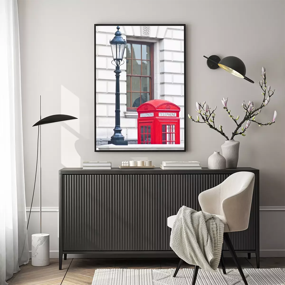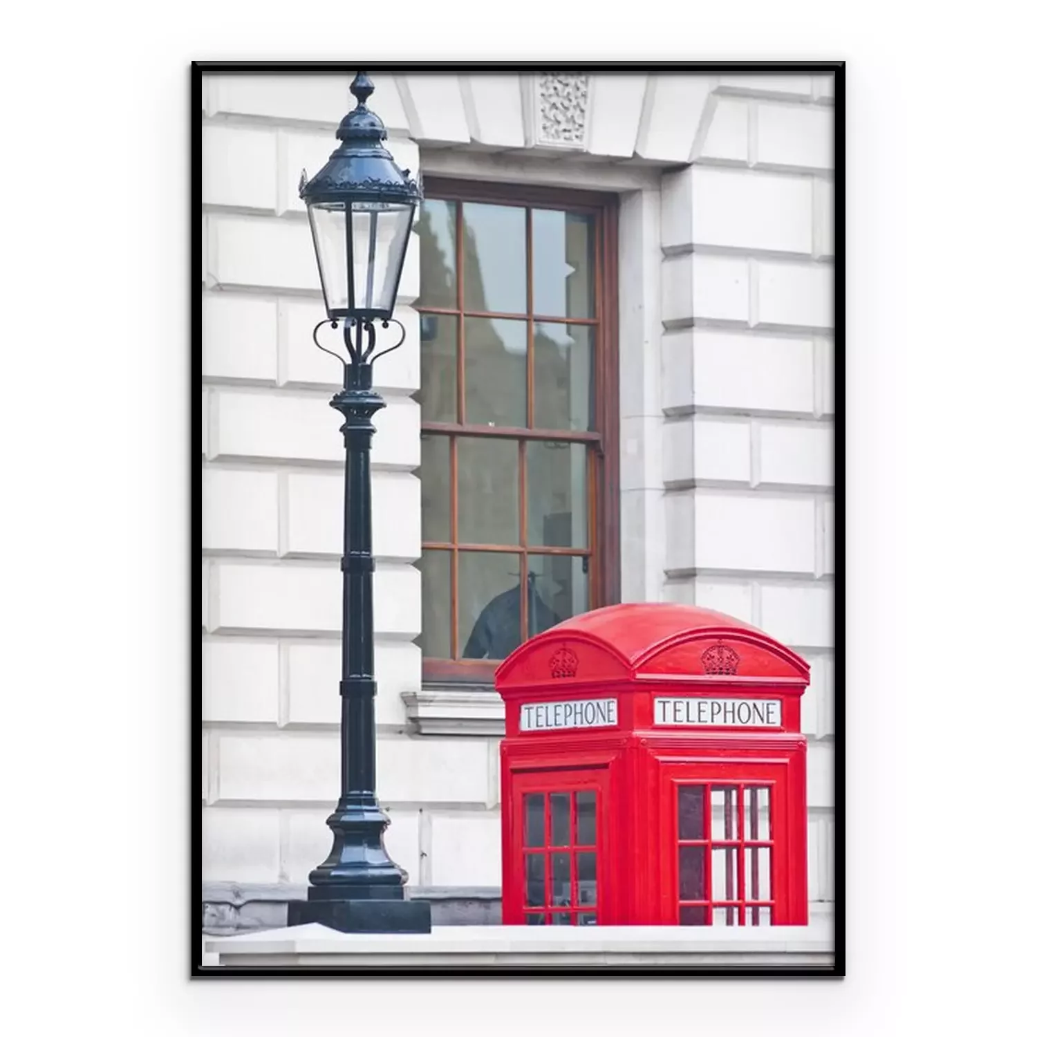 Poster  Une cabine téléphonique rouge à côté d'un phare
