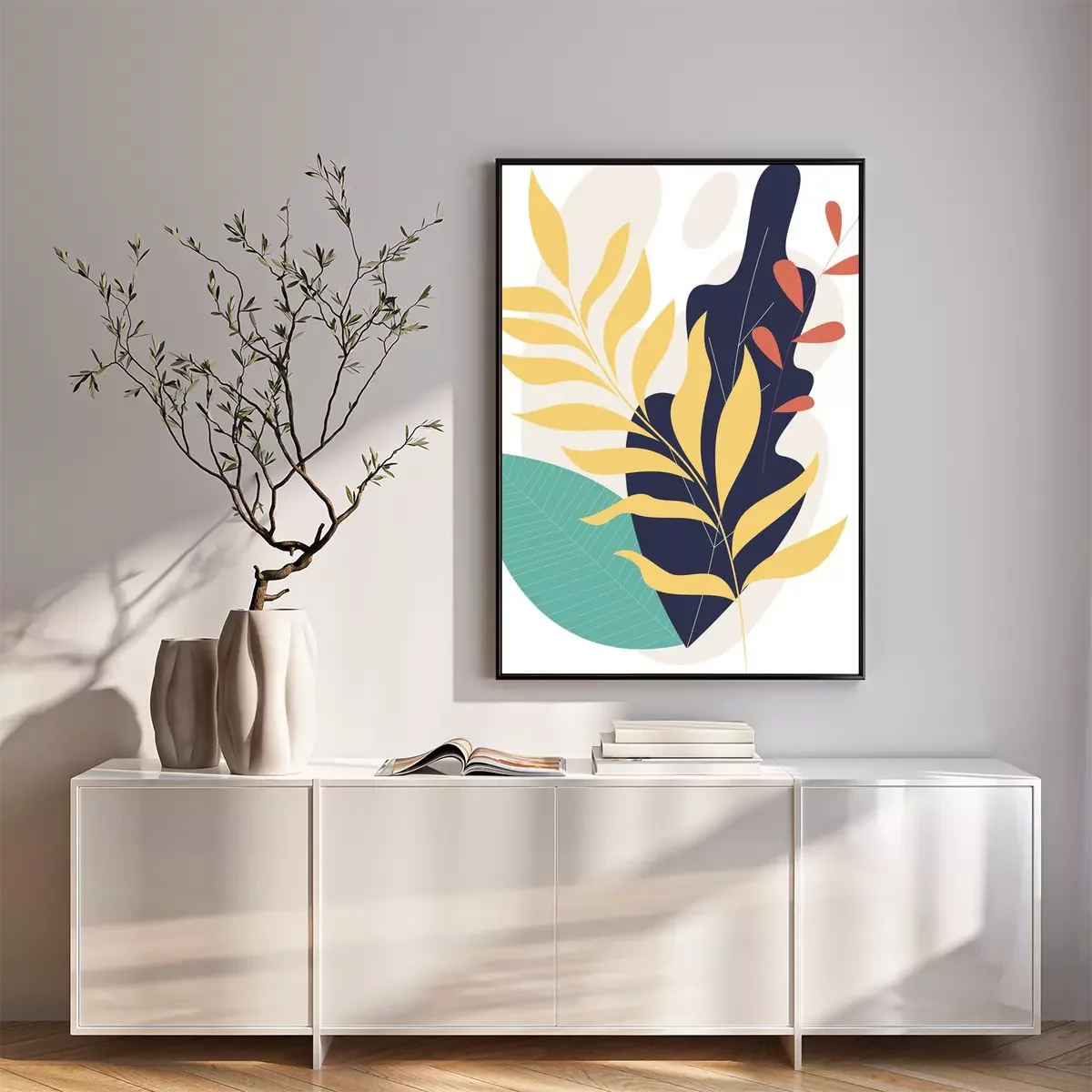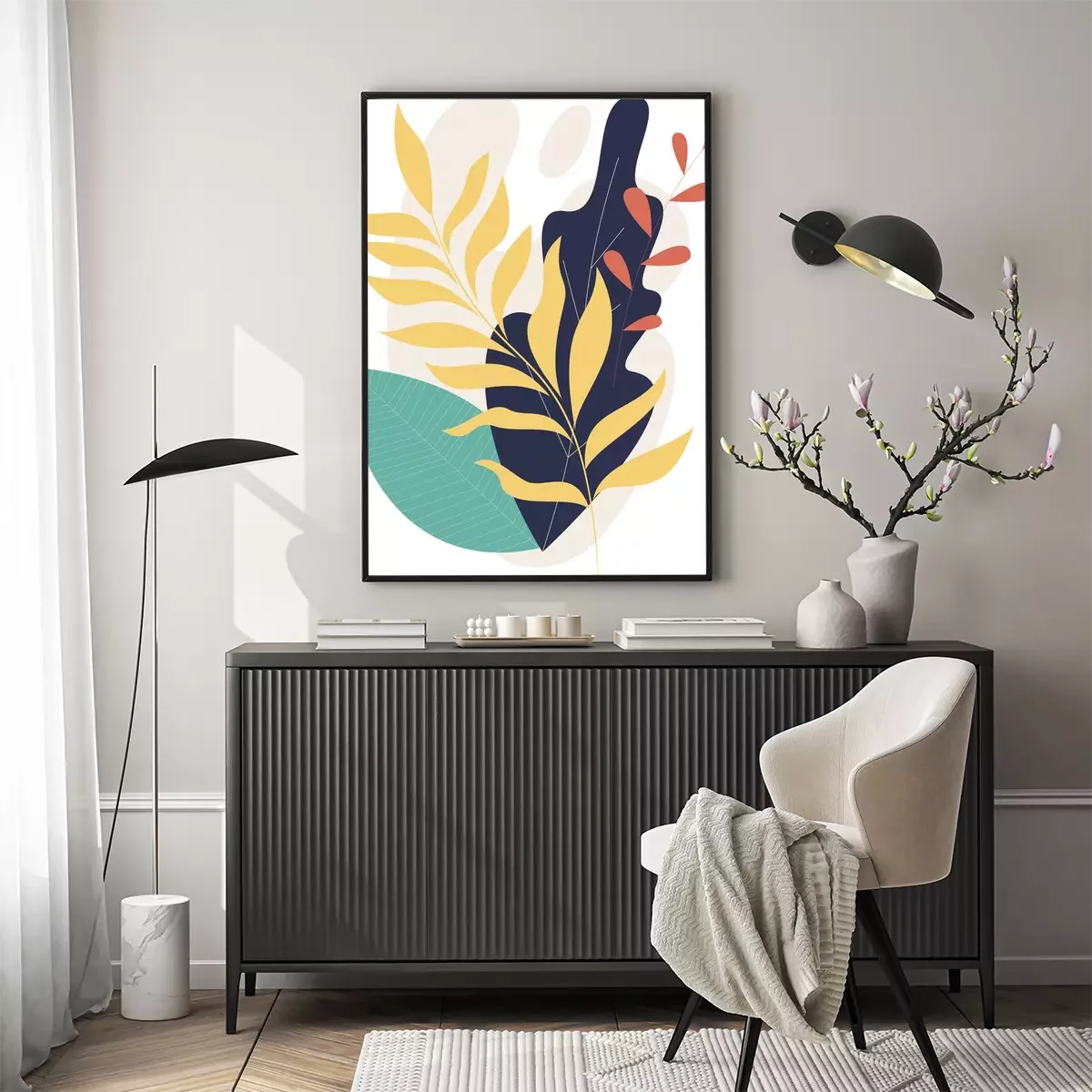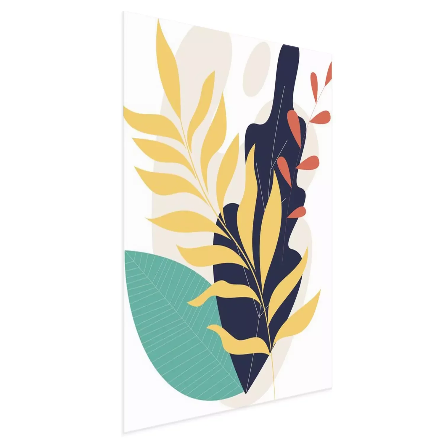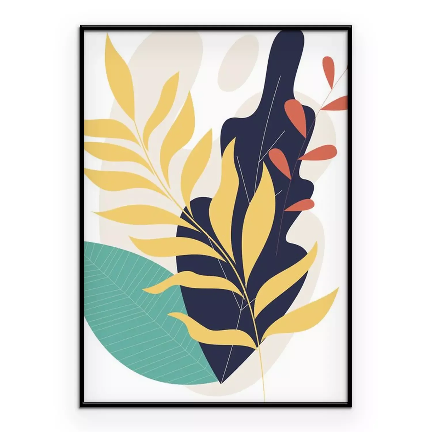 Poster  Une composition de feuilles colorées avec un accent noir