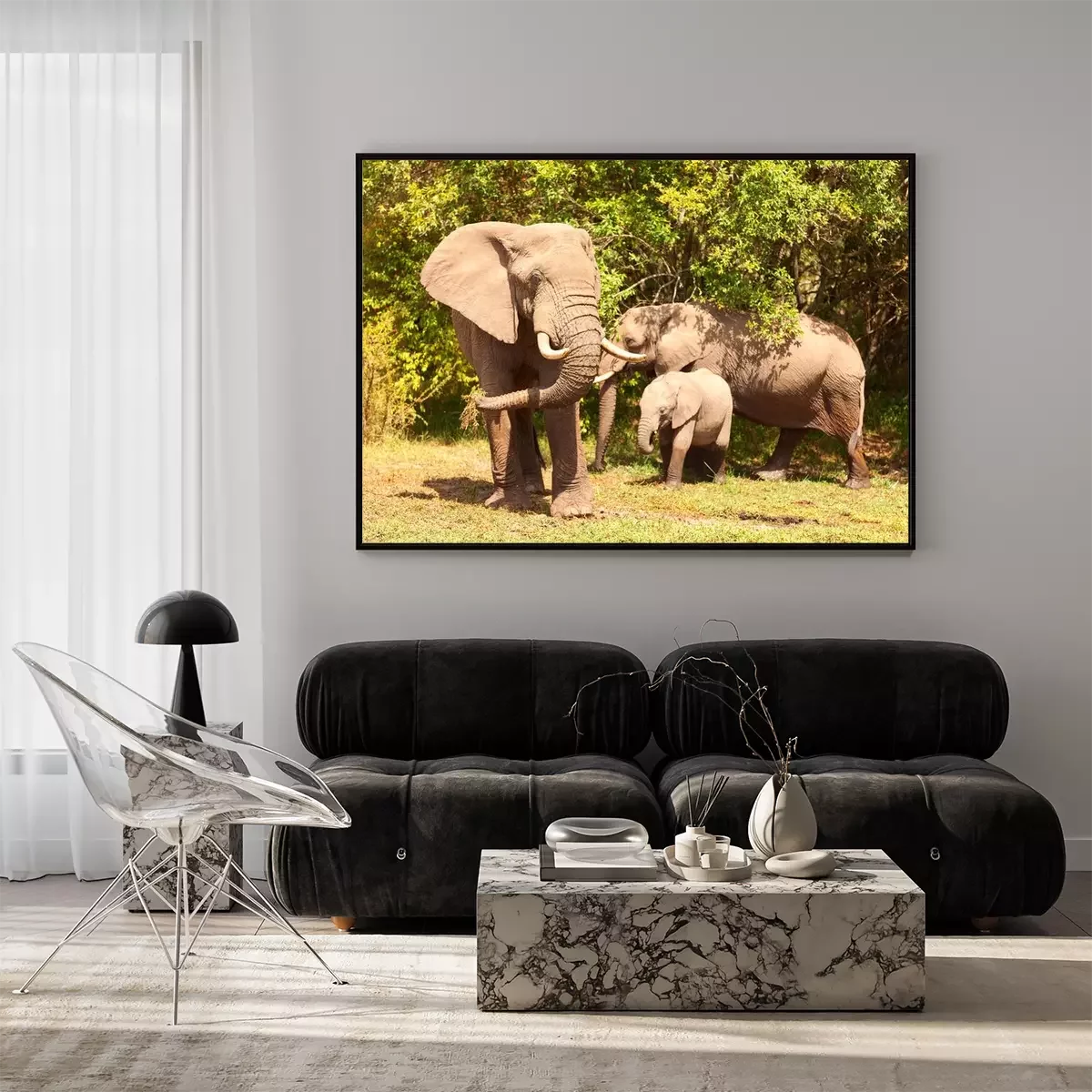 Poster  Une famille d'éléphants à l'orée de la forêt