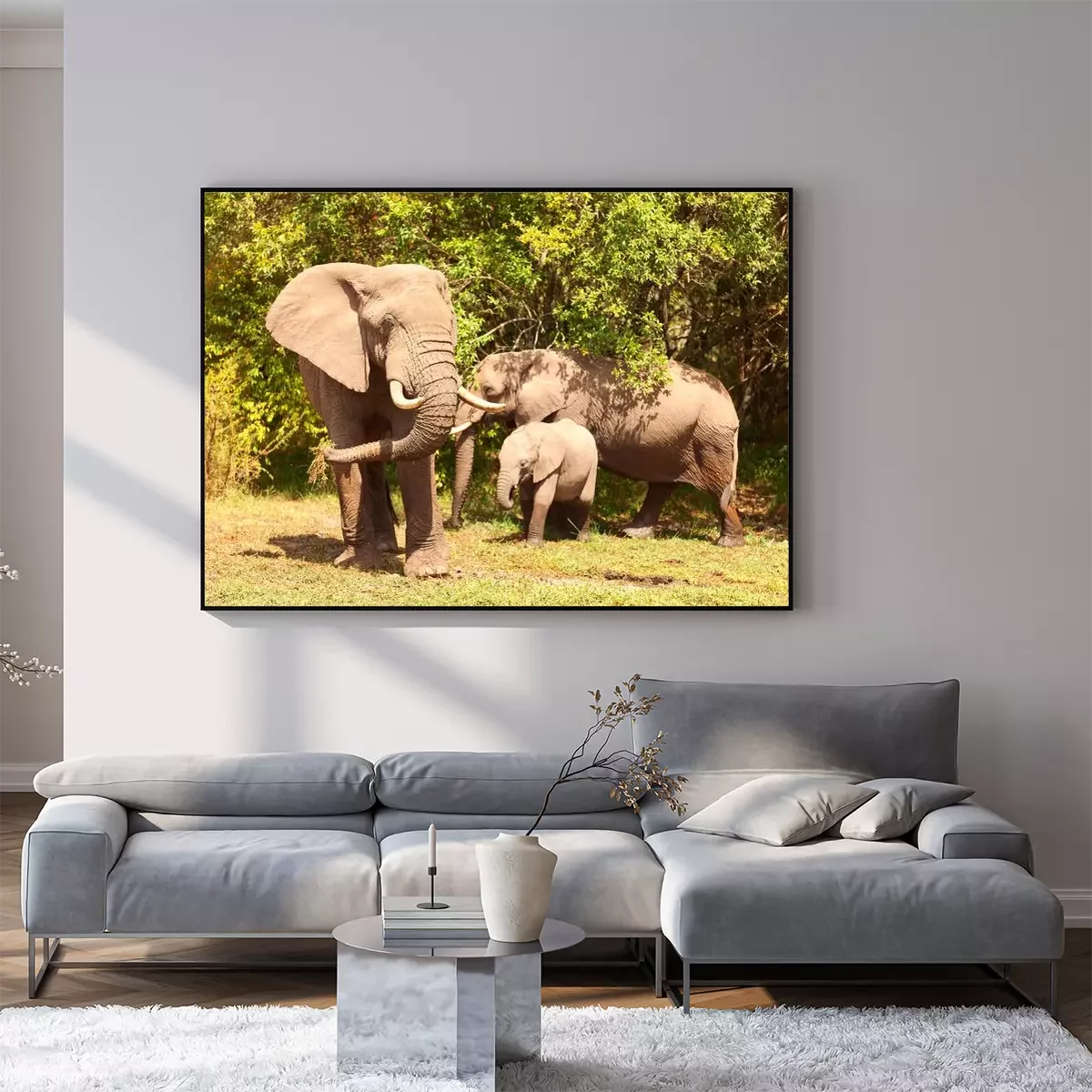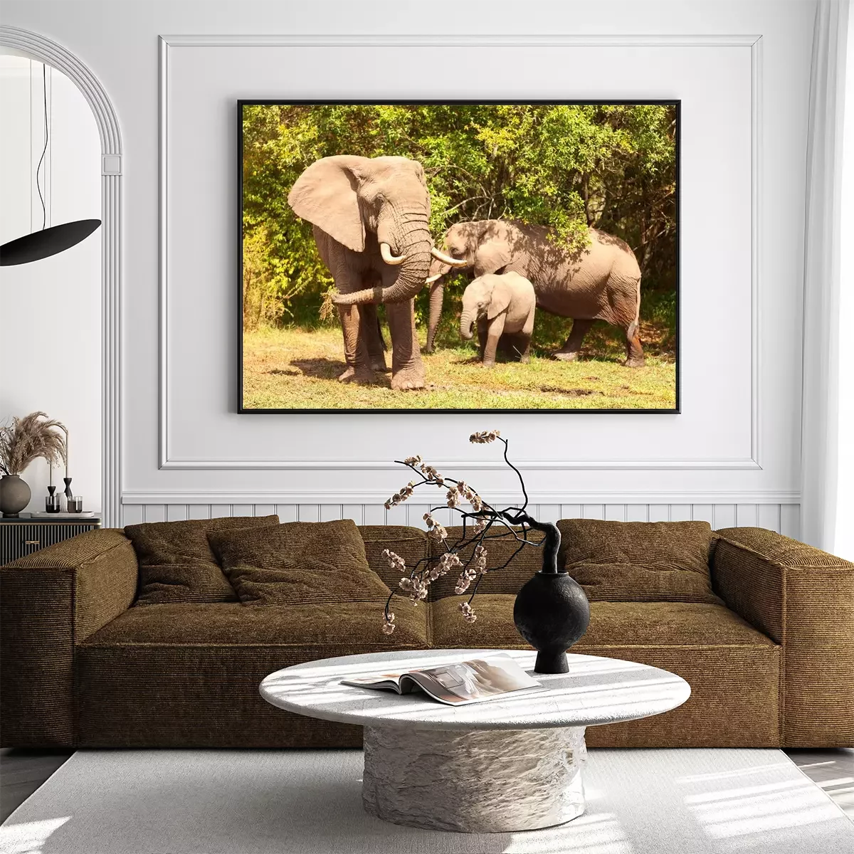 Poster : Une famille d'éléphants à l'orée de la forêt