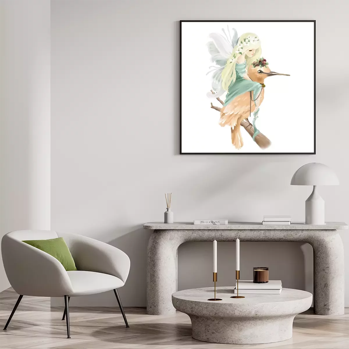 Peint à la main, huile texturé bel oiseau sur une branche avec une couronne florale, isolé sur blanc