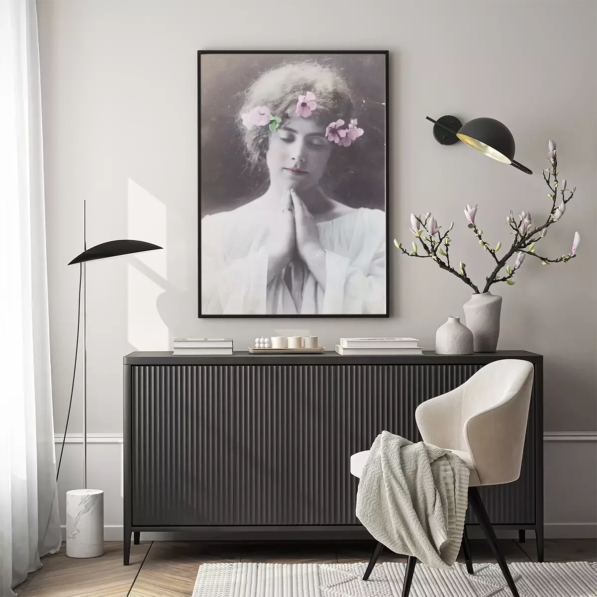 Poster  Une femme avec des fleurs dans les cheveux