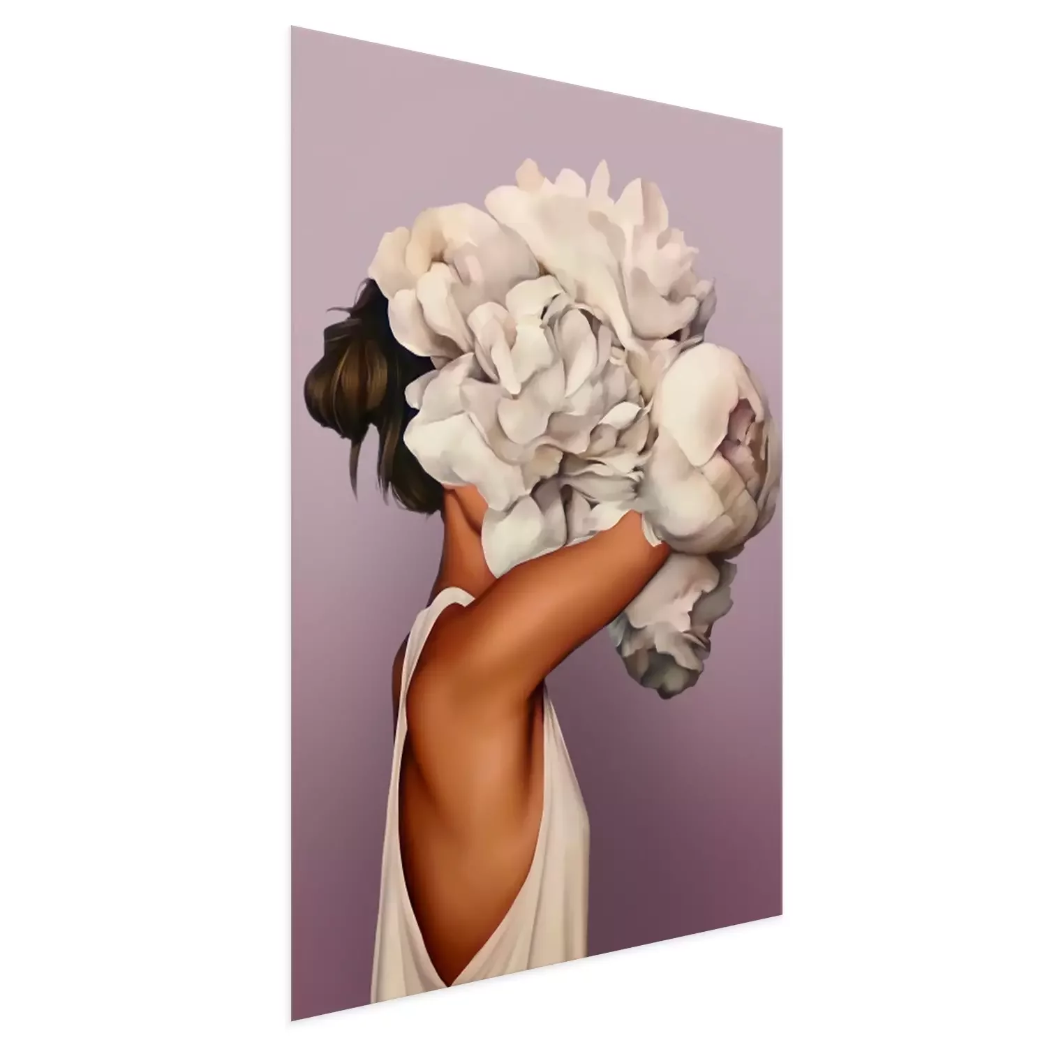 Poster : Une femme immergée dans des fleurs blanches