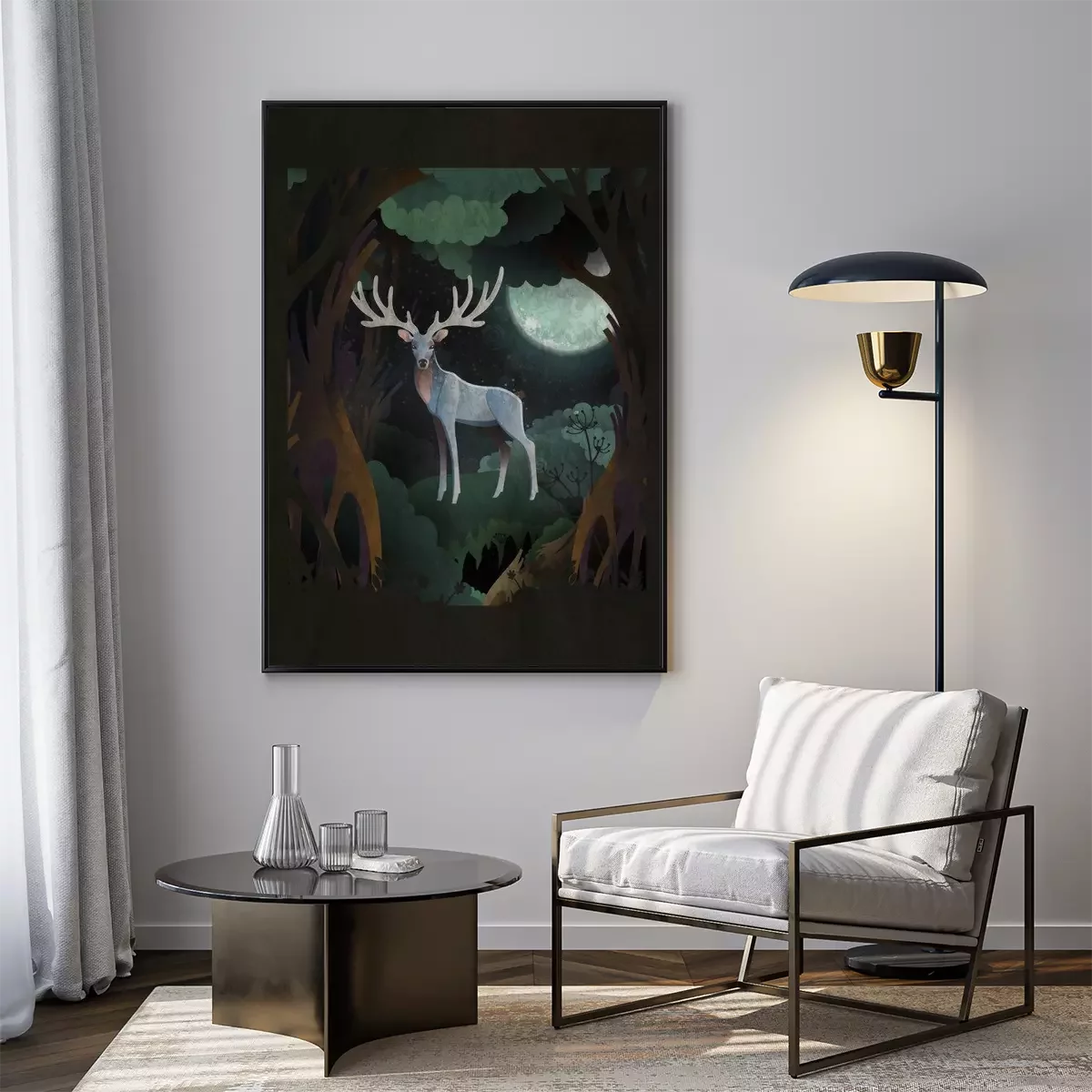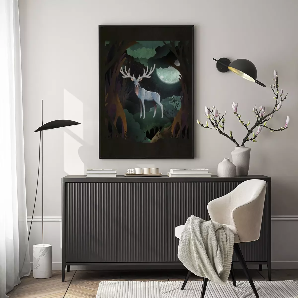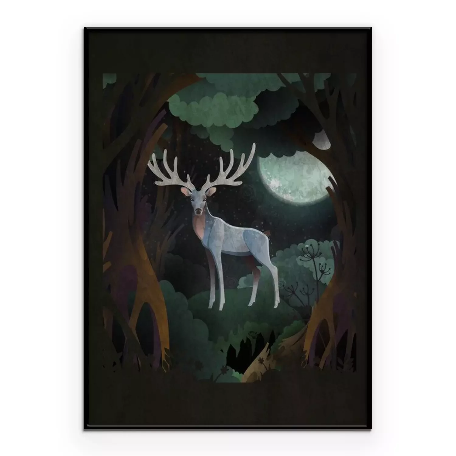 Poster : Une forêt magique et un fabuleux renne fantasy