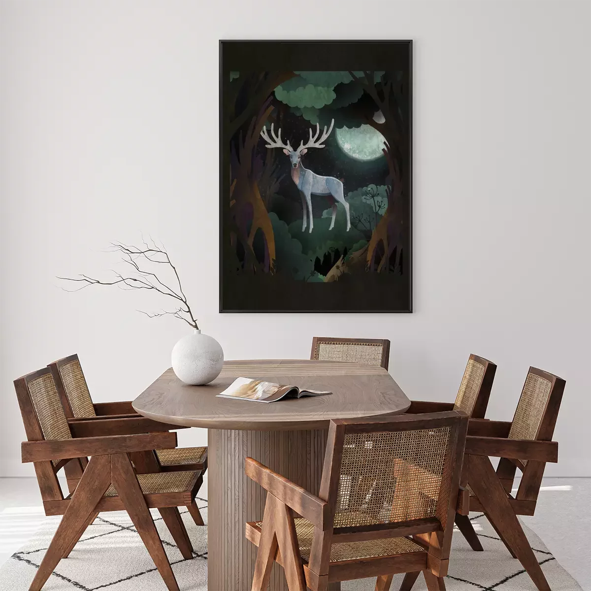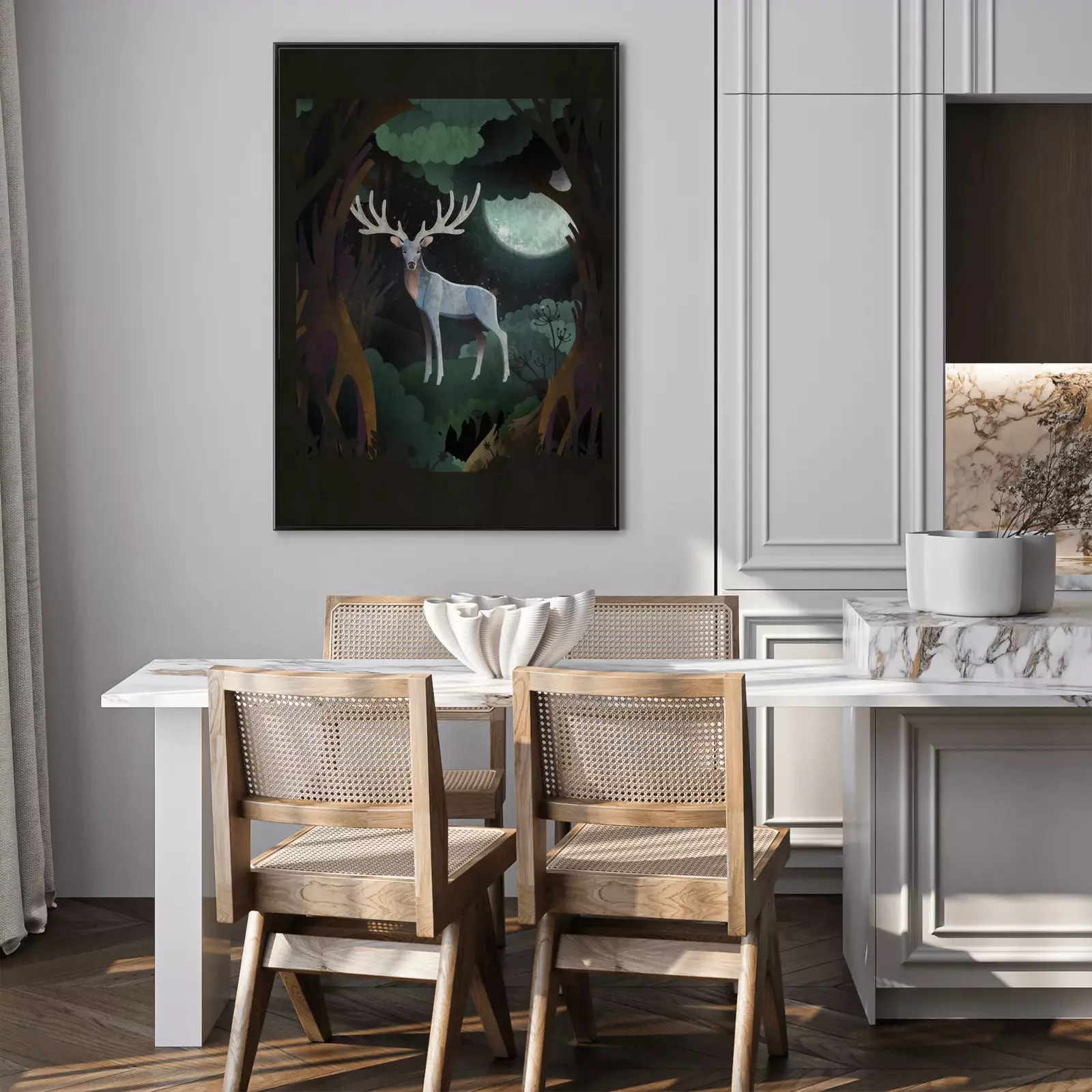 Poster  Une forêt magique et un fabuleux renne fantasy
