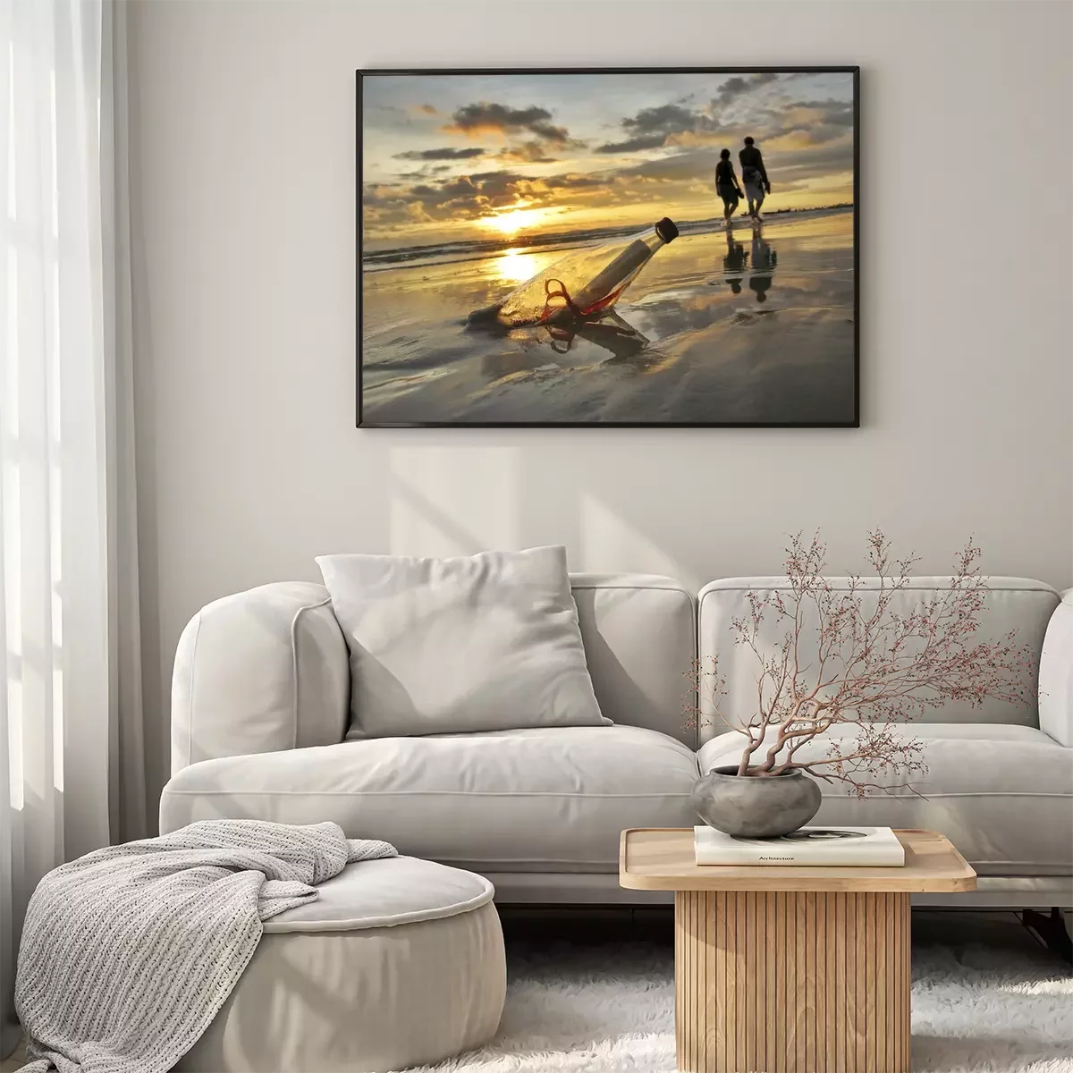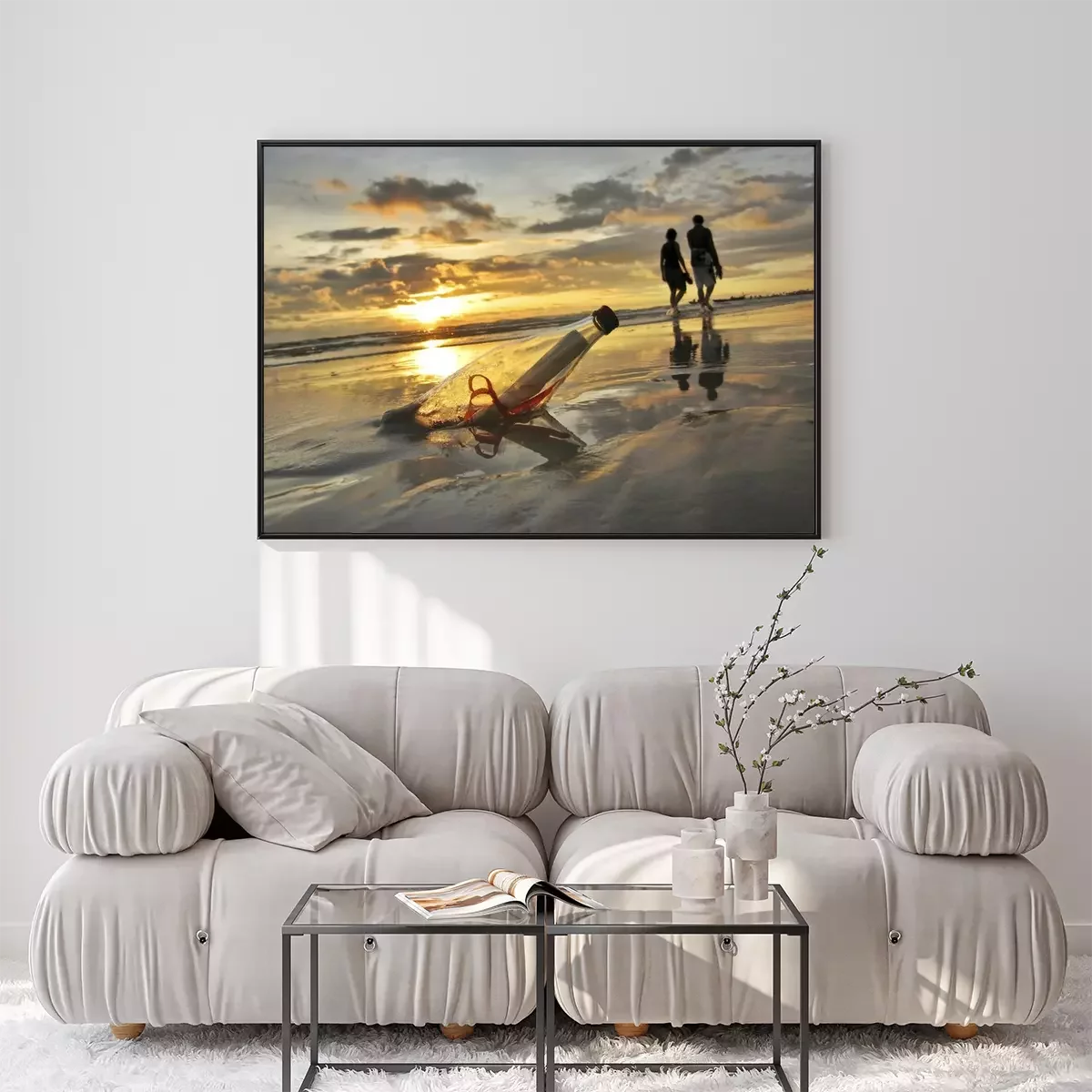 Poster  Une lettre dans une bouteille enterrée sur la plage