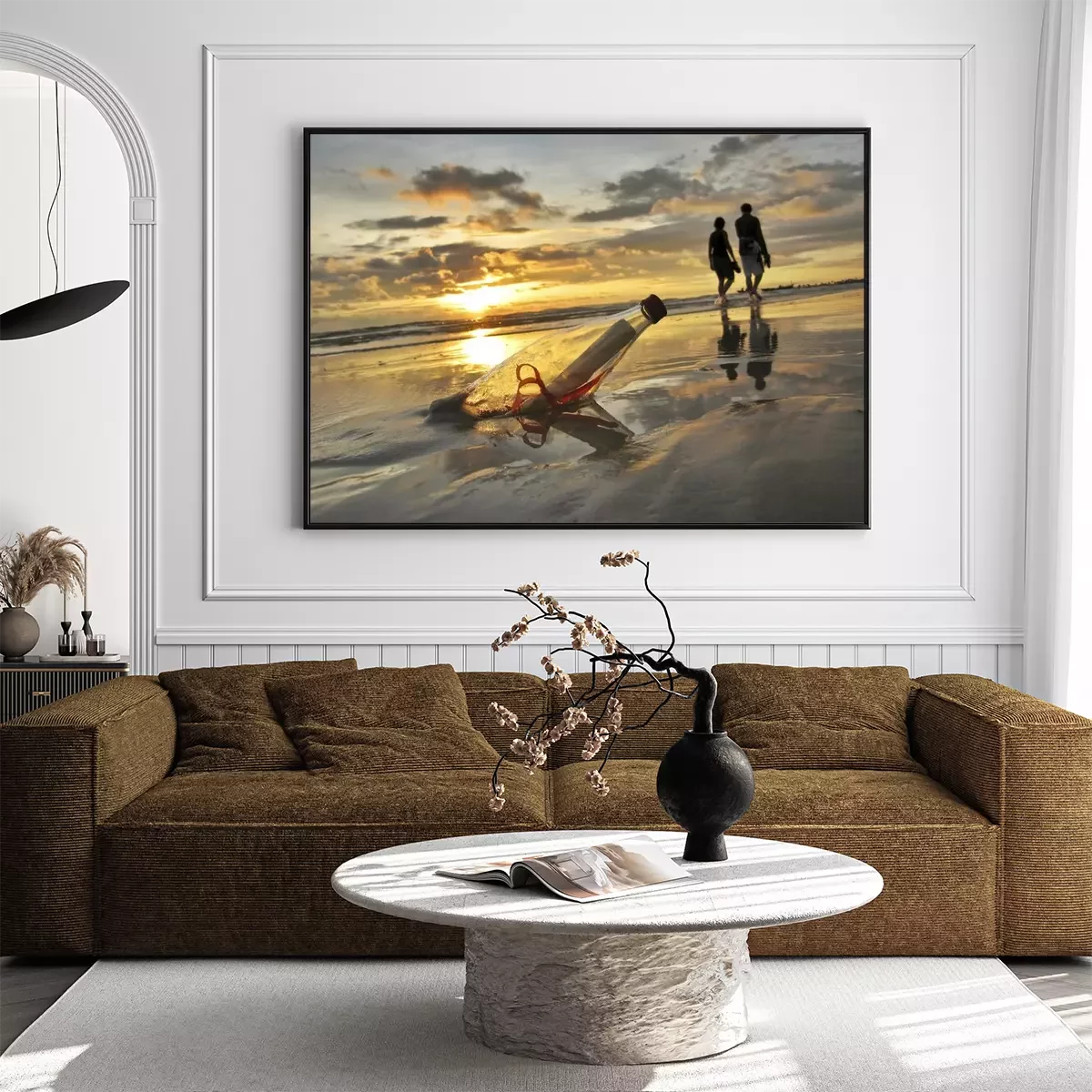 Poster : Une lettre dans une bouteille enterrée sur la plage