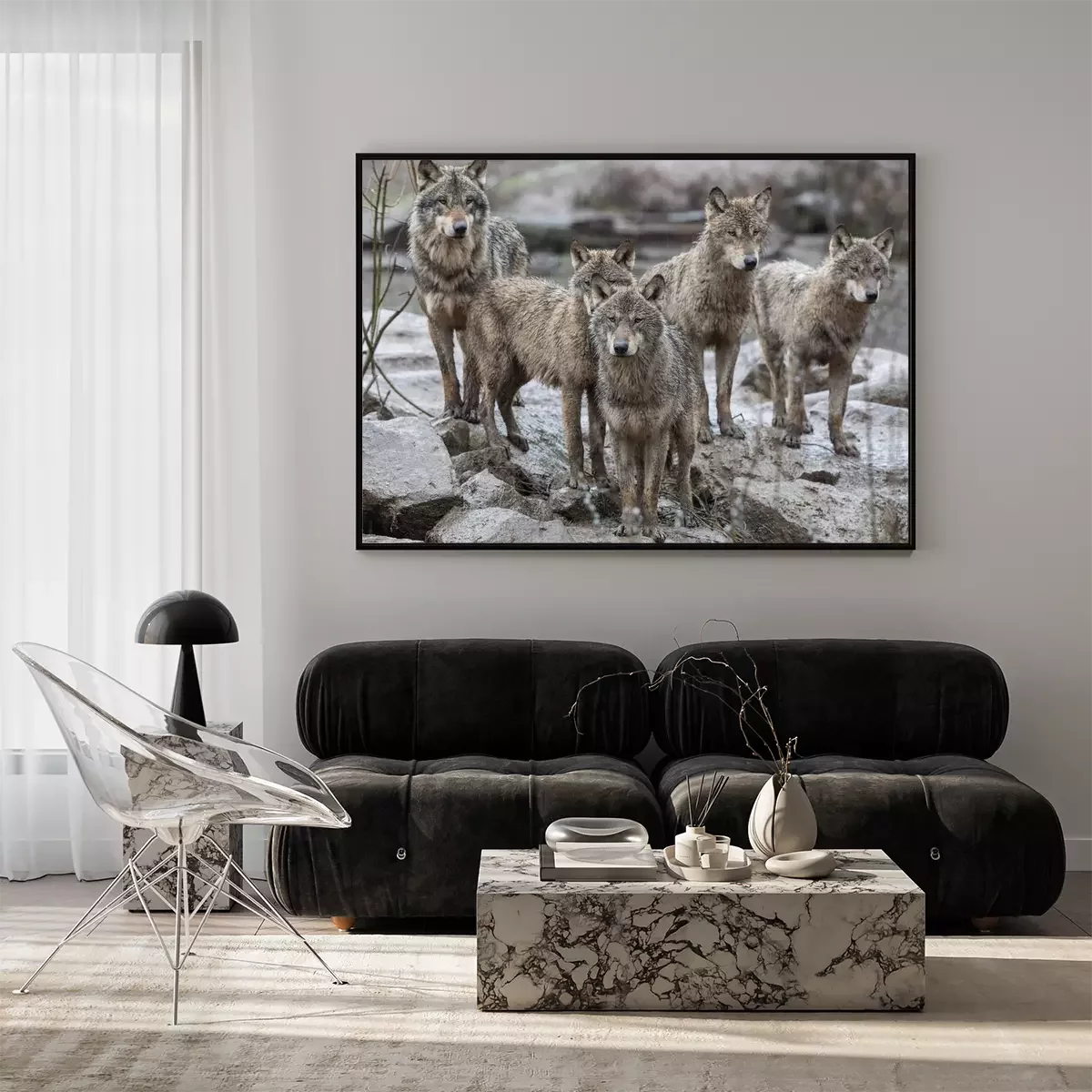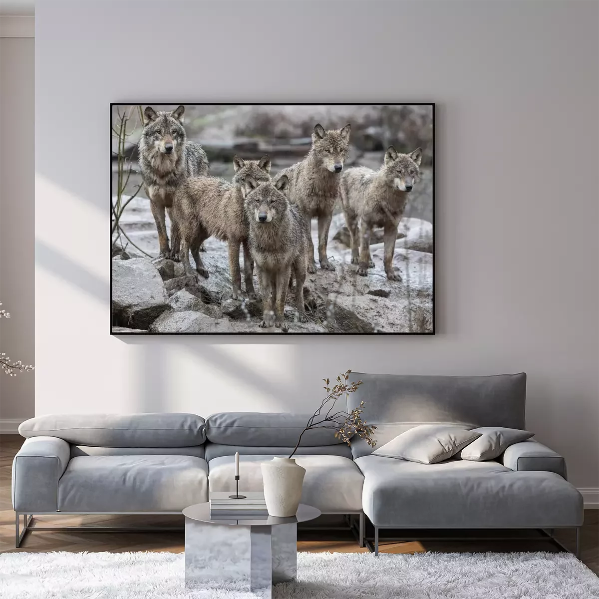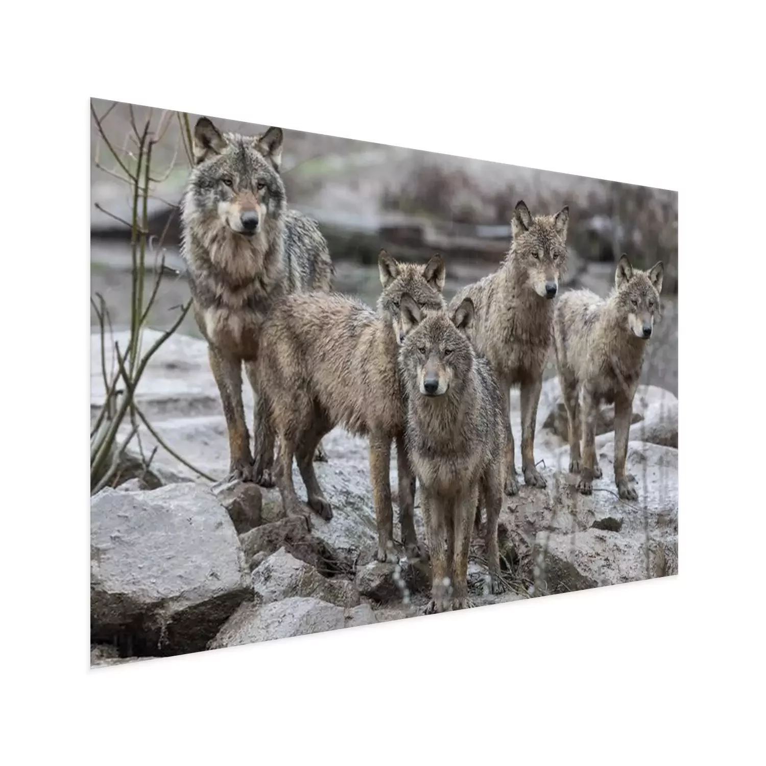 Poster  Une meute de loups sur les rochers