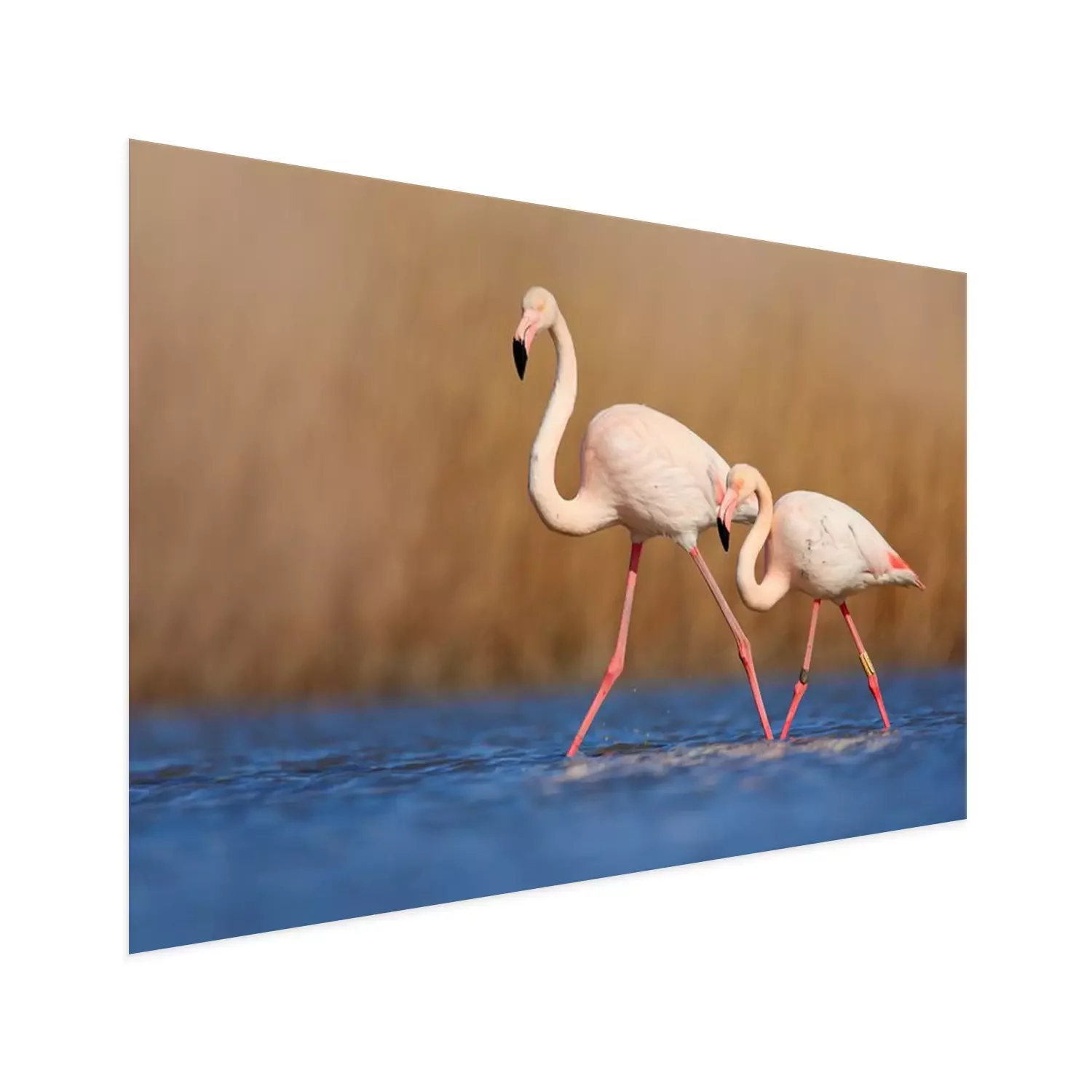 Poster : Une paire de flamants roses pataugeant dans l'eau