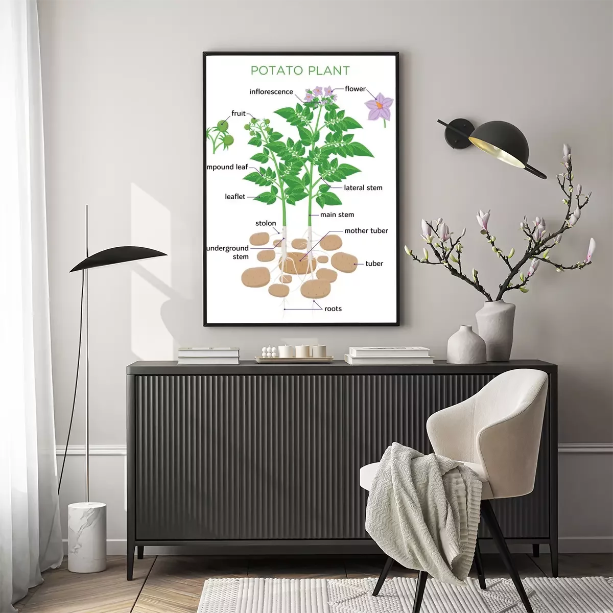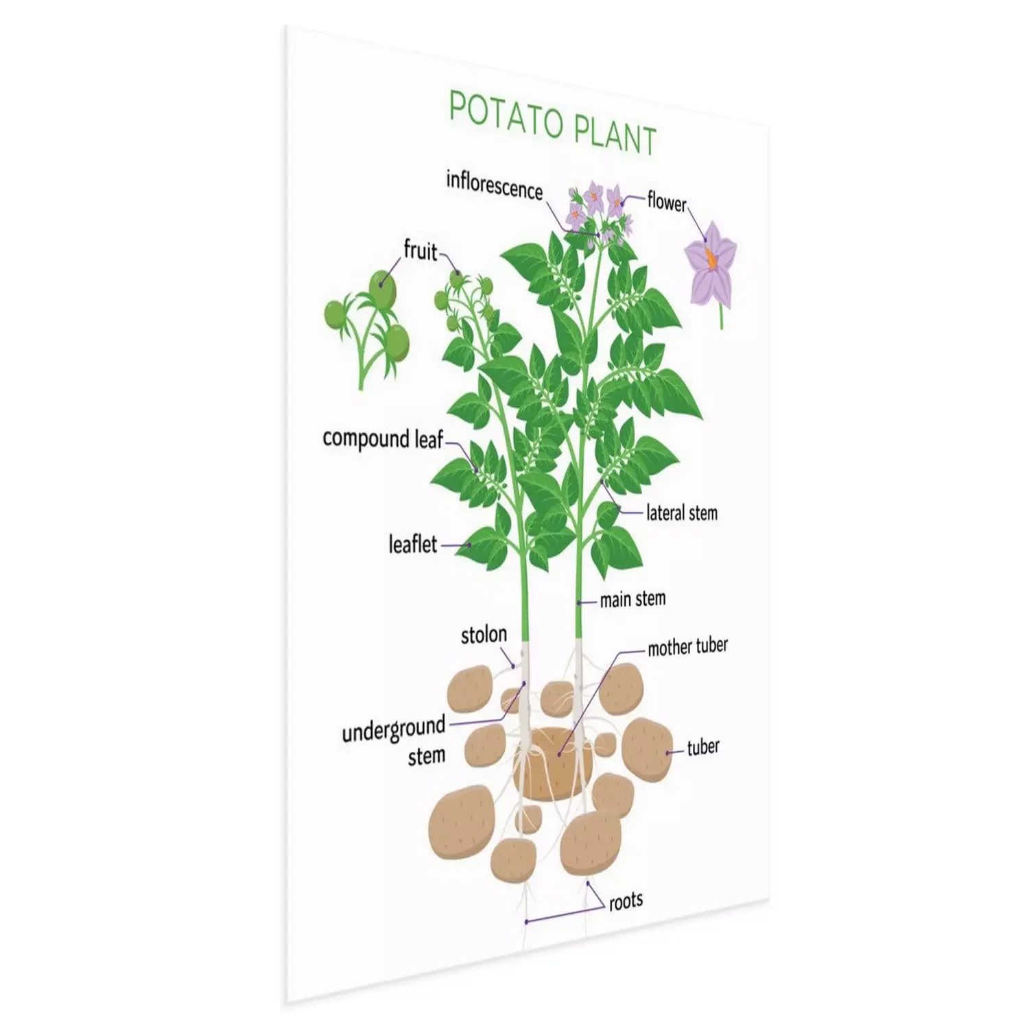 Poster : Une pomme de terre fleurie avec une description de la structure de la plante