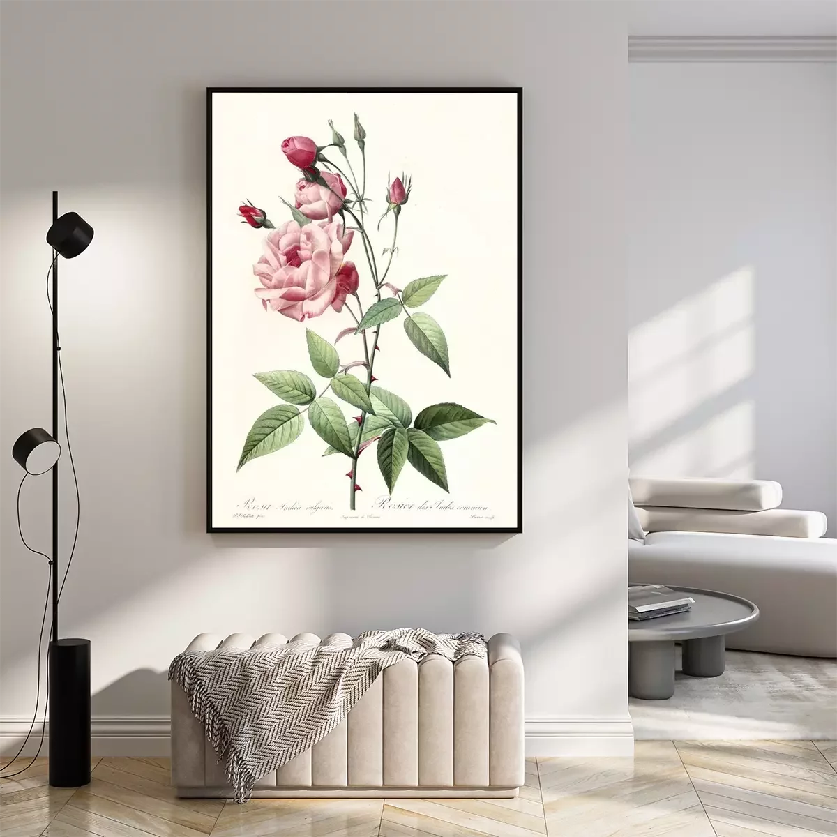 Poster : Une rose ouverte sur une branche épineuse