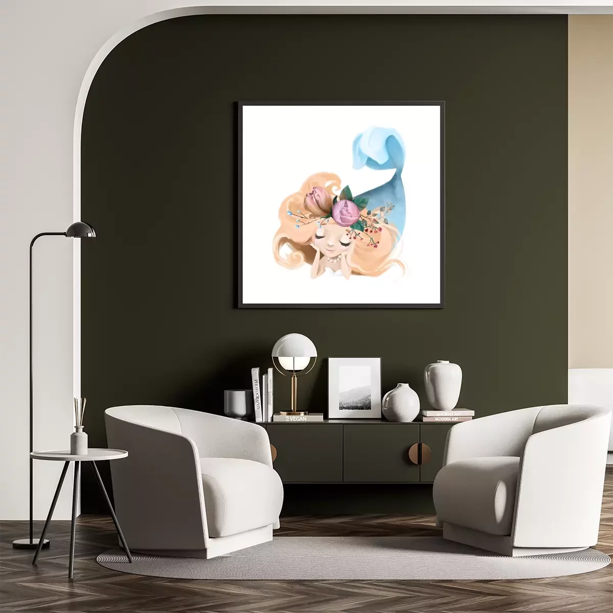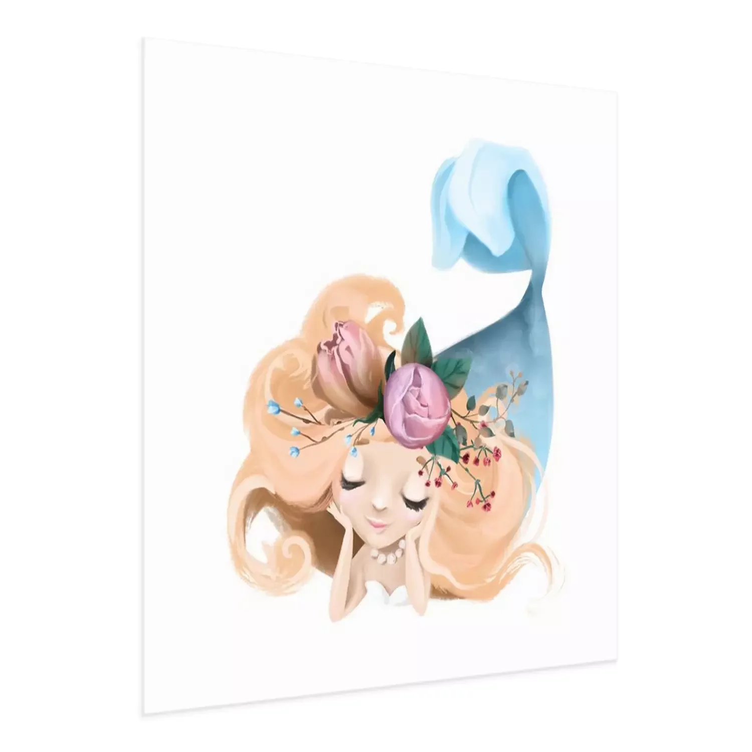 Poster  Une sirène avec une queue bleue et des fleurs dans les cheveux