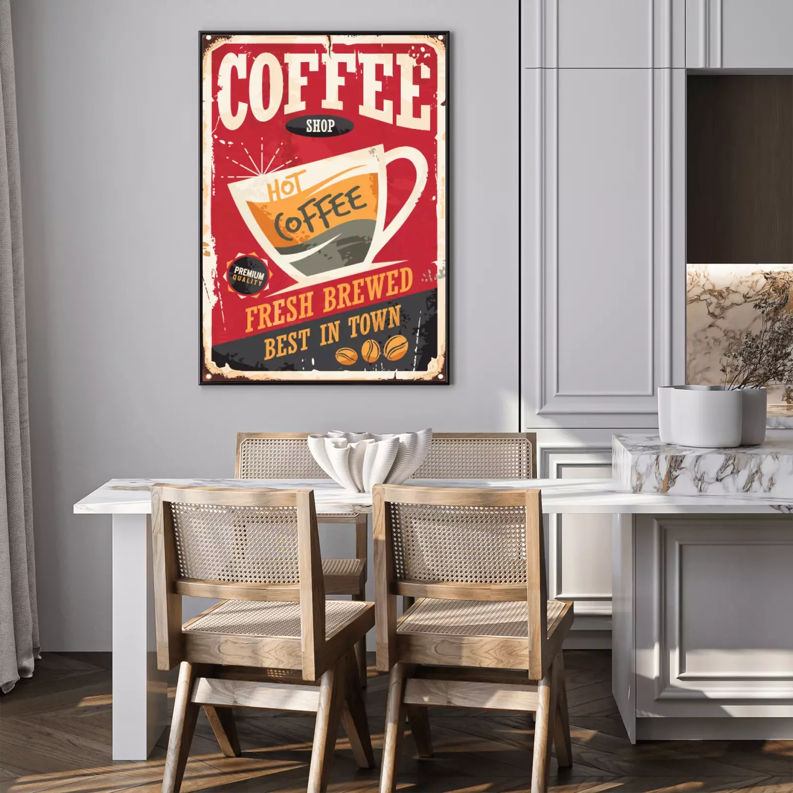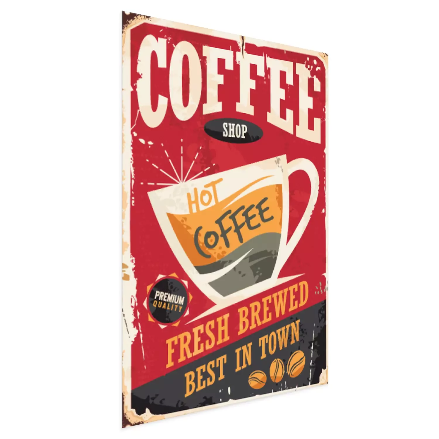 Poster : Une tasse de café sur un badge rétro