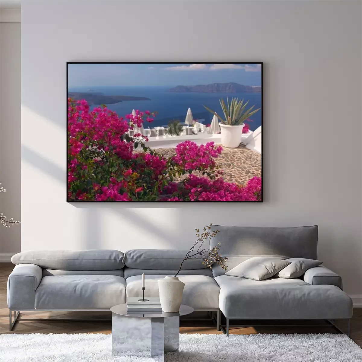 Poster  Une terrasse fleurie à Santorin