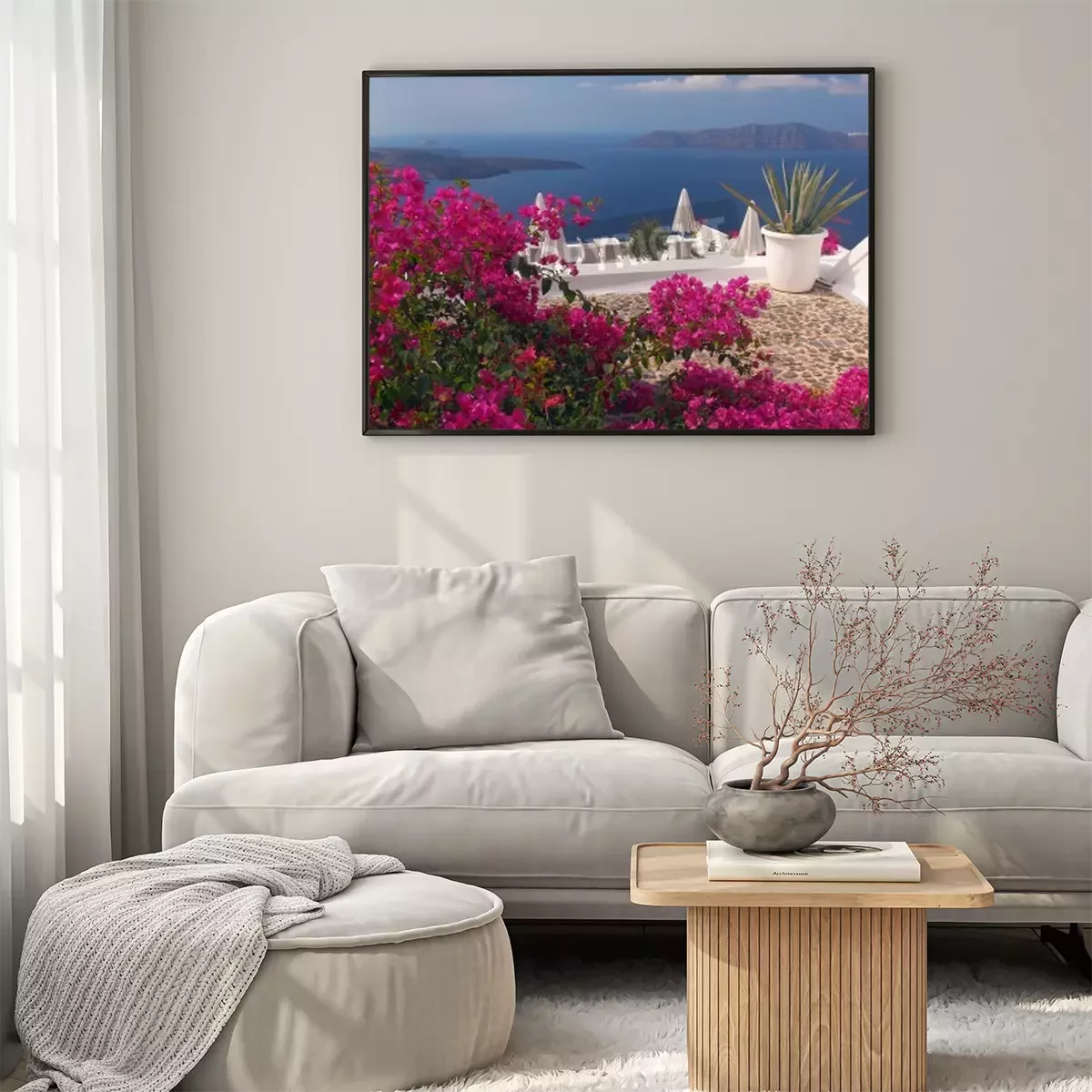 Poster : Une terrasse fleurie à Santorin