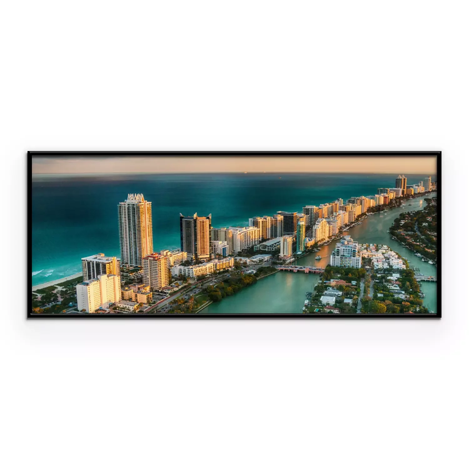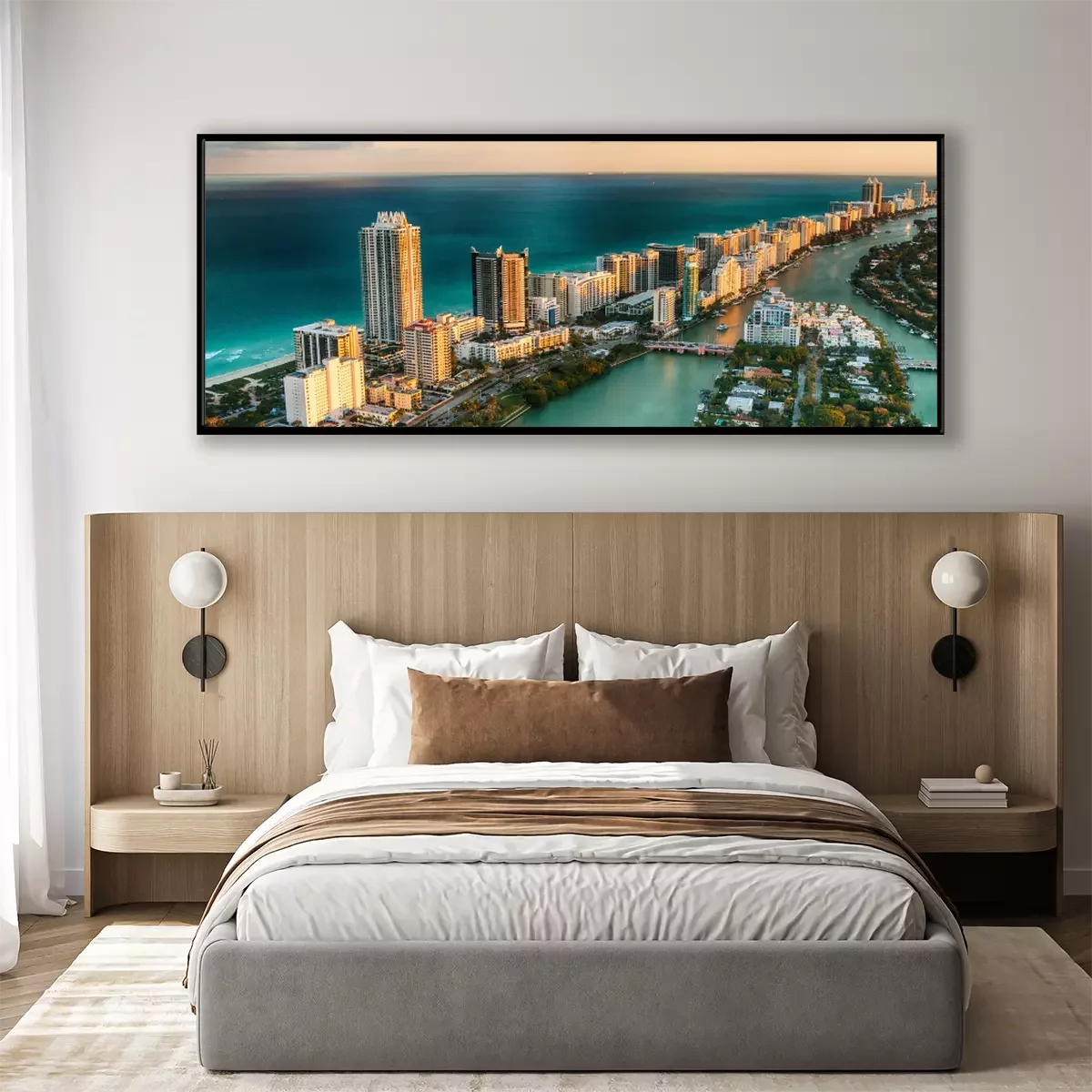 Poster : Une vue plongeante sur des gratte-ciels au bord de la mer