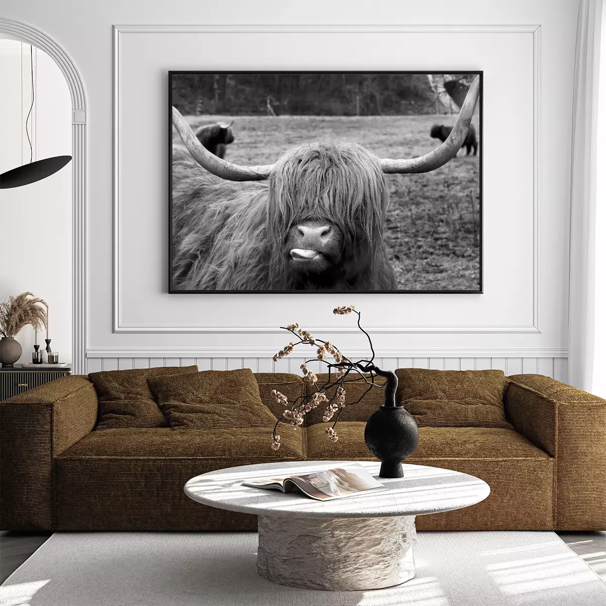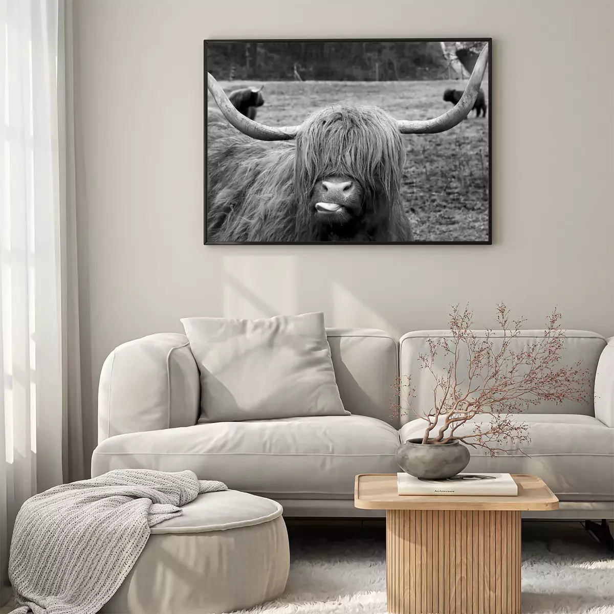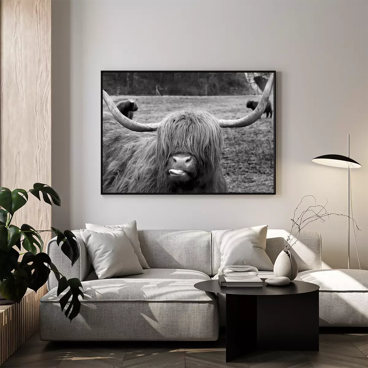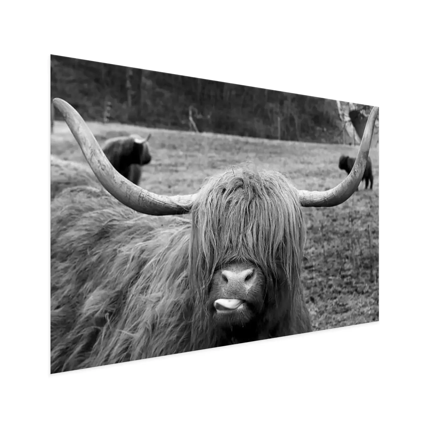 Poster  Vache aux cheveux longs avec la langue qui sort