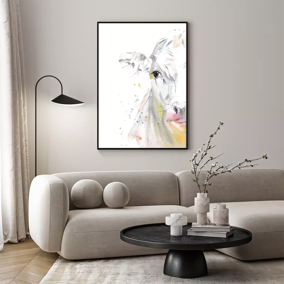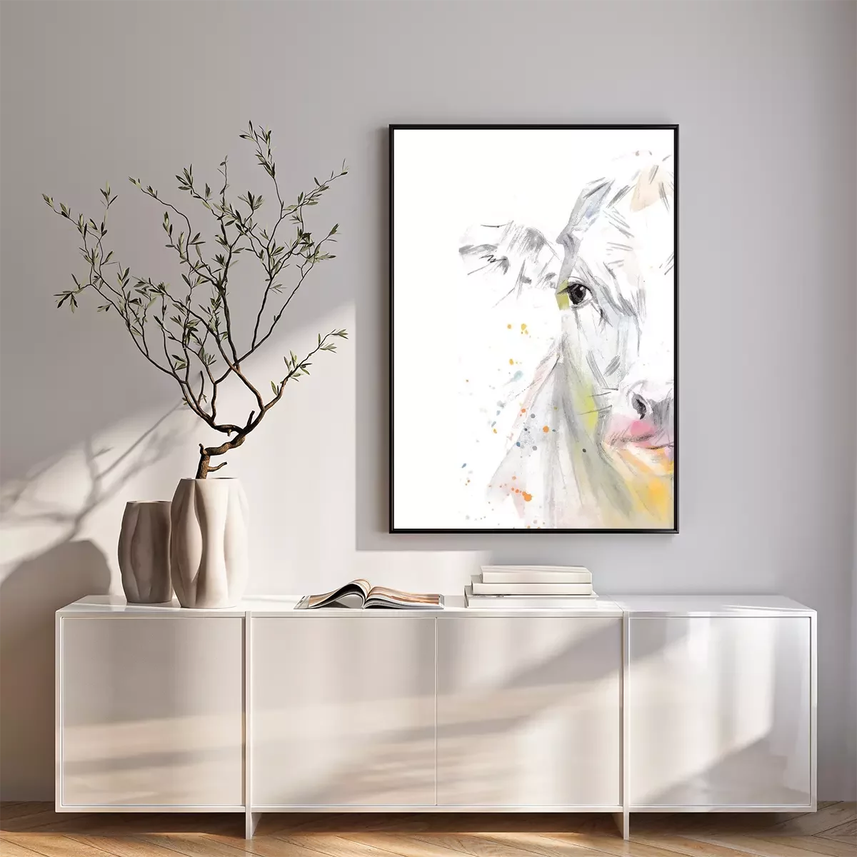Poster : Vache version aquarelle sur fond blanc