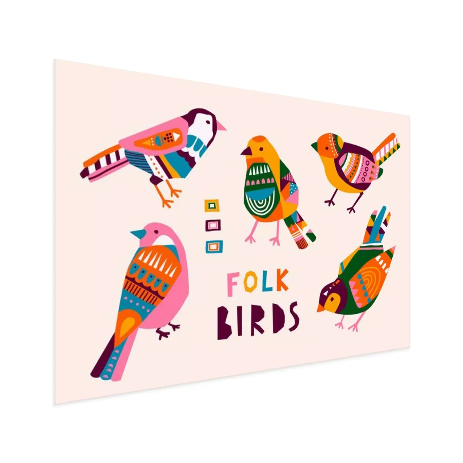 Poster : Various birds with different folk ornaments. Paper cut scandinavian style. Flat design. Hand drawn colored vector set. Modern trendy illustration. All elements are isolated