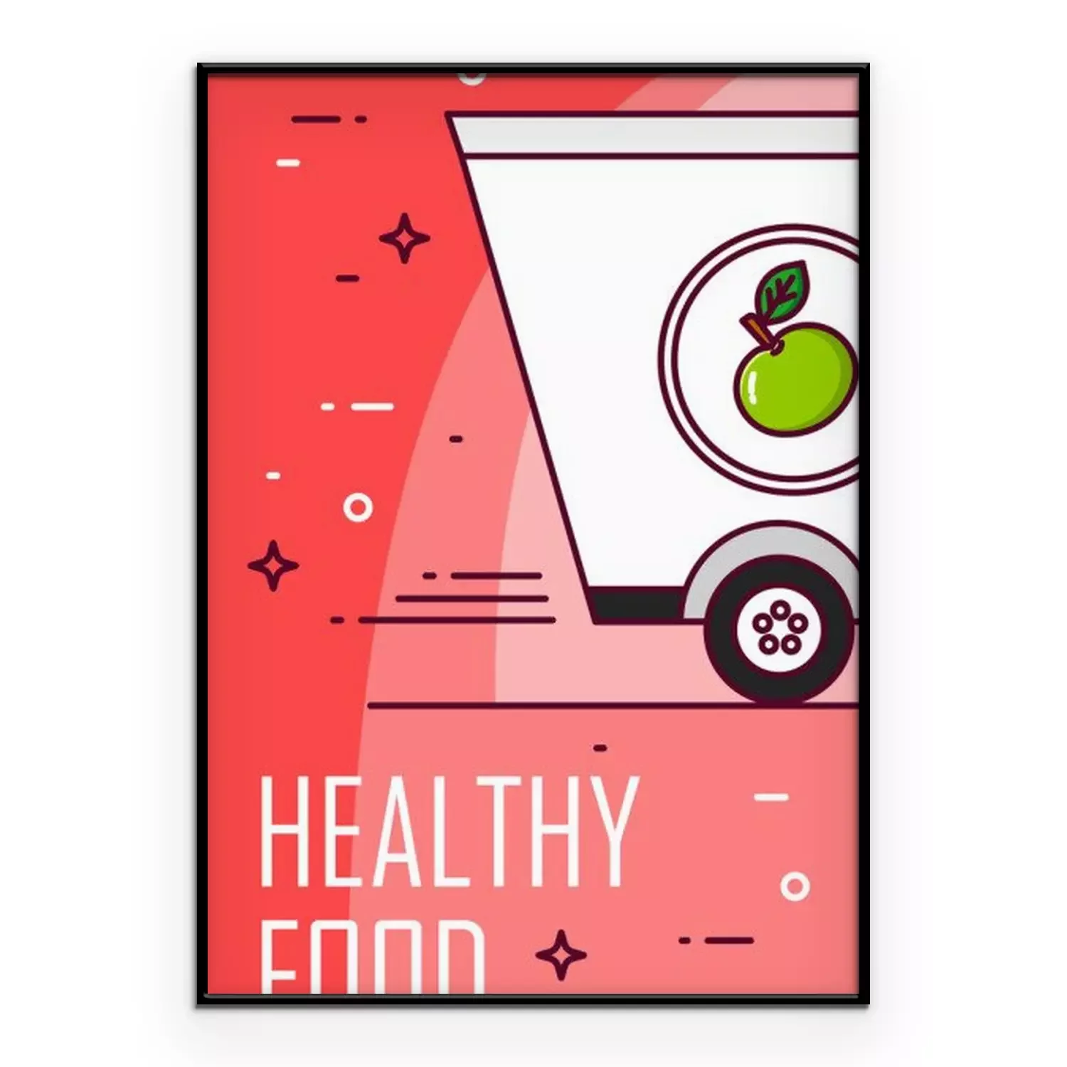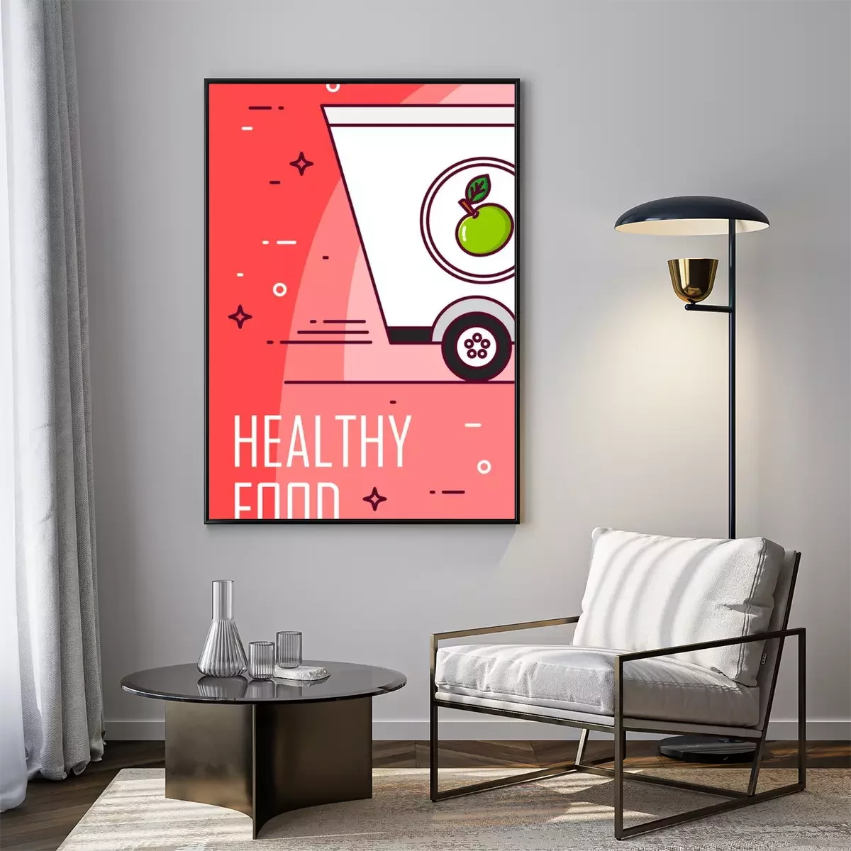 Poster : Vector banner with healthy food for delivery. Thin line flat design card.