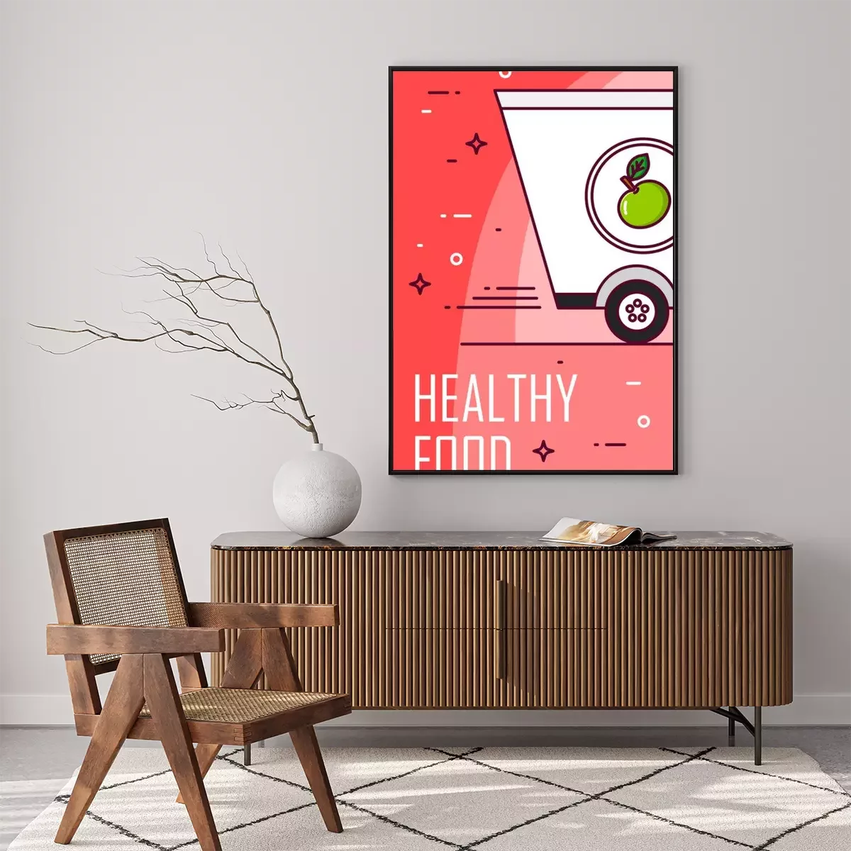 Poster  Vector banner with healthy food for delivery. Thin line flat design card.