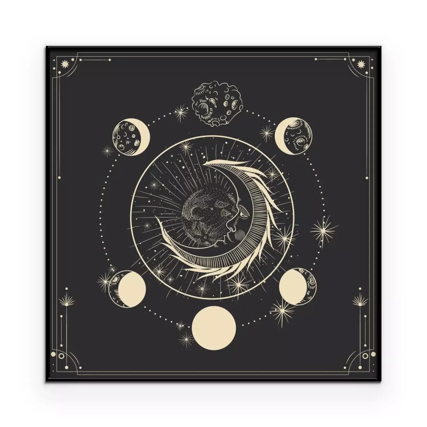 Poster : Vector illustration set of moon phases. Different stages of moonlight activity in vintage engraving style. Zodiac Signs