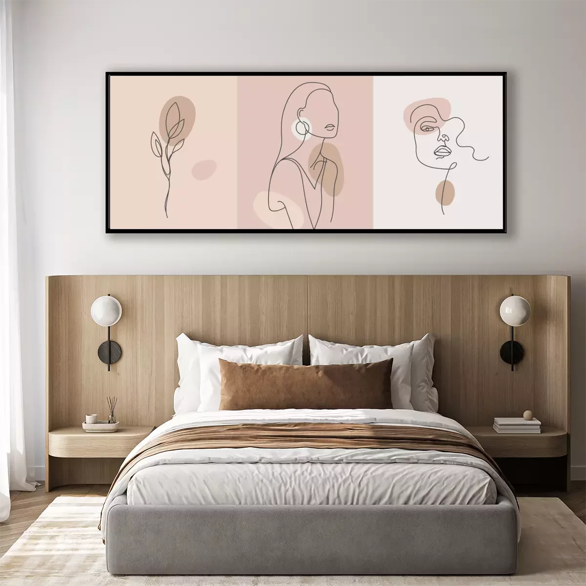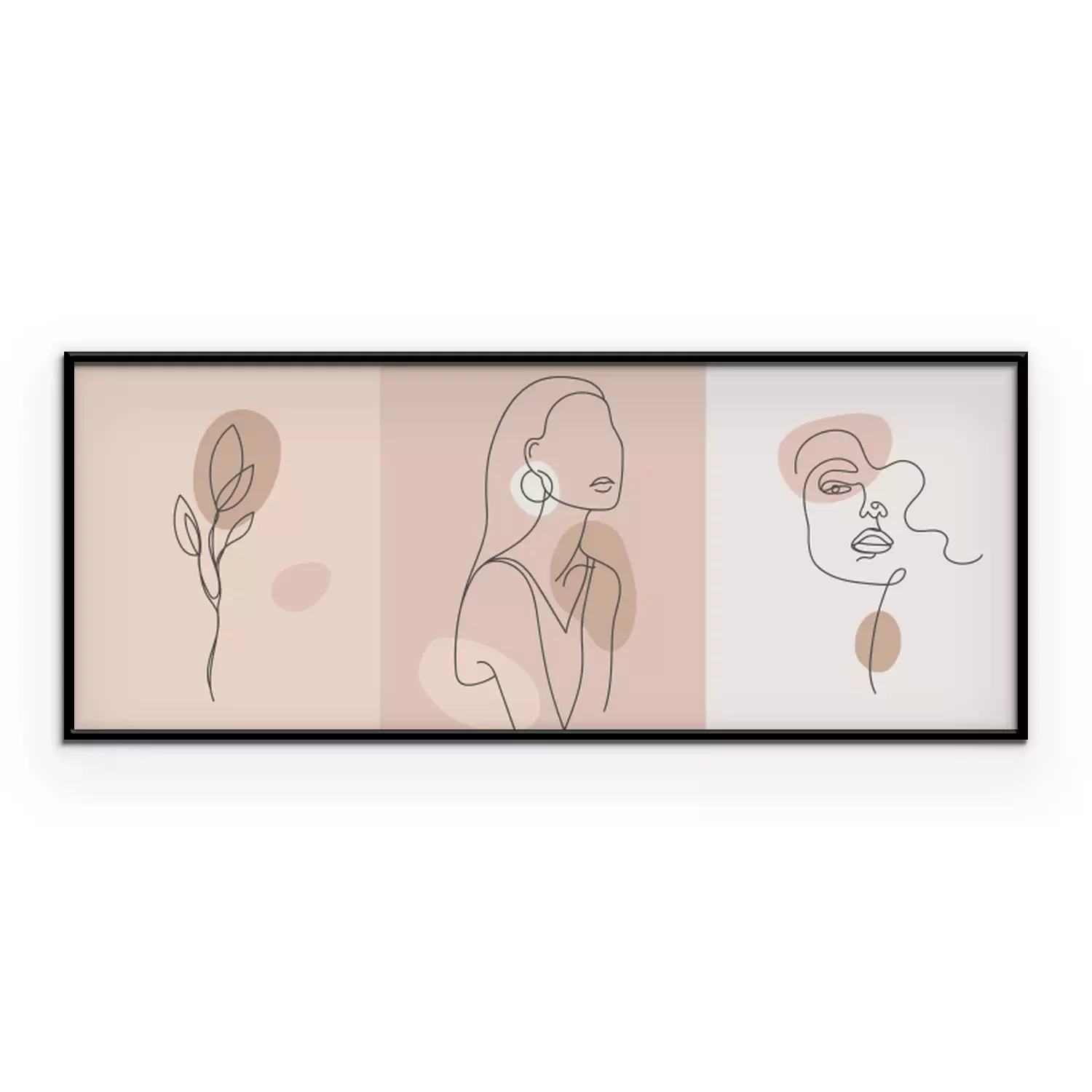 Poster : Vector minimalist style portrait. Line flower, woman portrait. Hand drawn abstract feminine print. Use for social net stories, beauty logos, poster illustration, card, t-shirt print