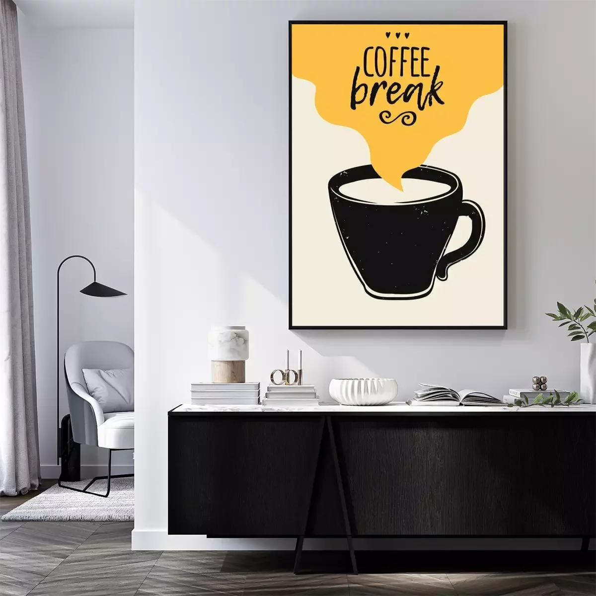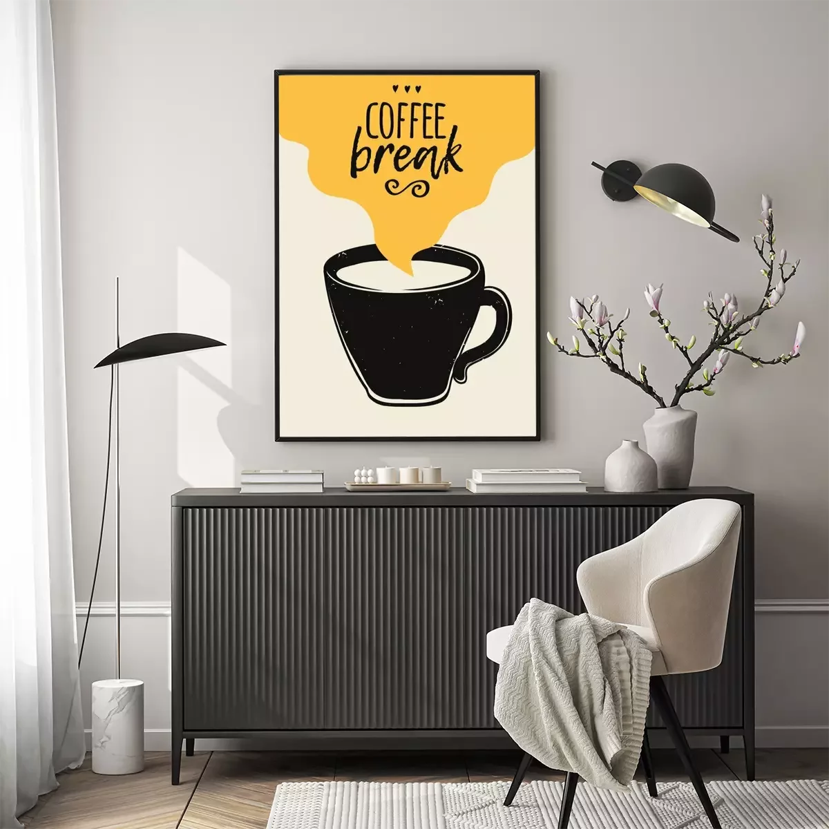 Poster  Vector trendy illustration with coffee cup and Coffee Break lettering. Modern poster.