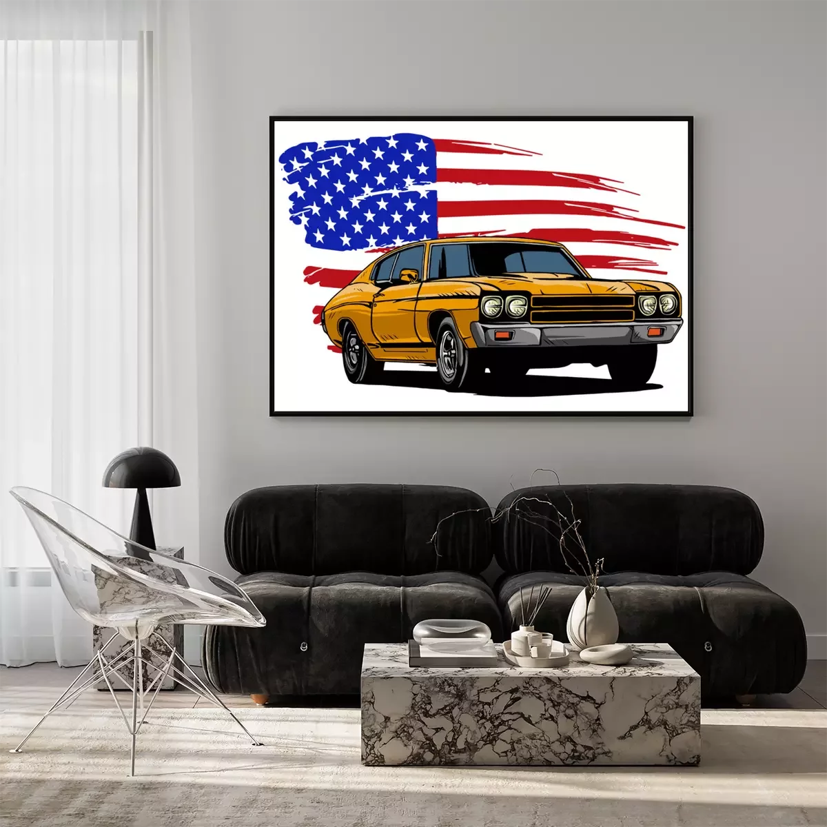 Illustration avec une voiture américaine