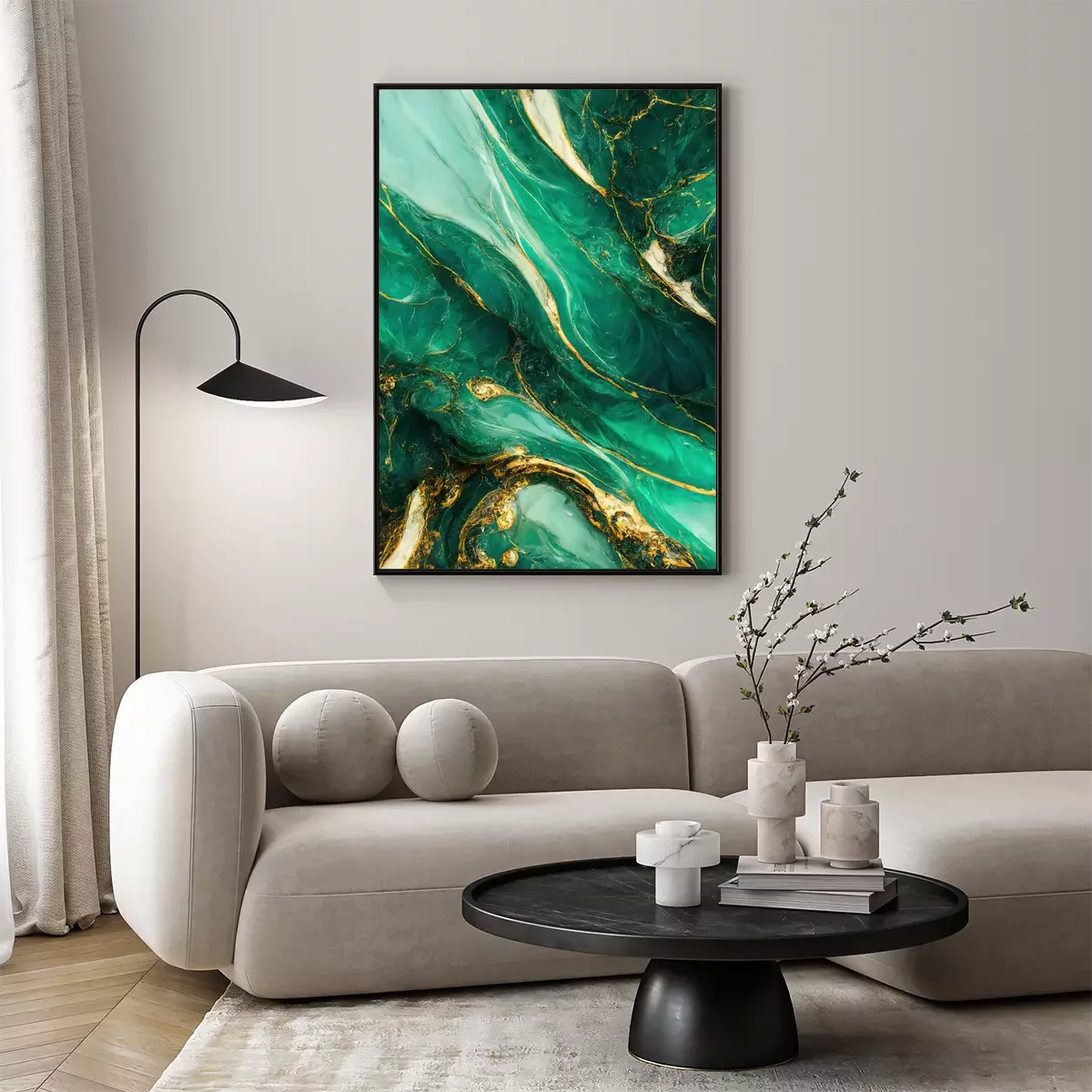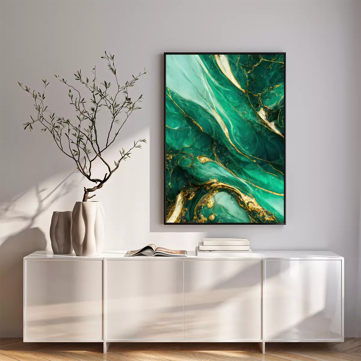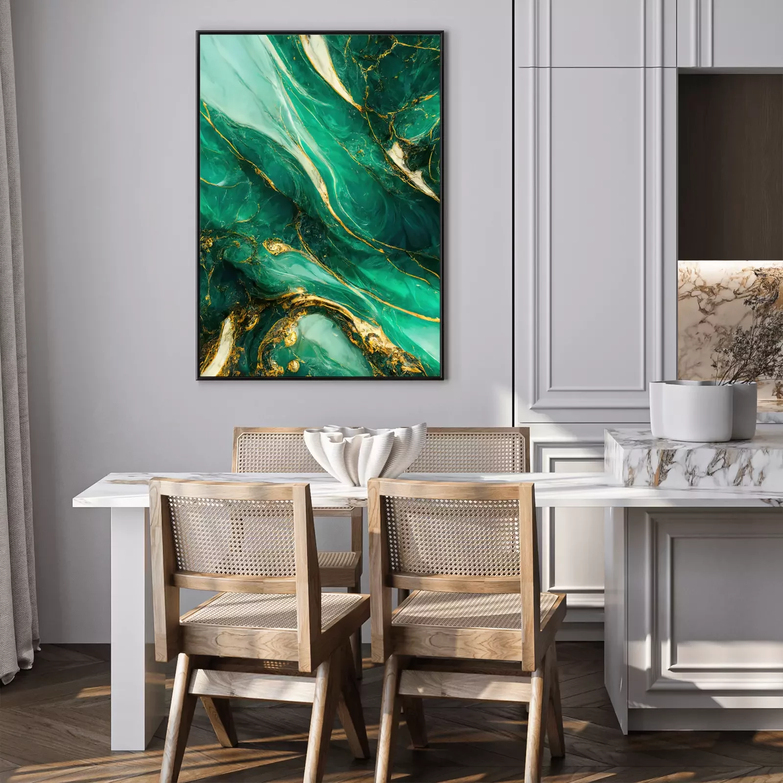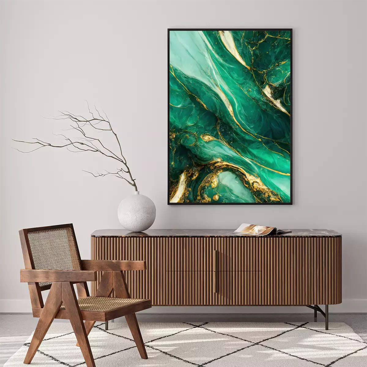 Poster : Vert noble sur une composition dynamique de peintures