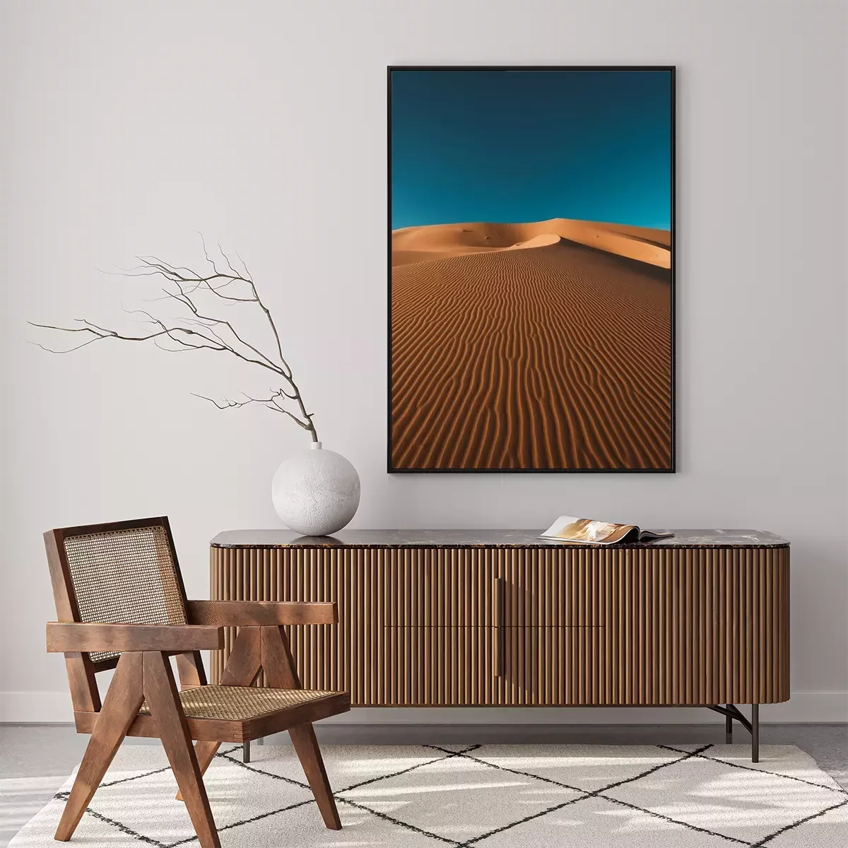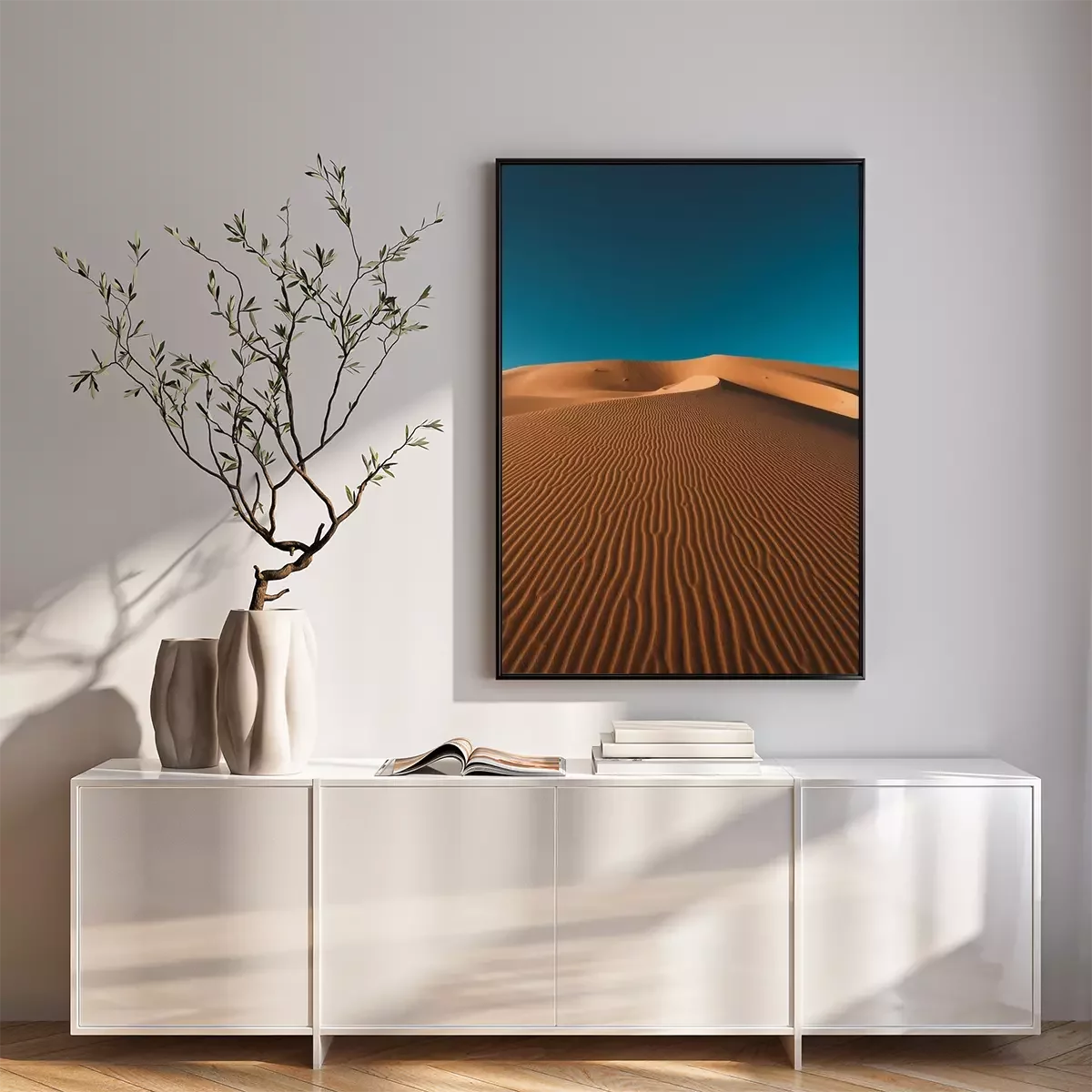 Poster  Vertical shot of a peaceful desert under the clear blue sky captured in Morocco