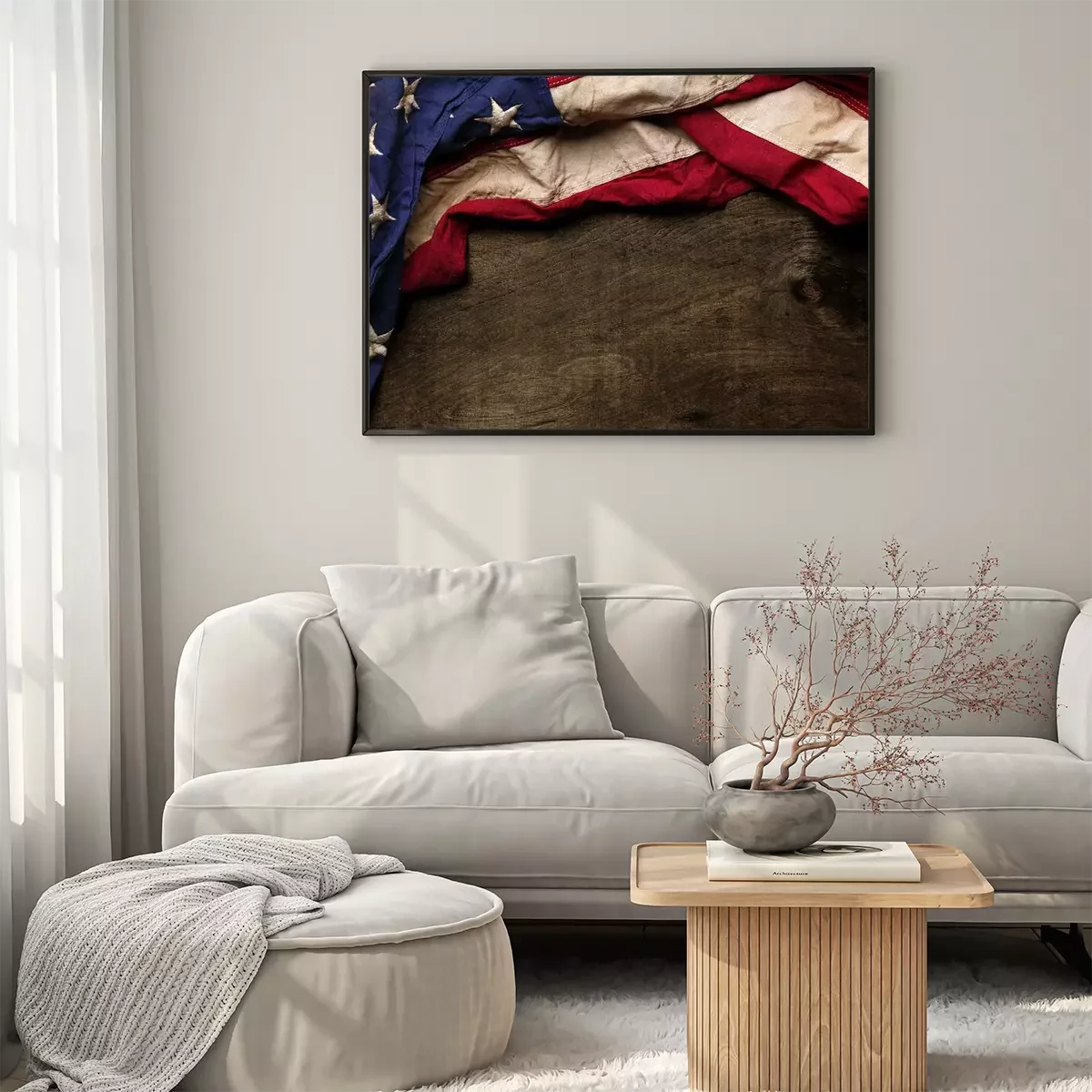 Poster  Vieux drapeau américain arrière-plan pour le Memorial Day ou le 4 Juillet