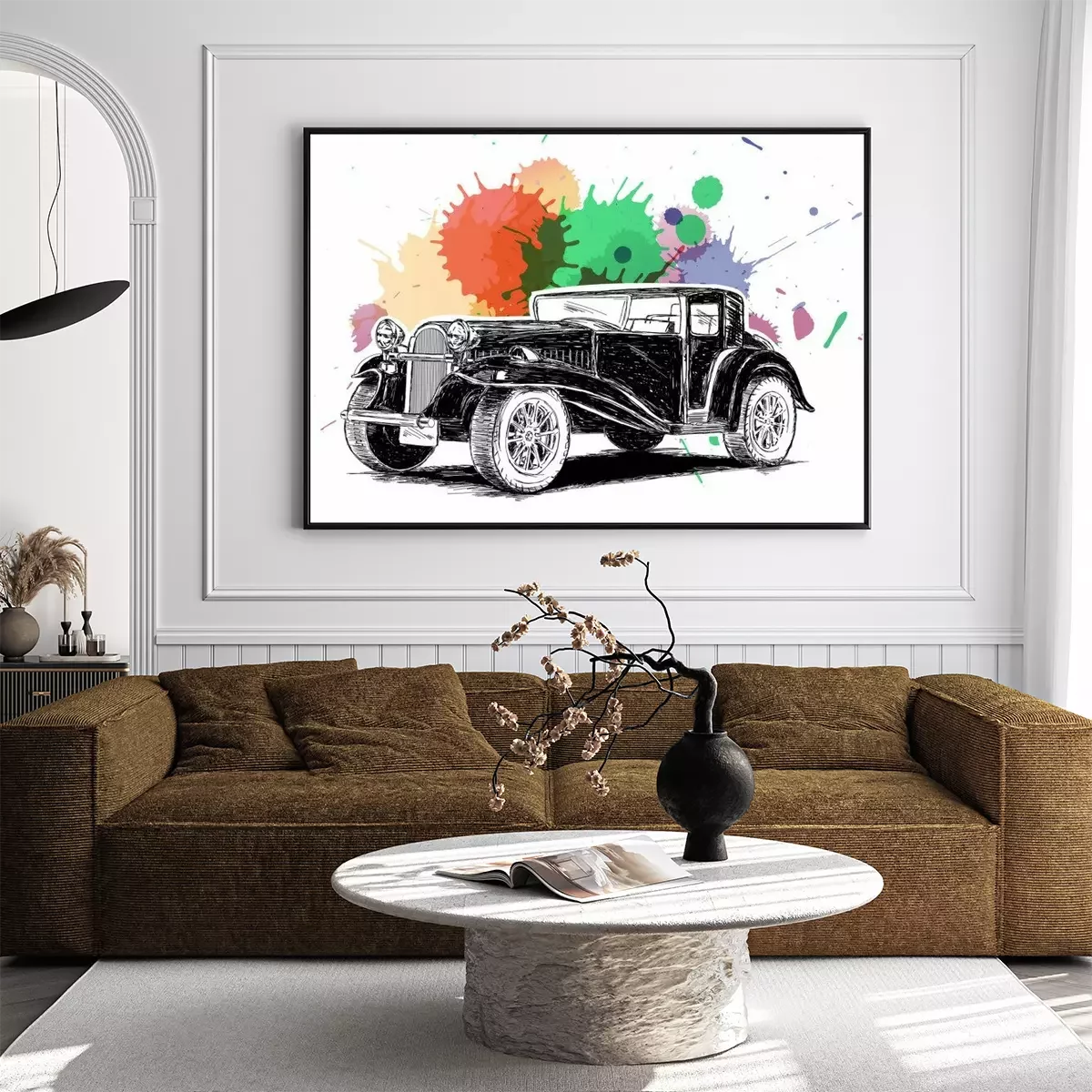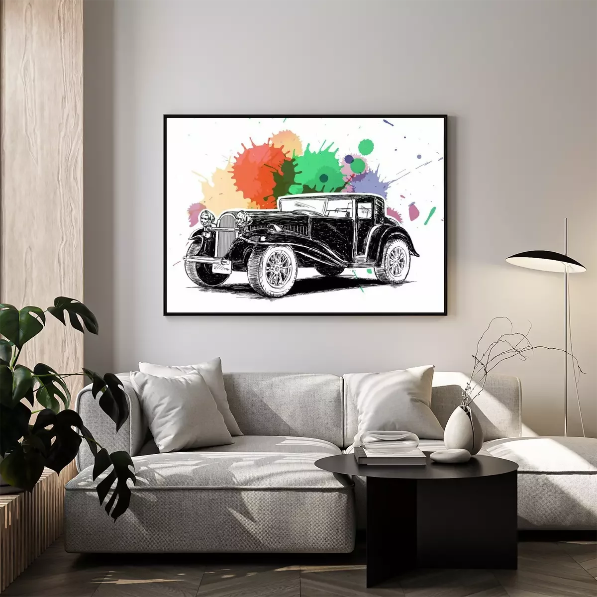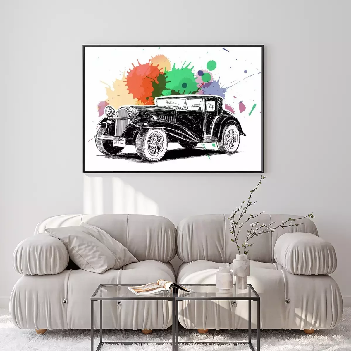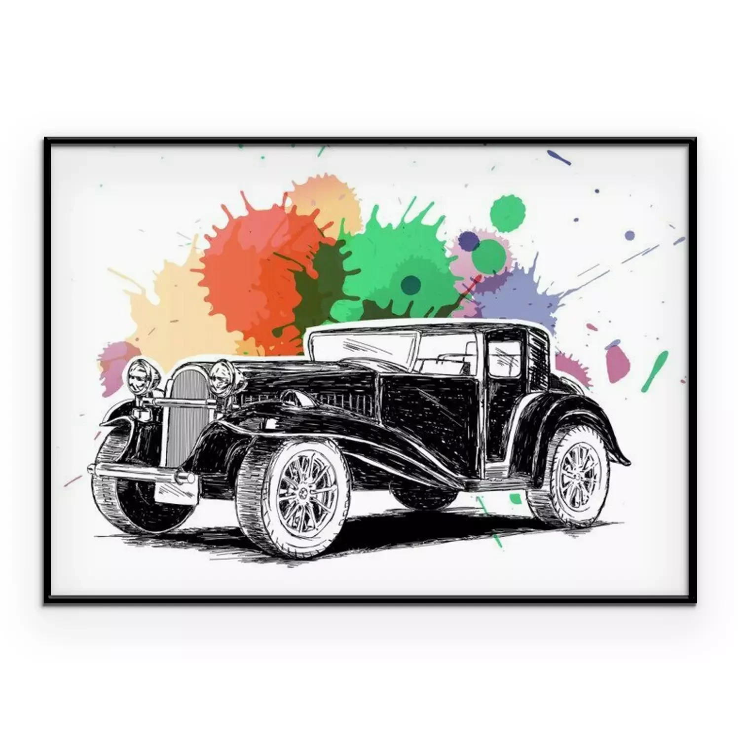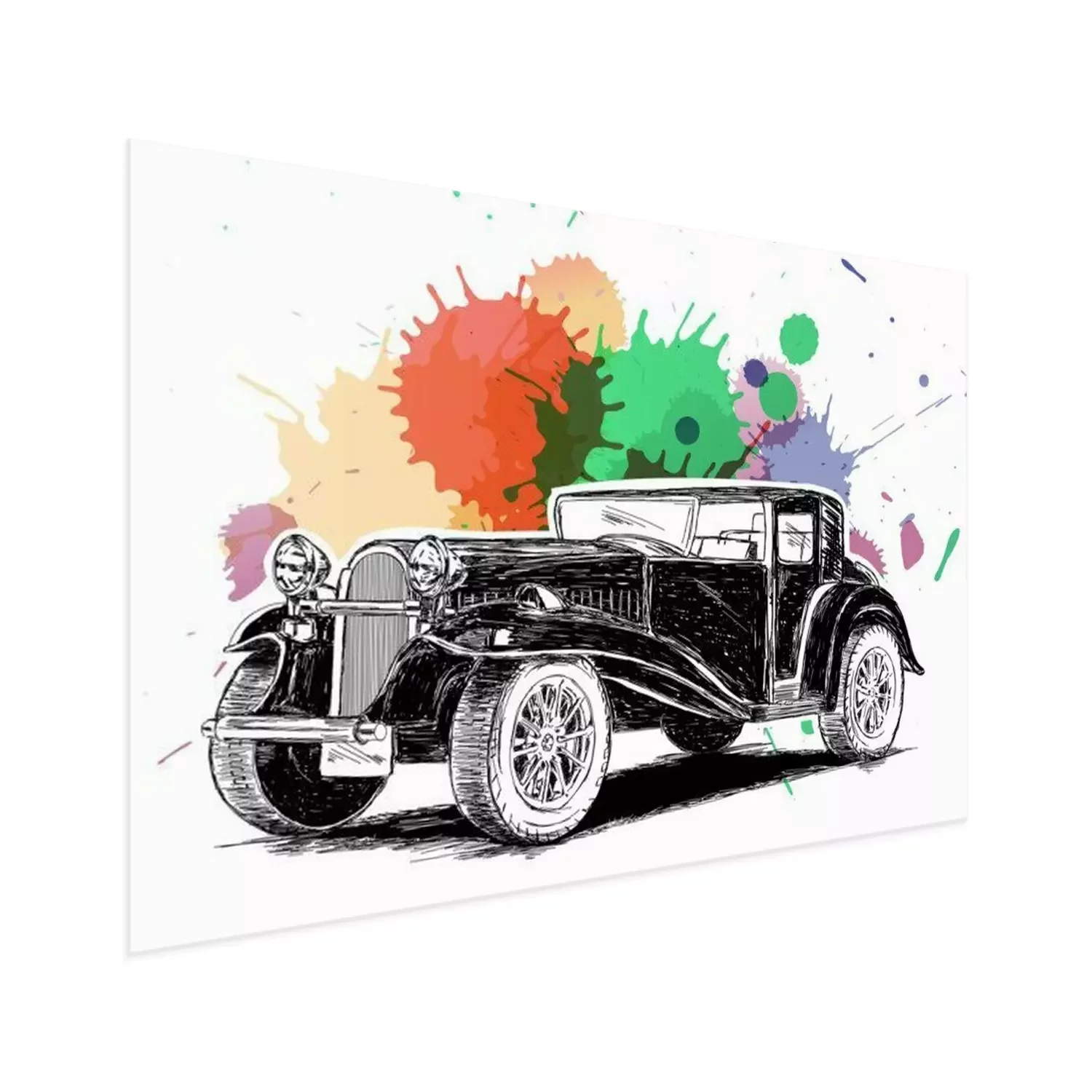 Poster  Vieux, retro, classique, vieux, voiture, à, coloré, encre ...
