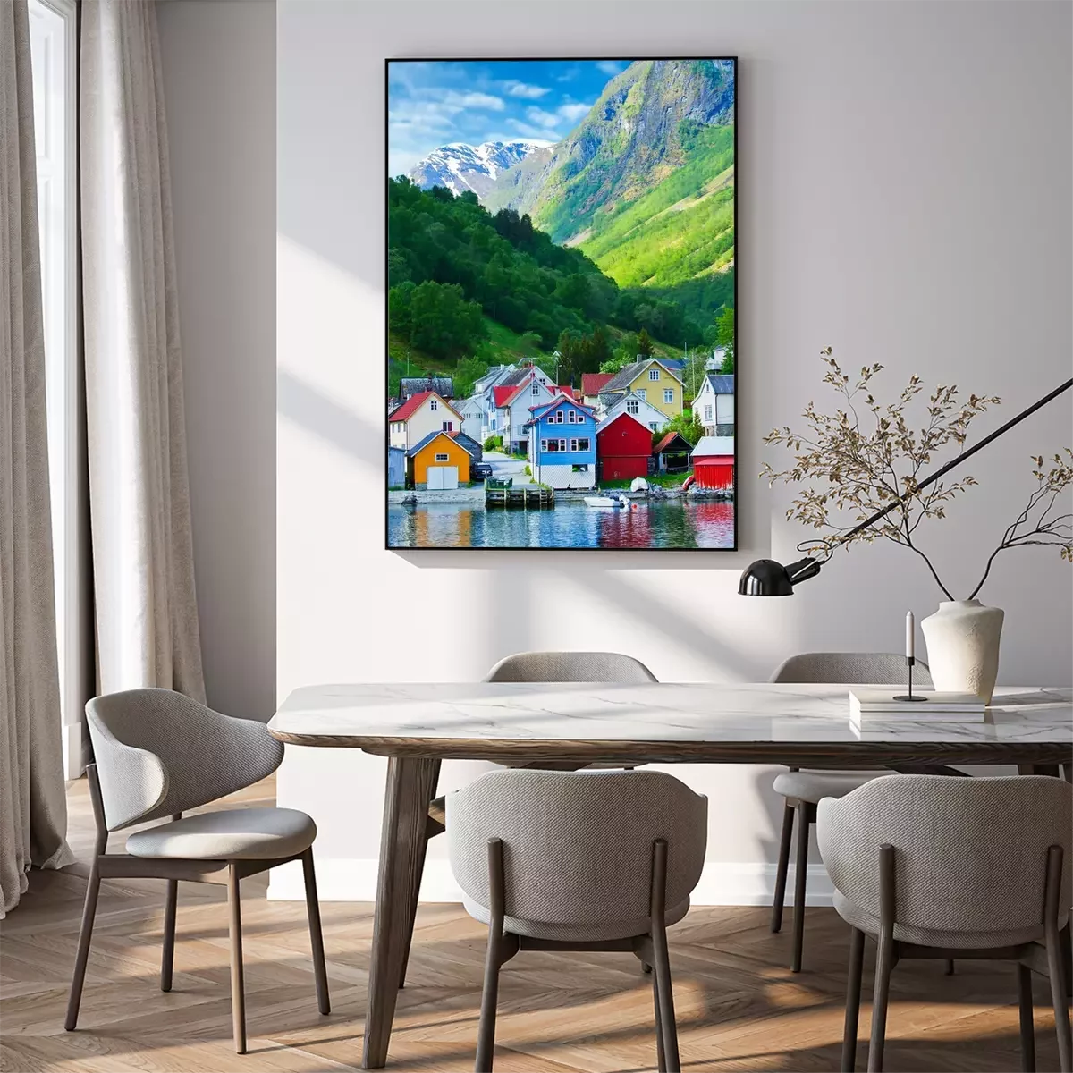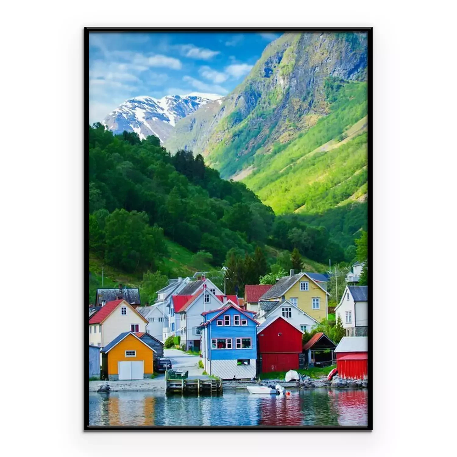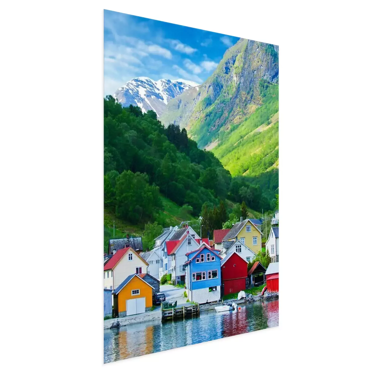Poster  Village et vue mer sur les montagnes dans le fjord de Geiranger, Norvège