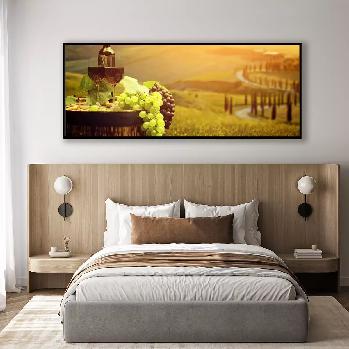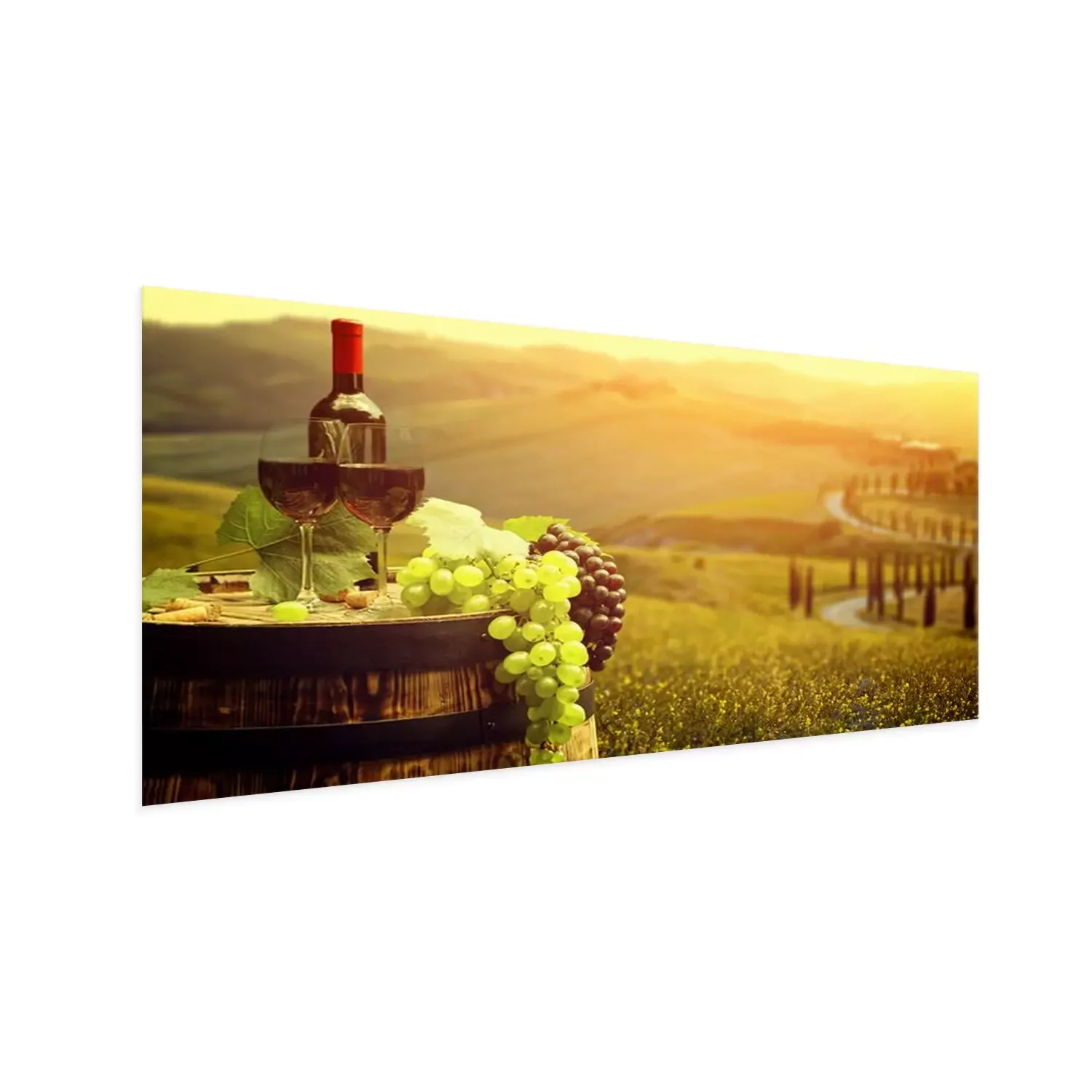 Poster  Vin rouge avec le baril sur vigne en vert Toscane, Italie