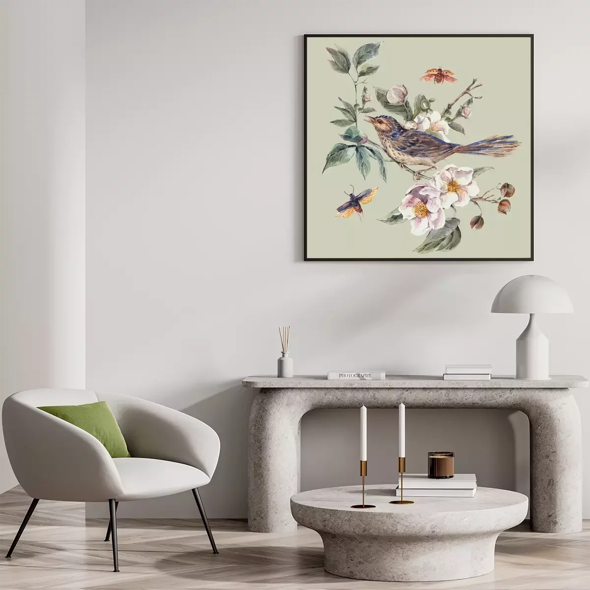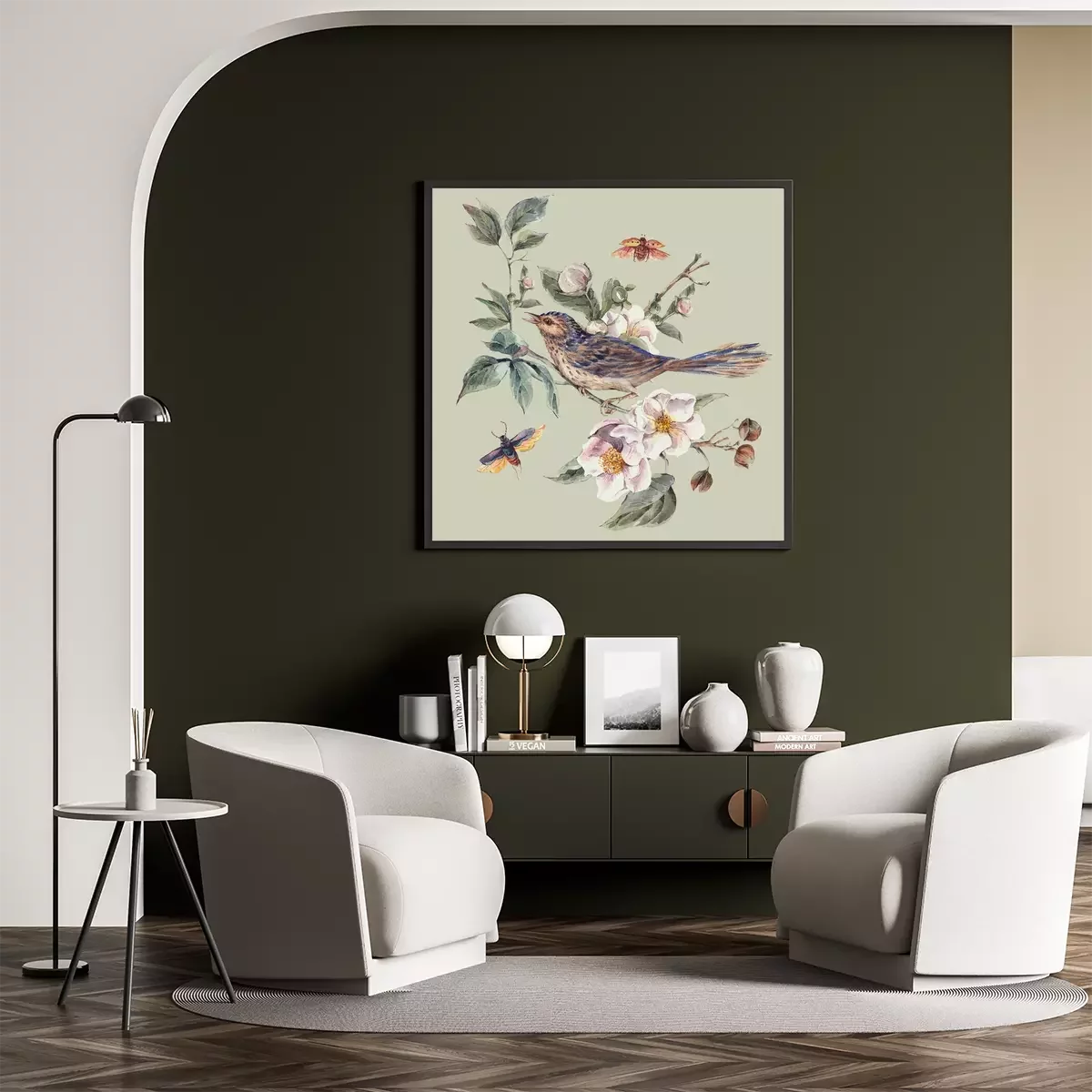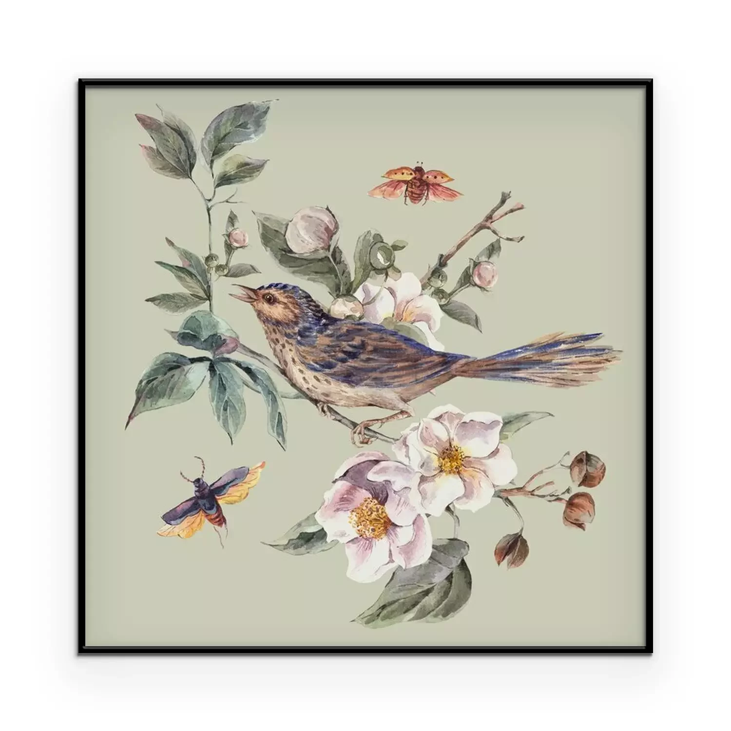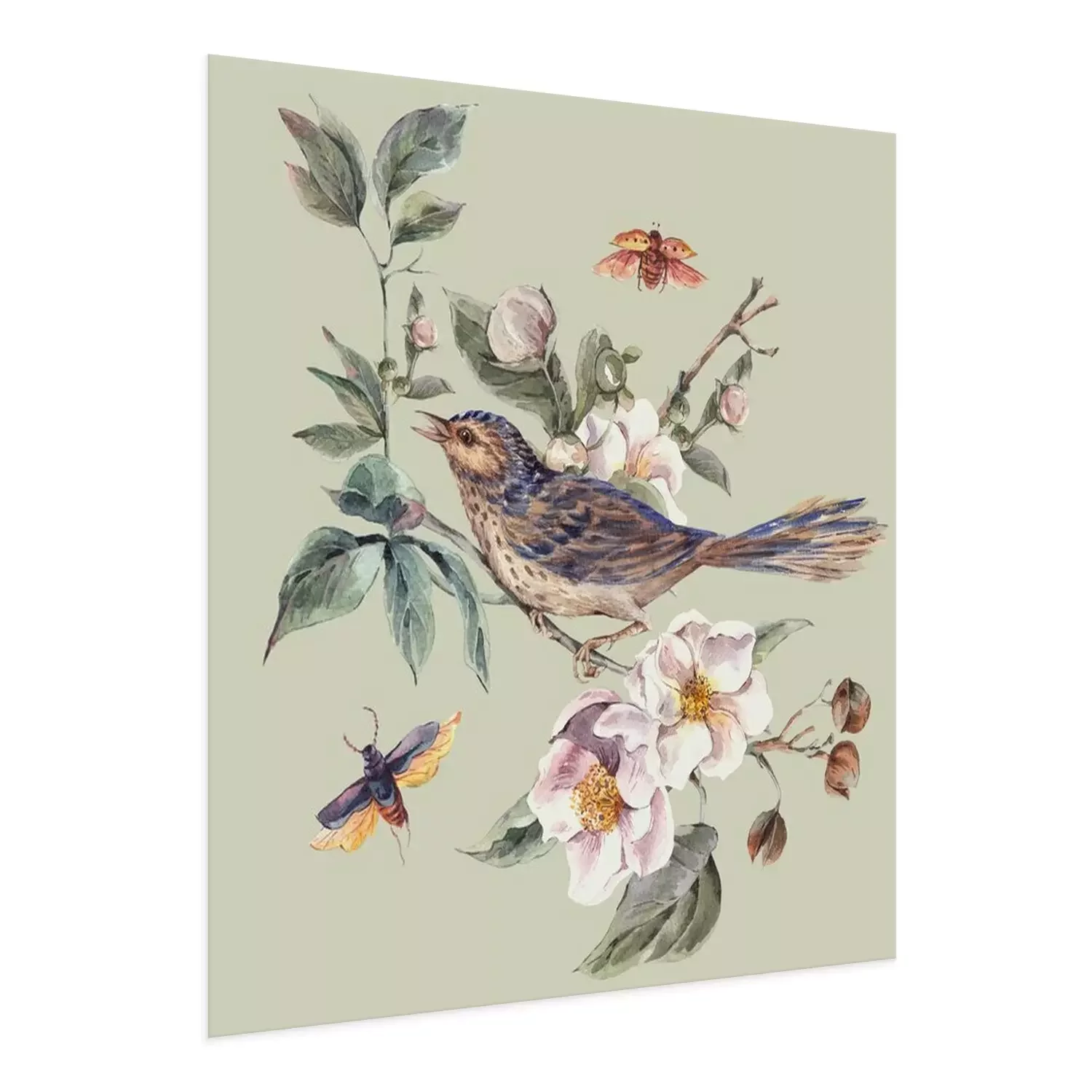 Poster  Vintage, salutation, carte, Blooming, pomme, Arbres, Oiseaux