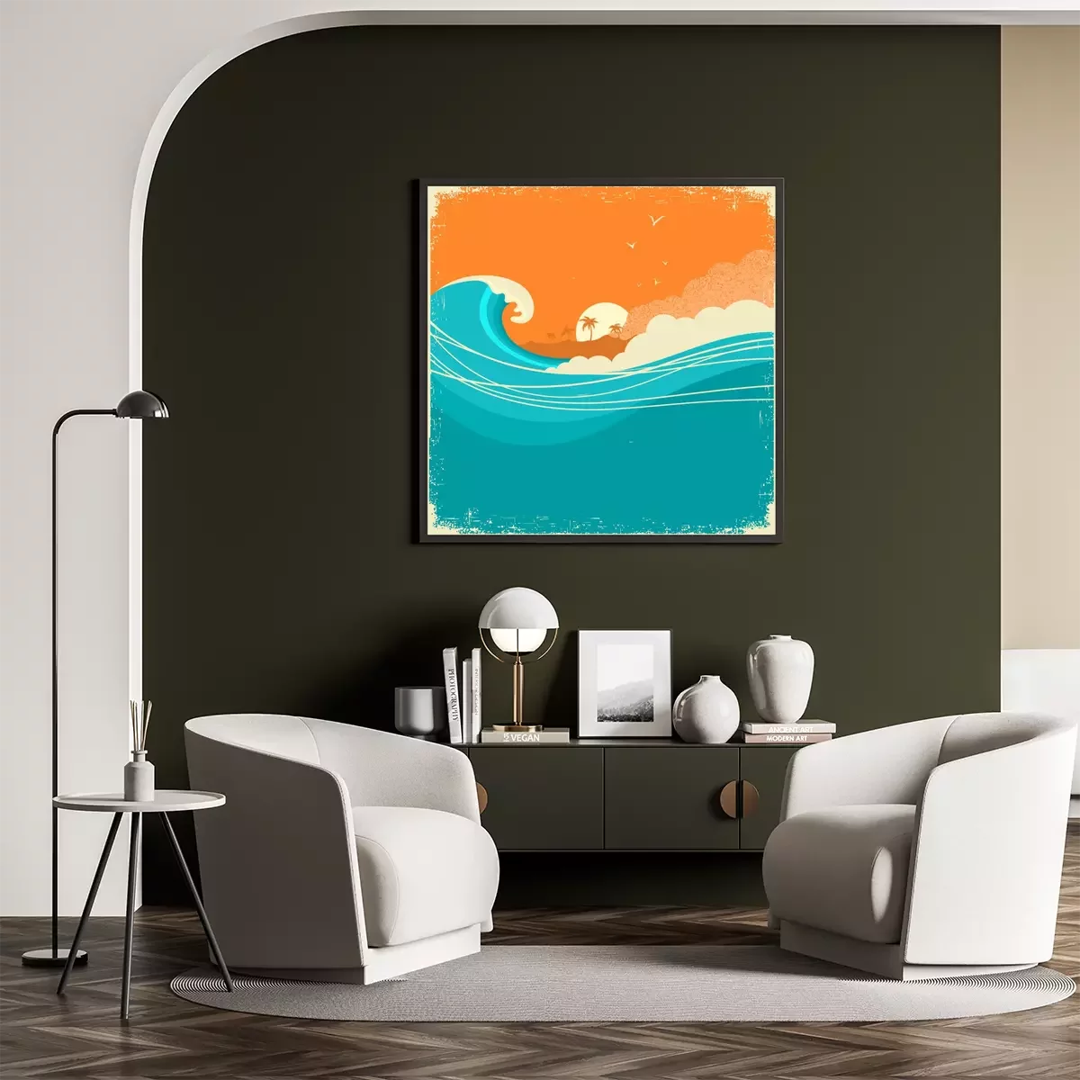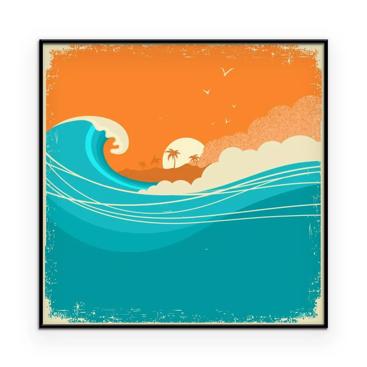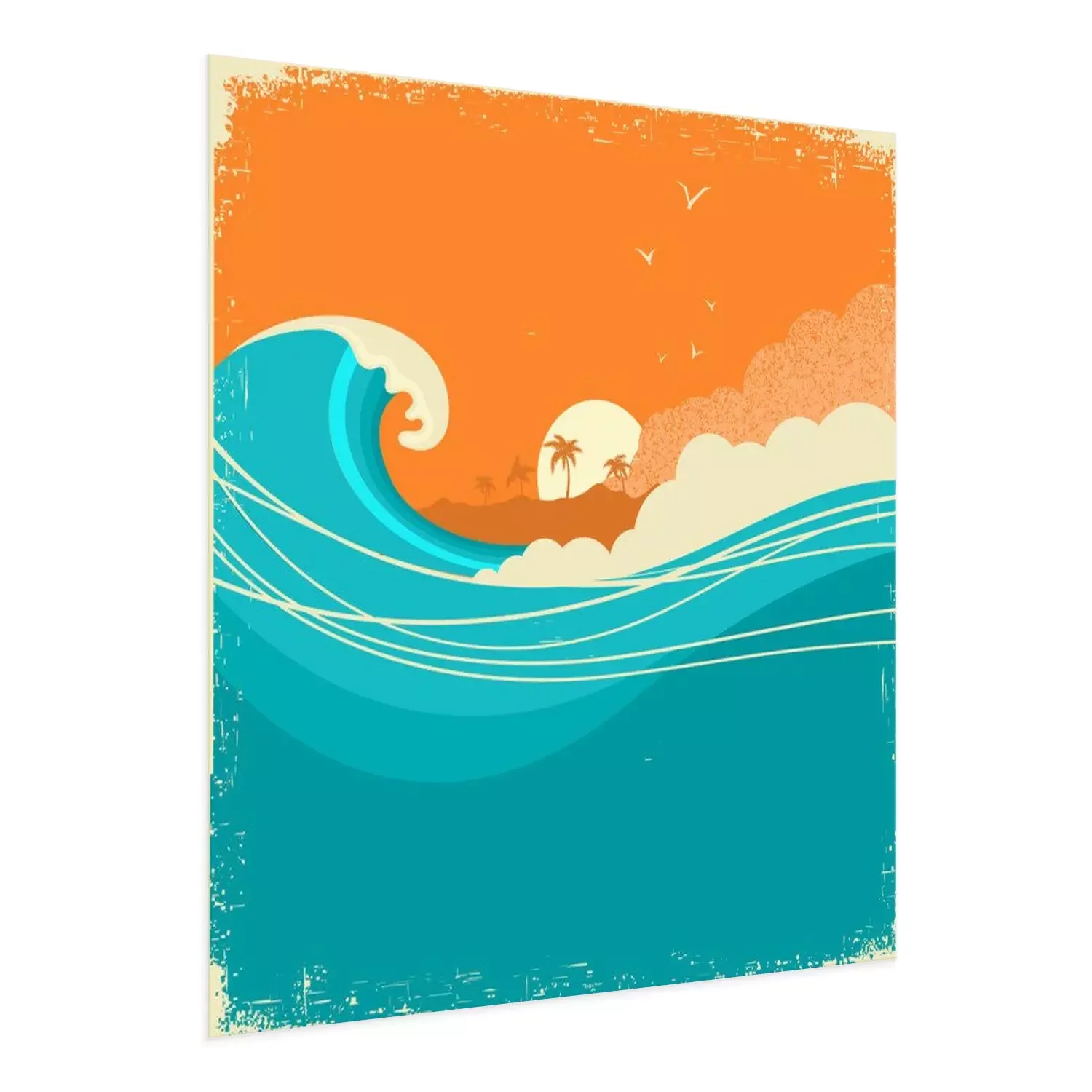 Poster : Vintage Seascape with island on old paper poster for text. Ocean waves