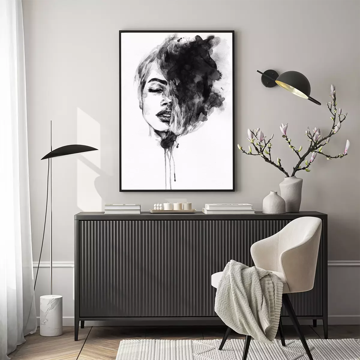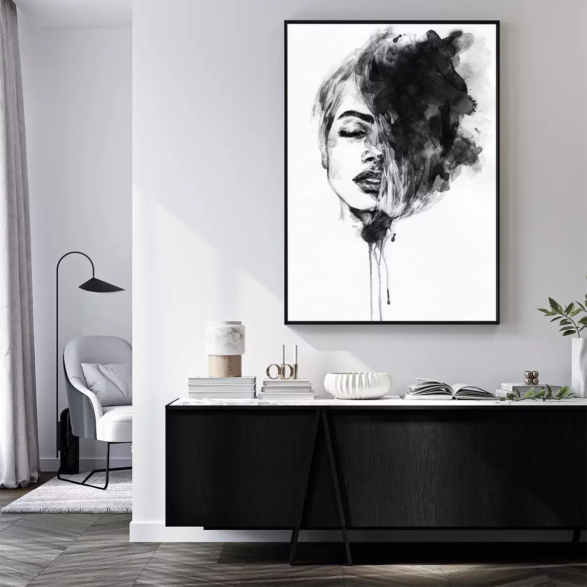 Portrait de femme à l'aquarelle monochrome